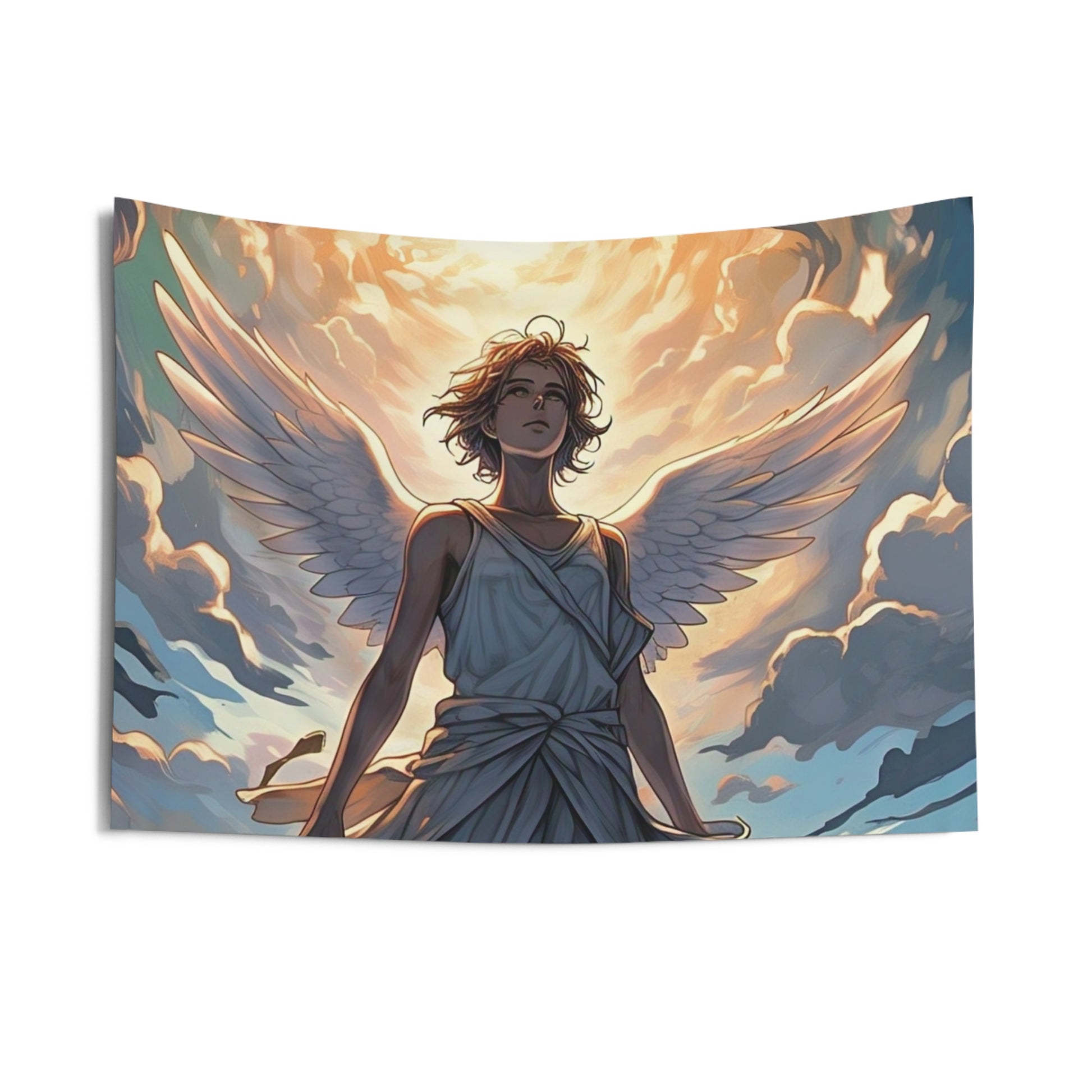 Angel Wall Tapestry — Radiant Guardian Sunset Decor