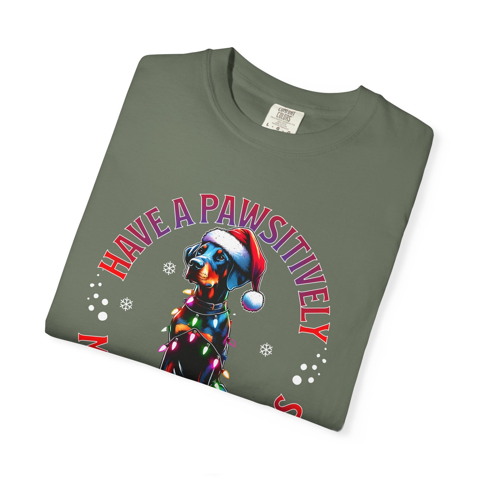 Christmas Dog T-Shirt Doberman— "Have a Pawsitively Merry Christmas" Holiday Tee