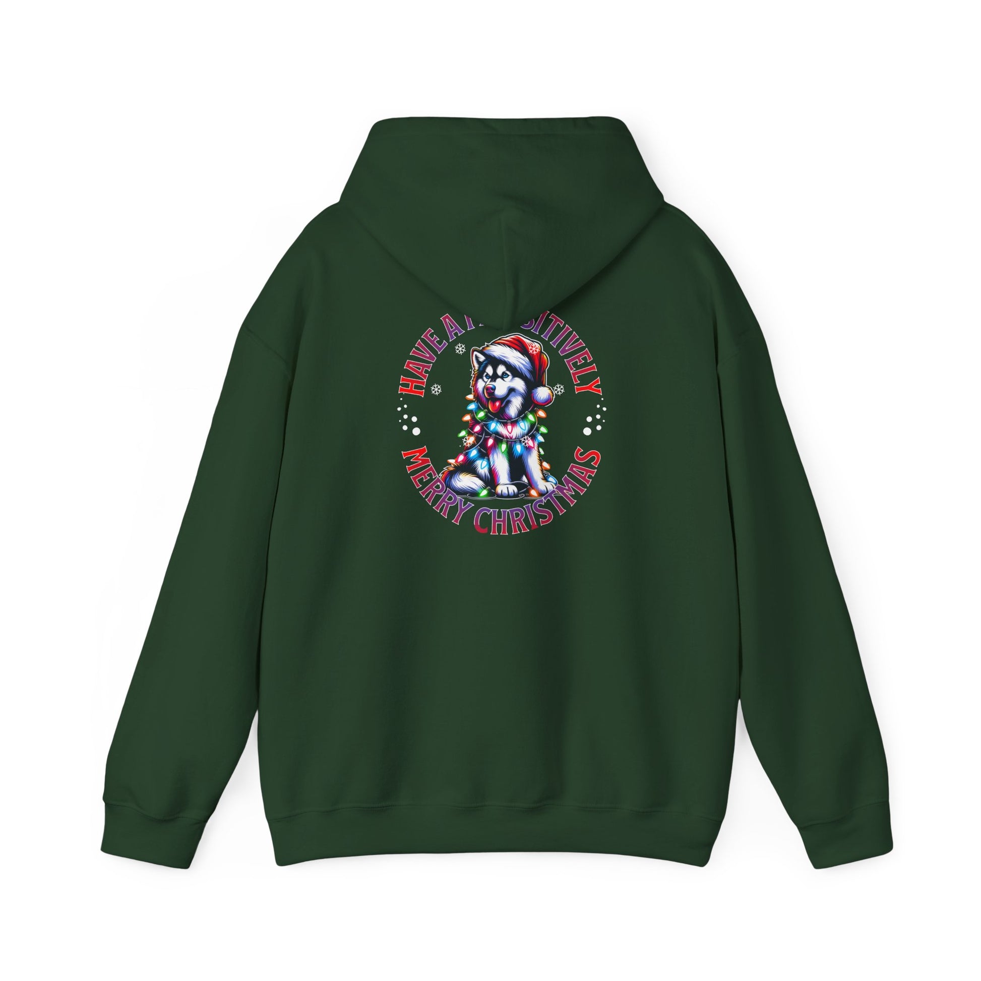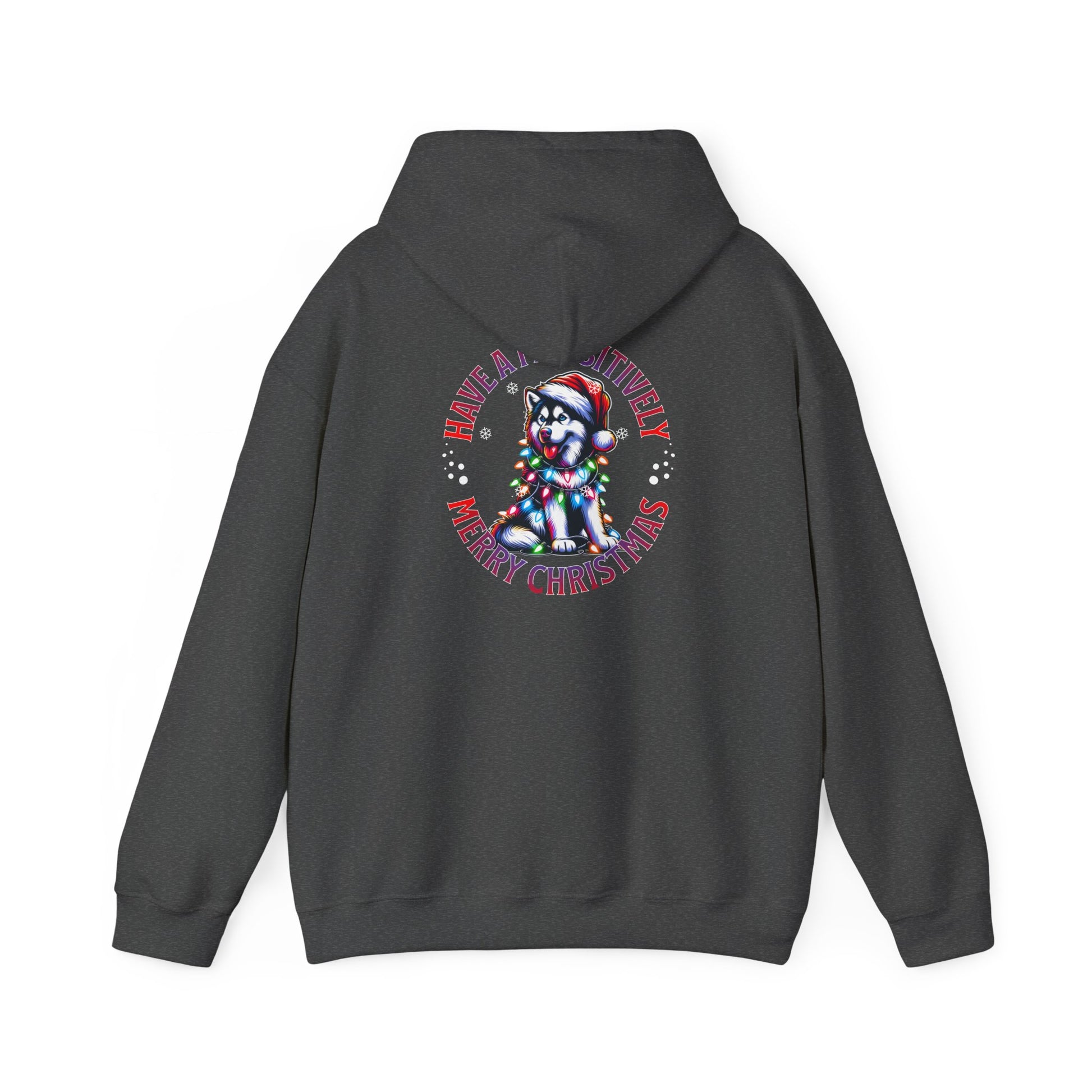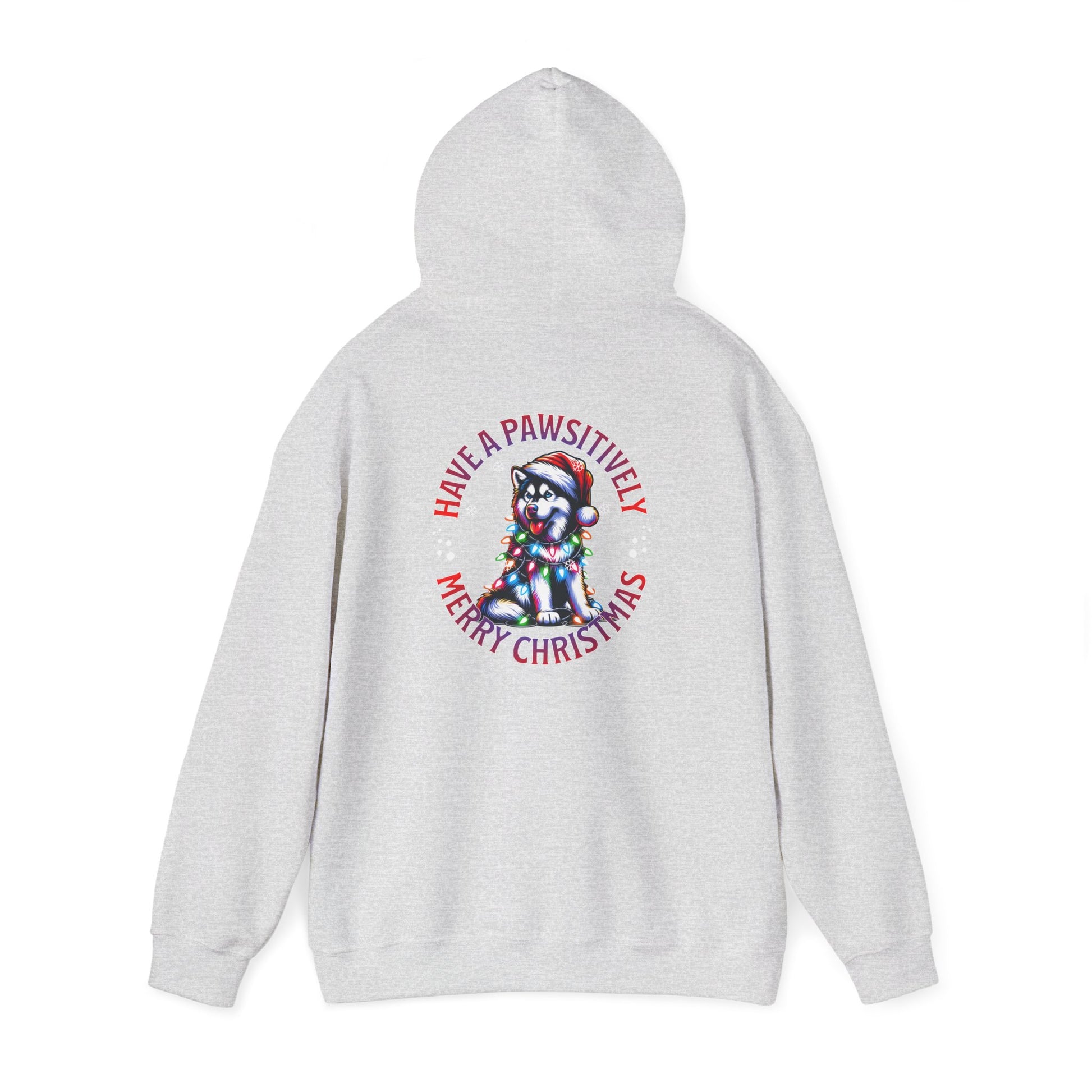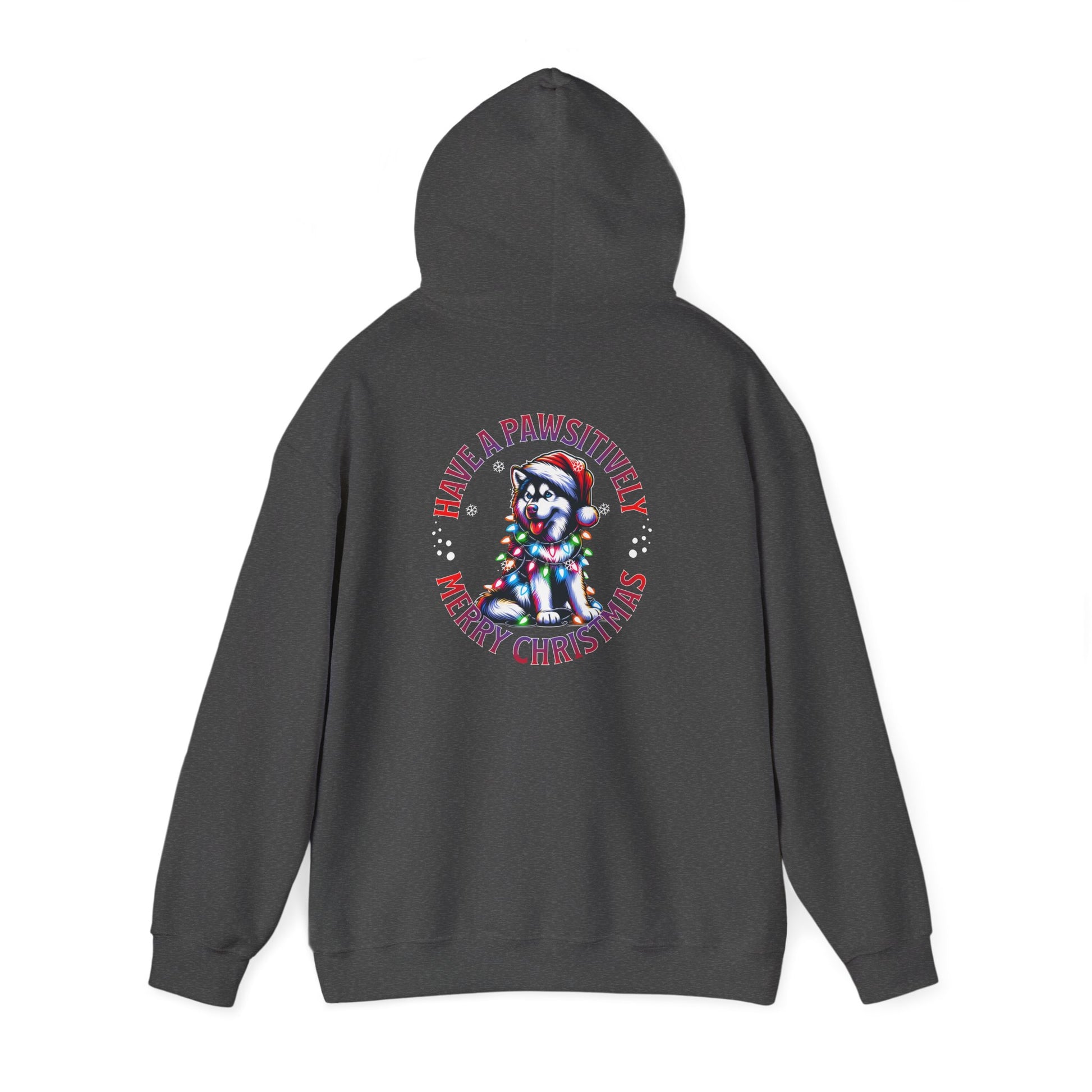Christmas Pack Husky Hoodie – Festive Dogs in Santa Hats "Have A Paw-sitively Merry Christmas"