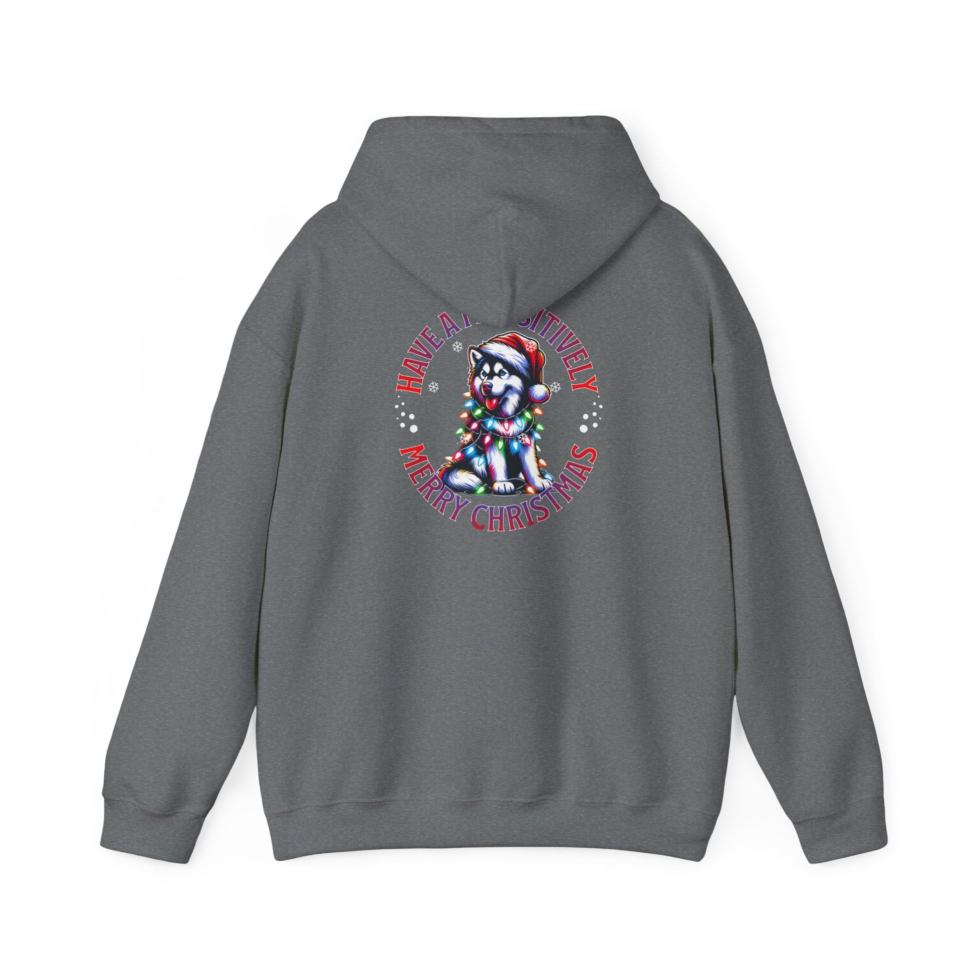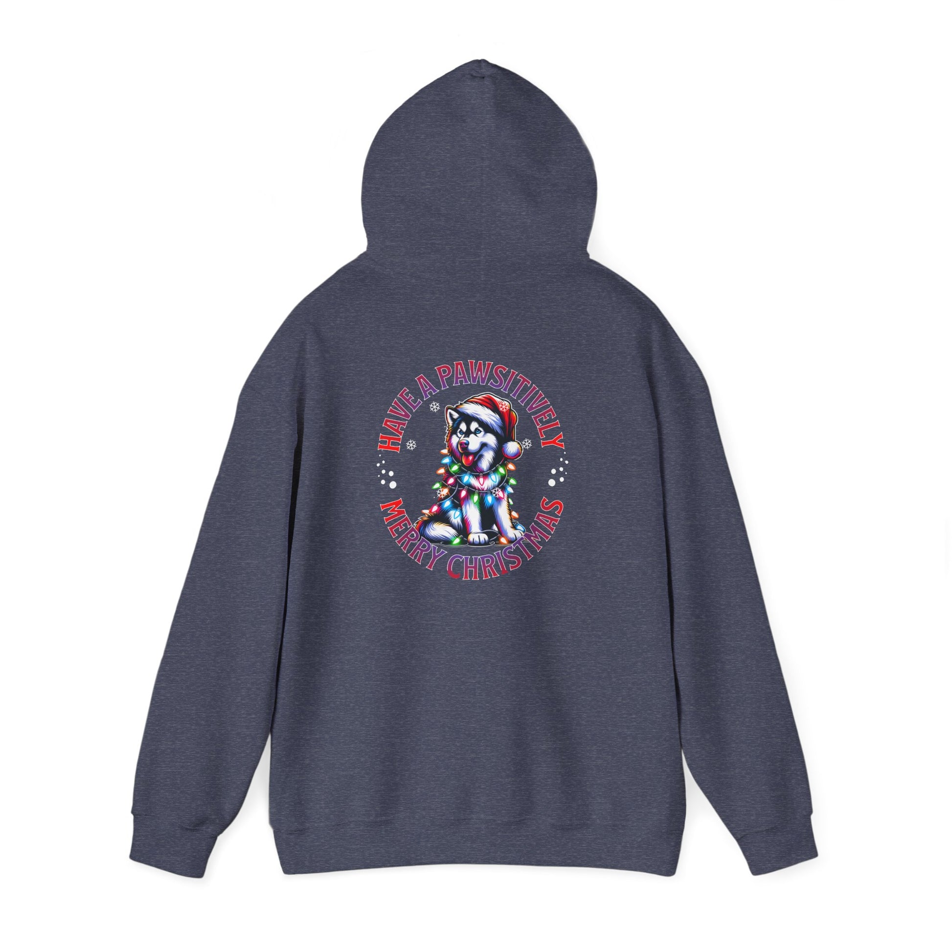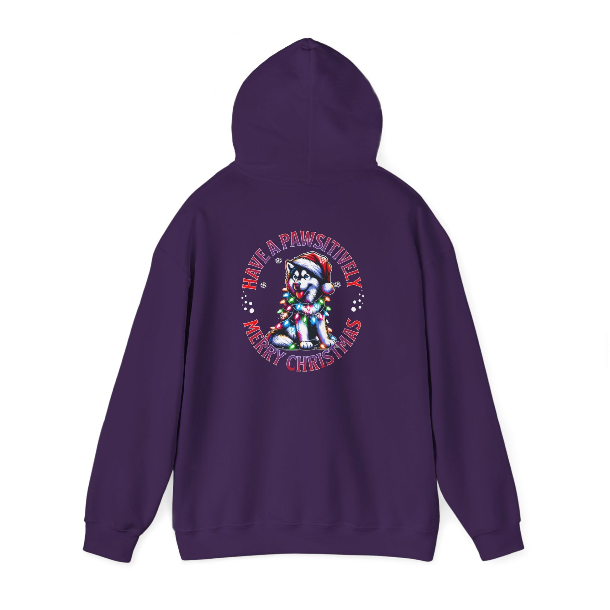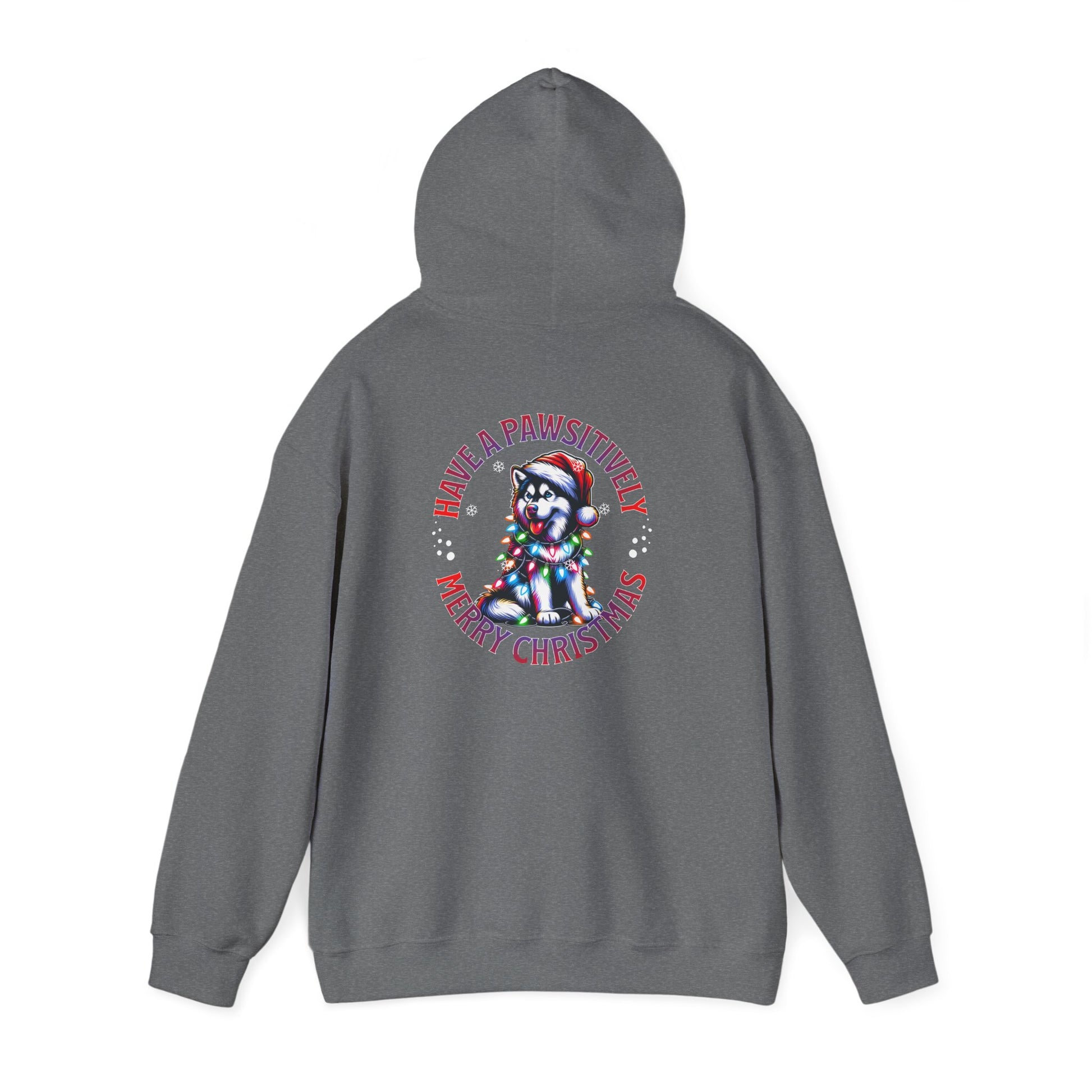 Christmas Pack Husky Hoodie – Festive Dogs in Santa Hats "Have A Paw-sitively Merry Christmas"