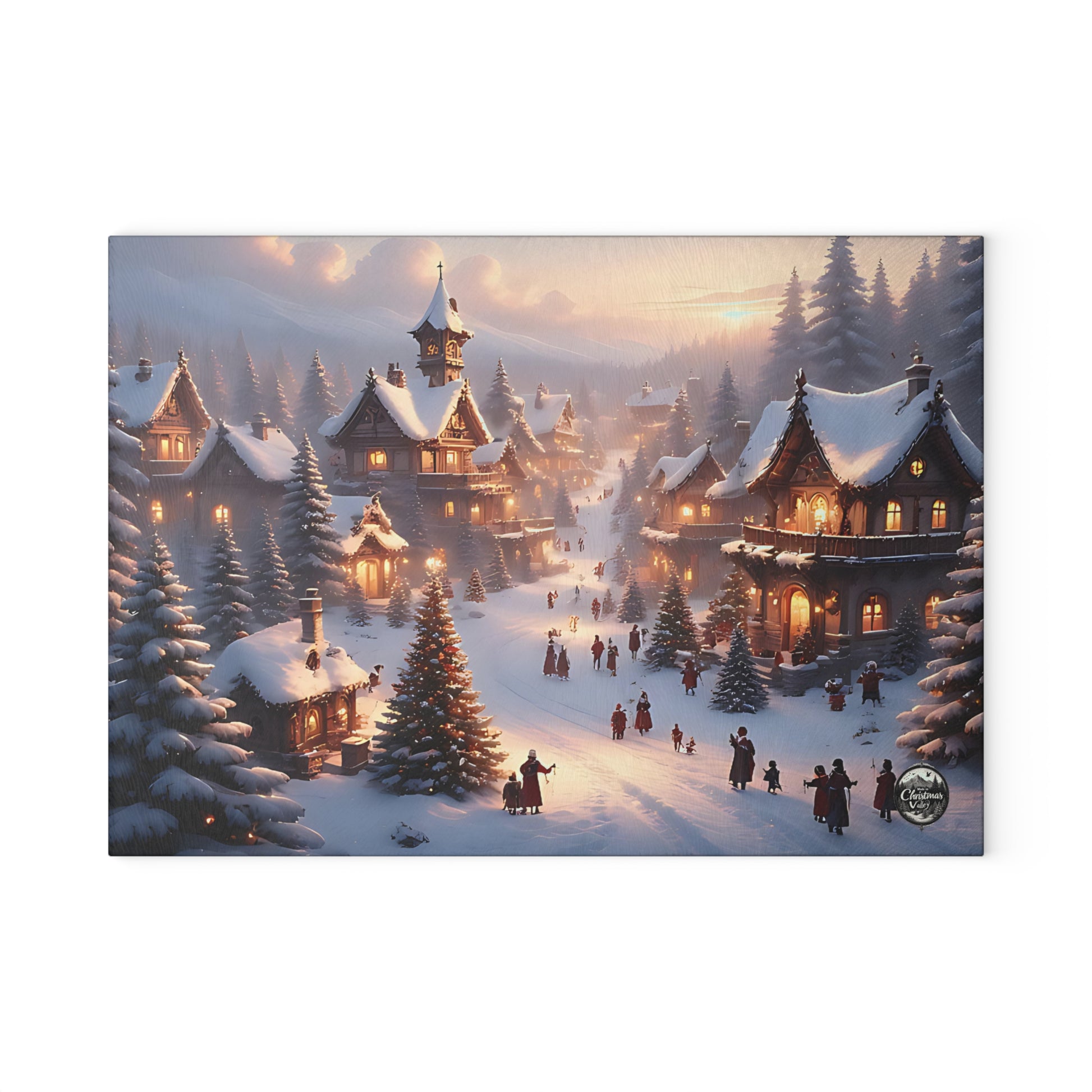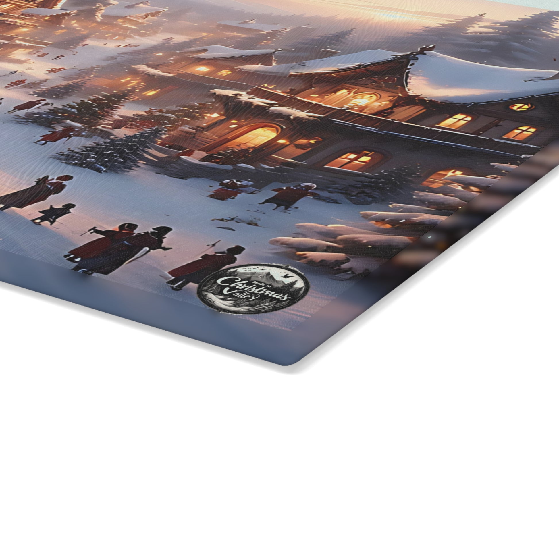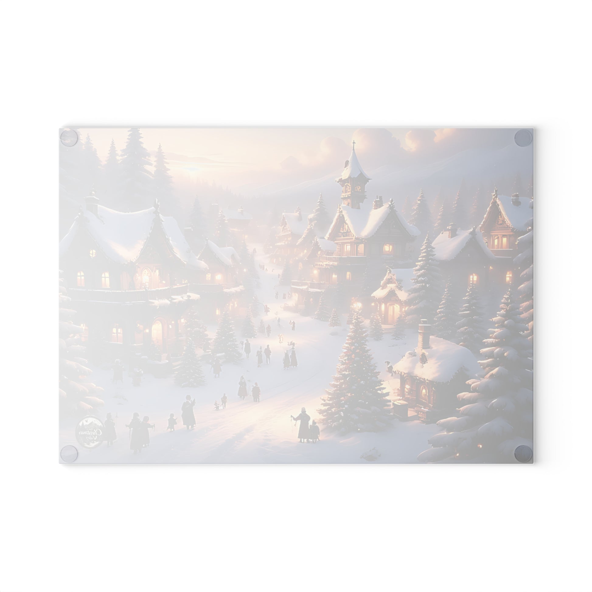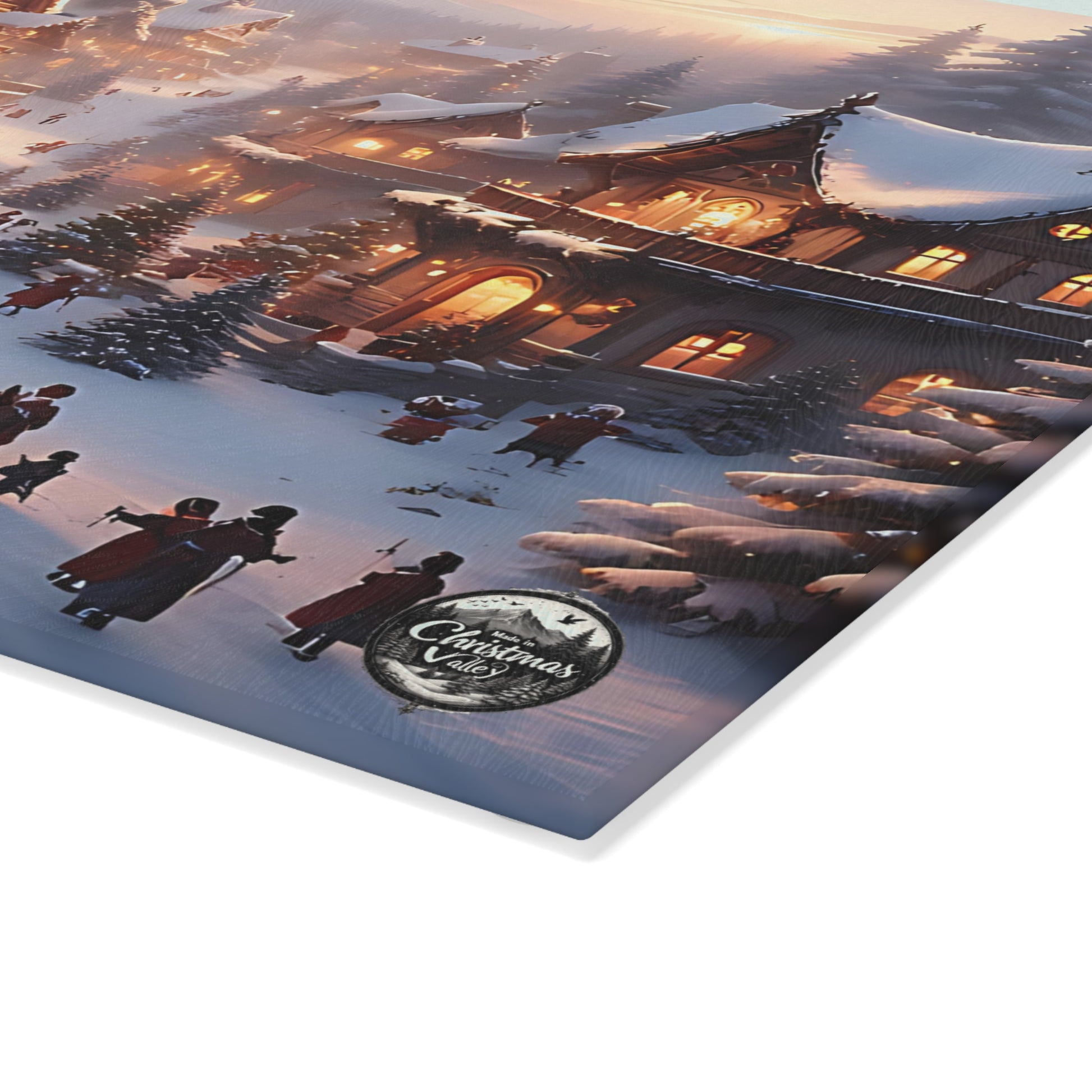 Cozy Winter Glass Cutting Board - Festive Kitchen Decor, Holiday Gift, Unique Culinary Art, Christmas Serving Tray, Seasonal Home Accent