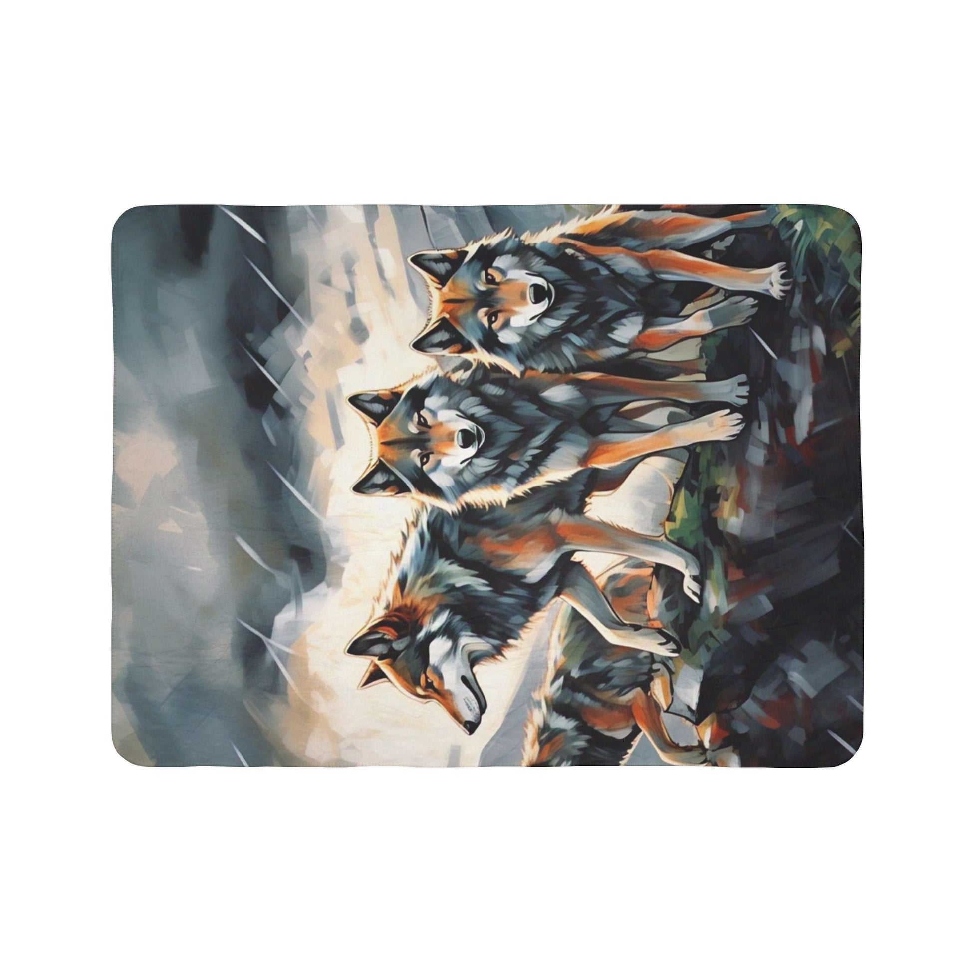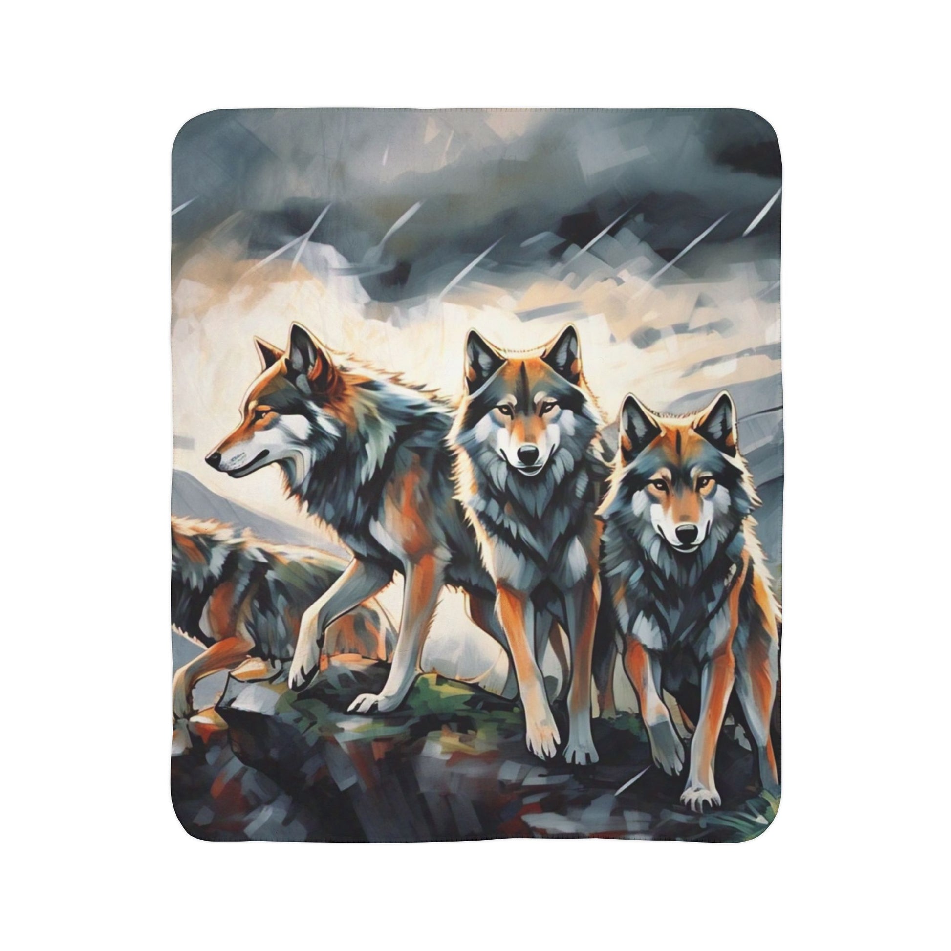 Wrap yourself in comfort and style with this plush fleece sherpa blanket. Featuring stunning artwork of majestic wolves, this blanket creates an inviting atmosphere perfect for cozy evenings at home. Its thick, soft texture ensures you stay warm, making it a perfect companion for movie nights or chilly mornings. Ideal for animal lovers and outdoor enthusiasts alike, this blanket makes a heartfelt gift for birthdays, holidays, and special occasions such as housewarmings or anniversaries. Whether you're snuggling on the couch or decorating your living space, this vibrant blanket adds a touch of wild beauty to any setting. Available in two colors and sizes to suit your preference!