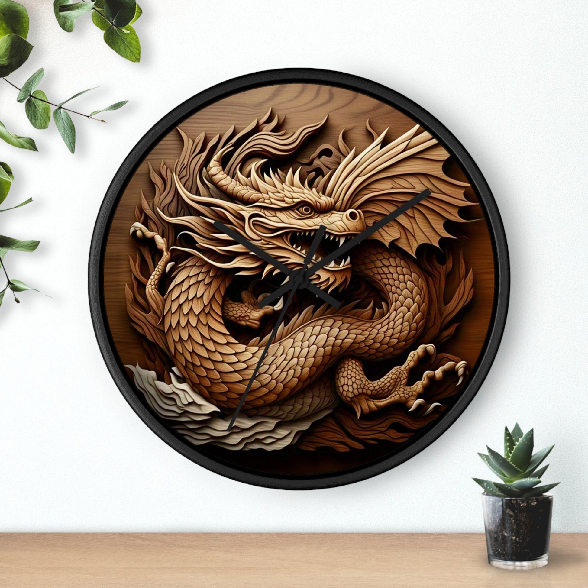 Dragon Carved Wall Clock, Fantasy Home Decor, Unique Gift for Him, Asian Art Clock, Dragon Clock for Festival Decoration