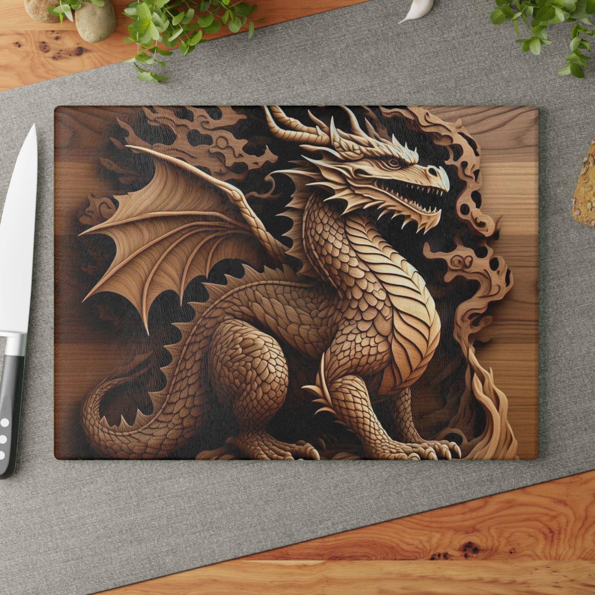 Dragon Design Glass Cutting Board | Unique Kitchen Decor, Gift for Chef, Fantasy Cooking Gift, Fantasy Home Decor, Kitchen Gadget