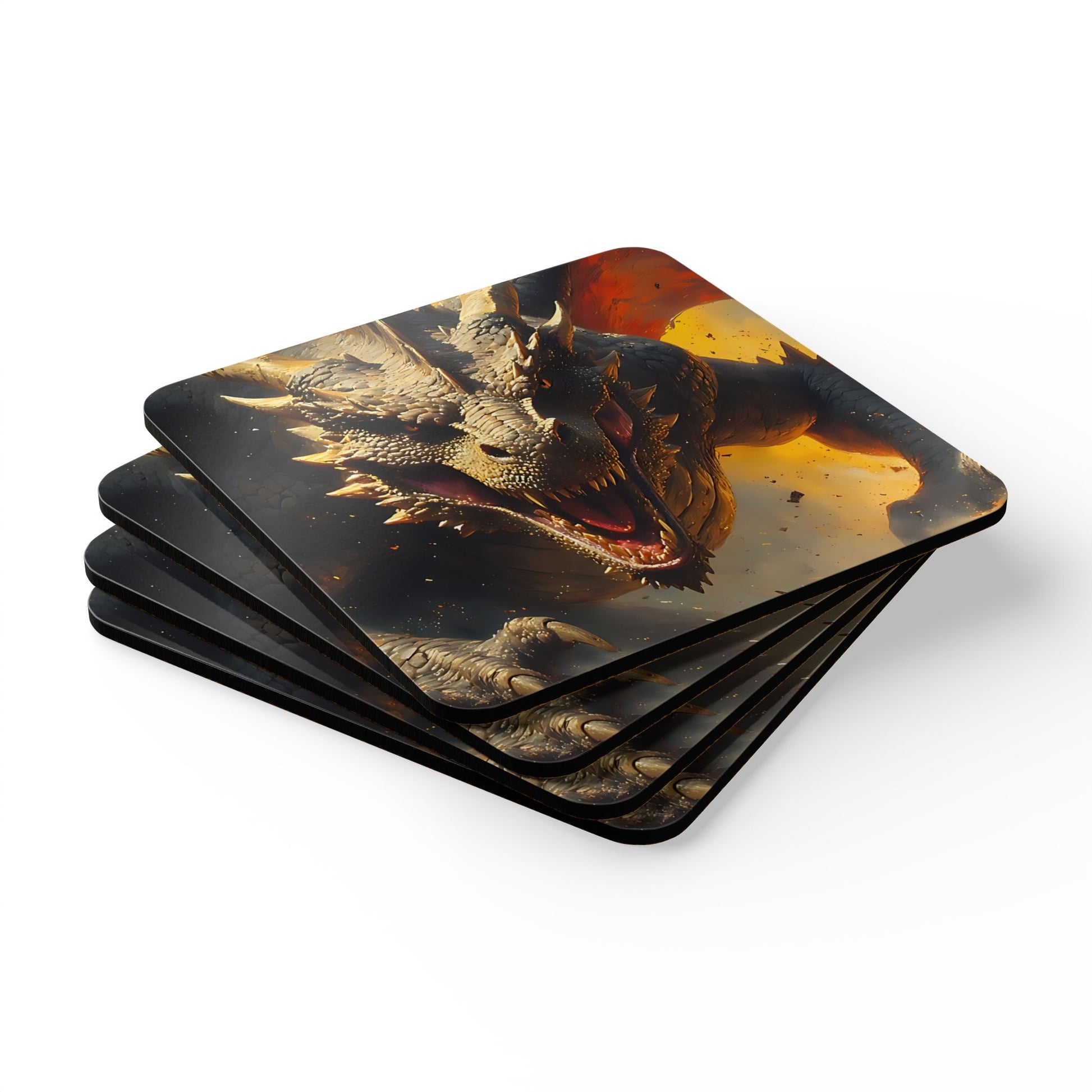 Dragon Fire Corkwood Coaster Set — Fantasy Dragon Drink Coasters