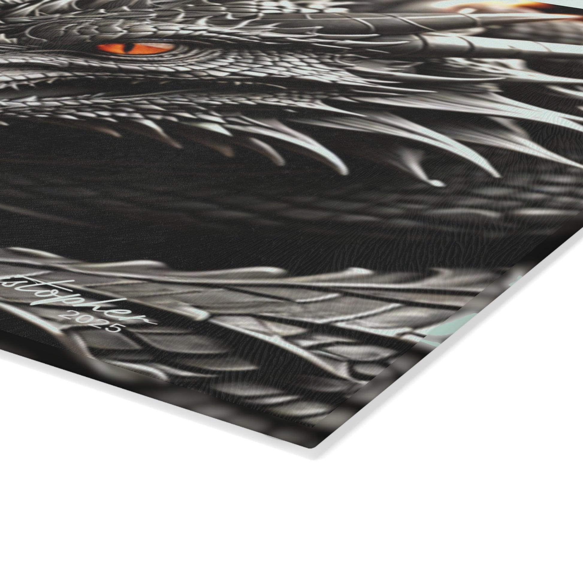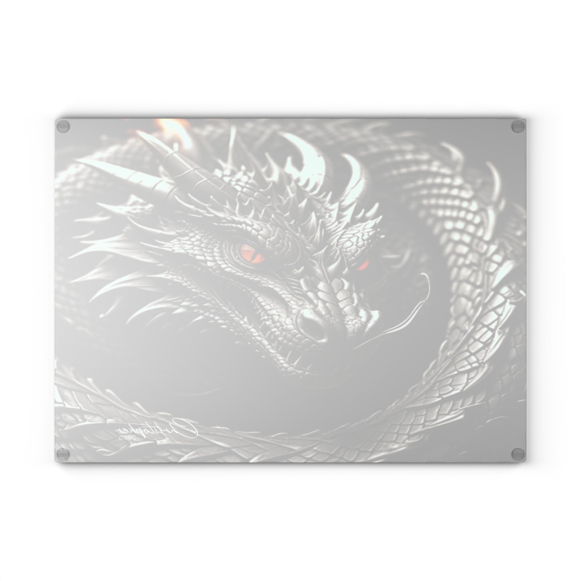 Dragon-Themed Glass Cutting Board, Kitchen Decor, Unique Gift for Chefs, Fantasy Homeware, Gift for Foodies, Dragon Art Cutting Board