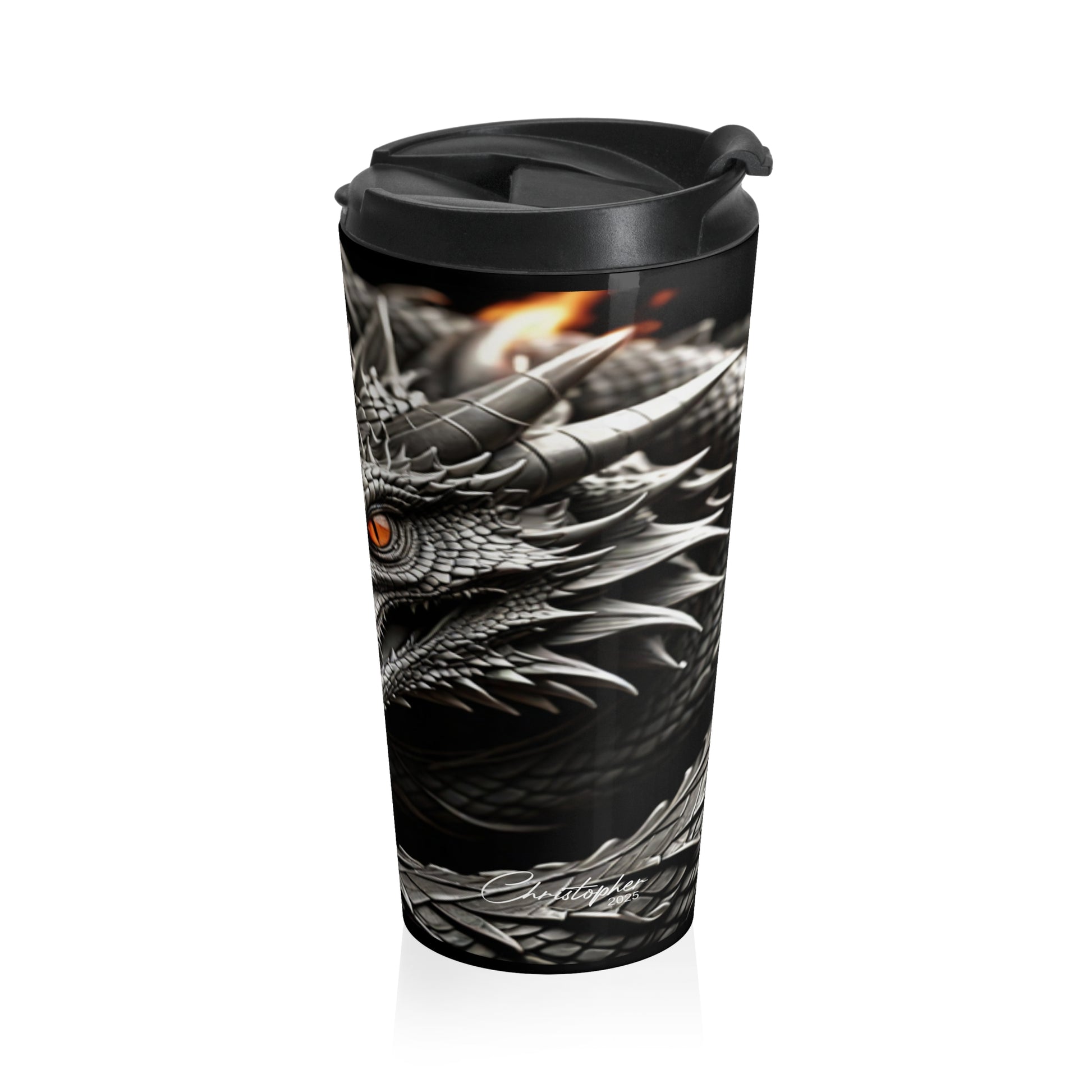 Dragon-Themed Stainless Steel Travel Mug, Perfect Gift for Fantasy Lovers, Unique Coffee Cup for Travel, Adventure Mug, Black Dragon Design