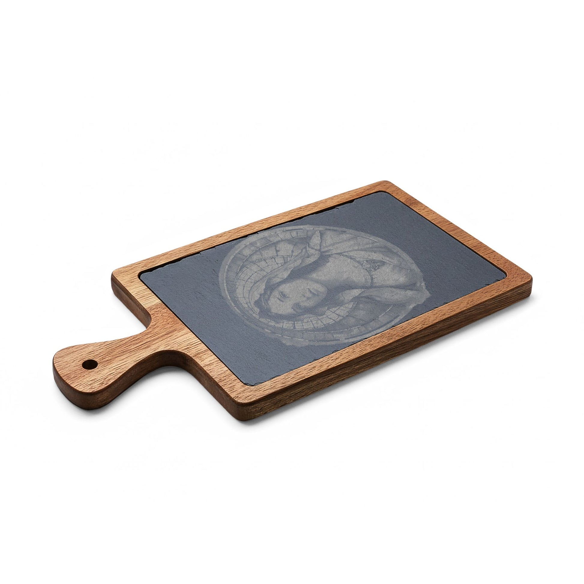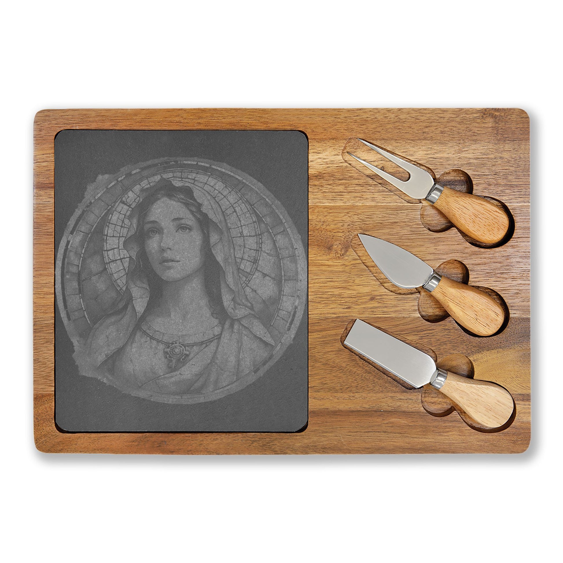 Engraved Bamboo Charcuterie Board Mary with Slate Round & Cheese Tools