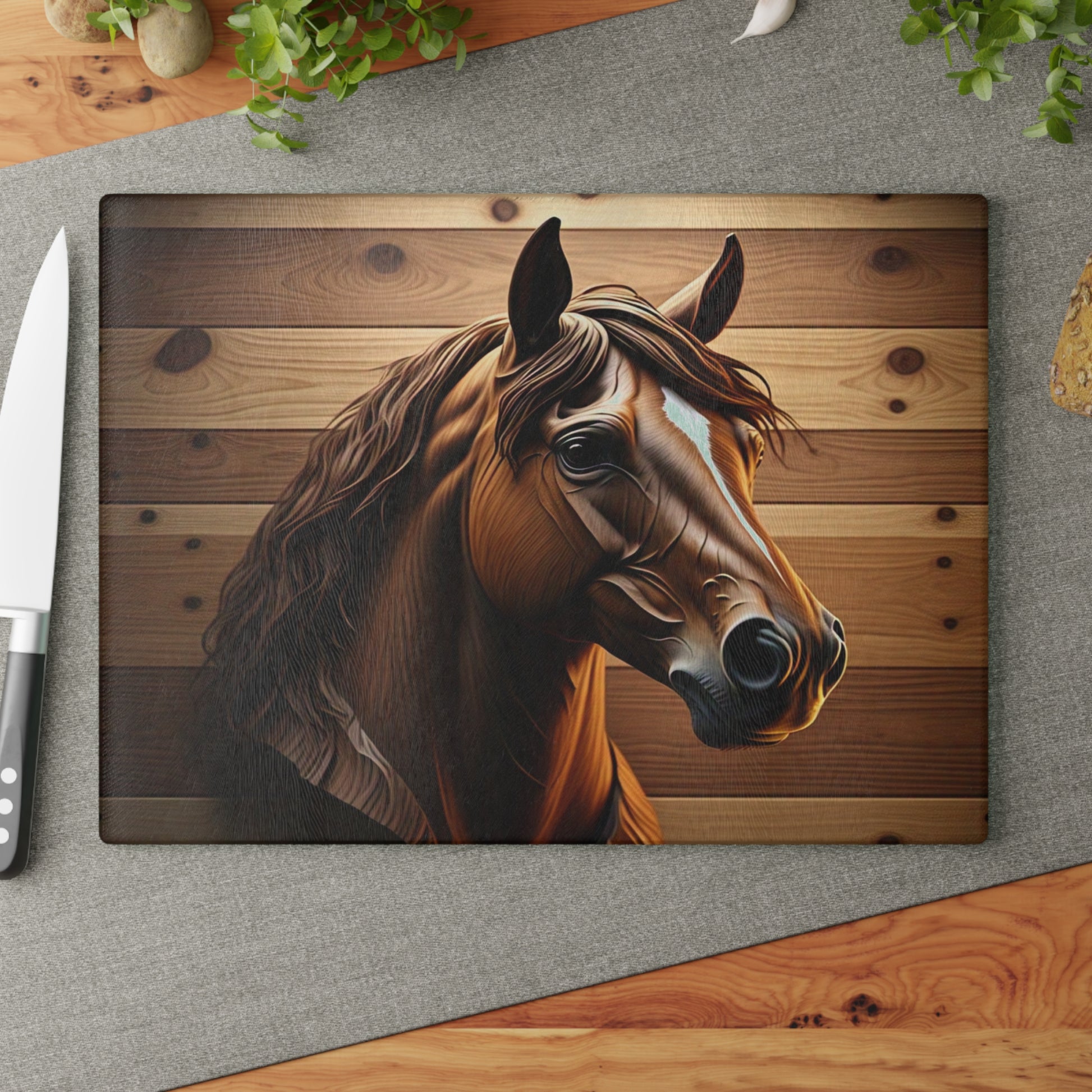 Equestrian Glass Cutting Board | Horse Lover Gift, Farmhouse Kitchen Decor, Unique Cooking Accessory, Rustic Kitchen, Home Decor