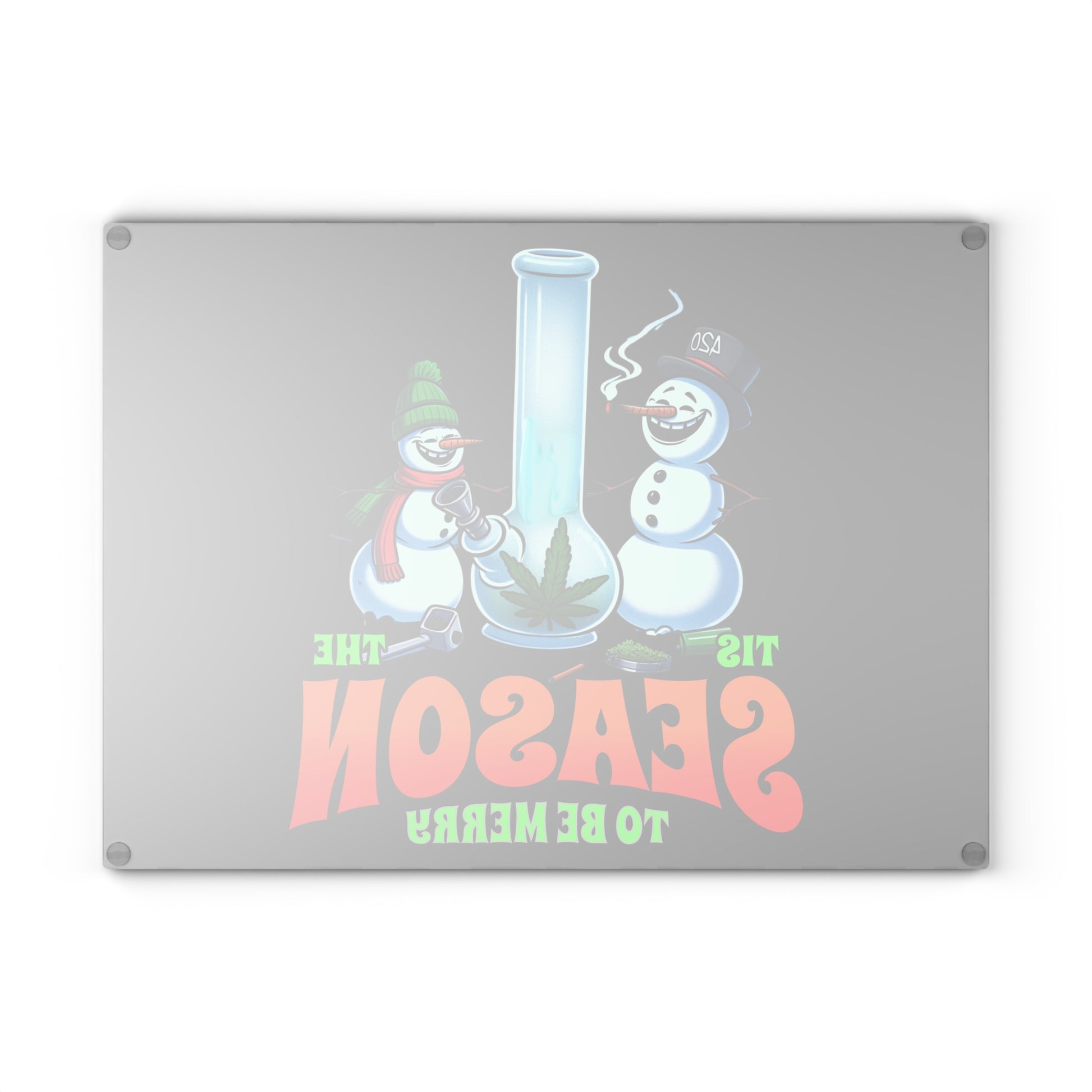 Festive Glass Cutting Board for Holiday Cooking, Christmas Kitchen Decor, Fun Gift for Chefs, Marijuana Humor, Snowman Theme