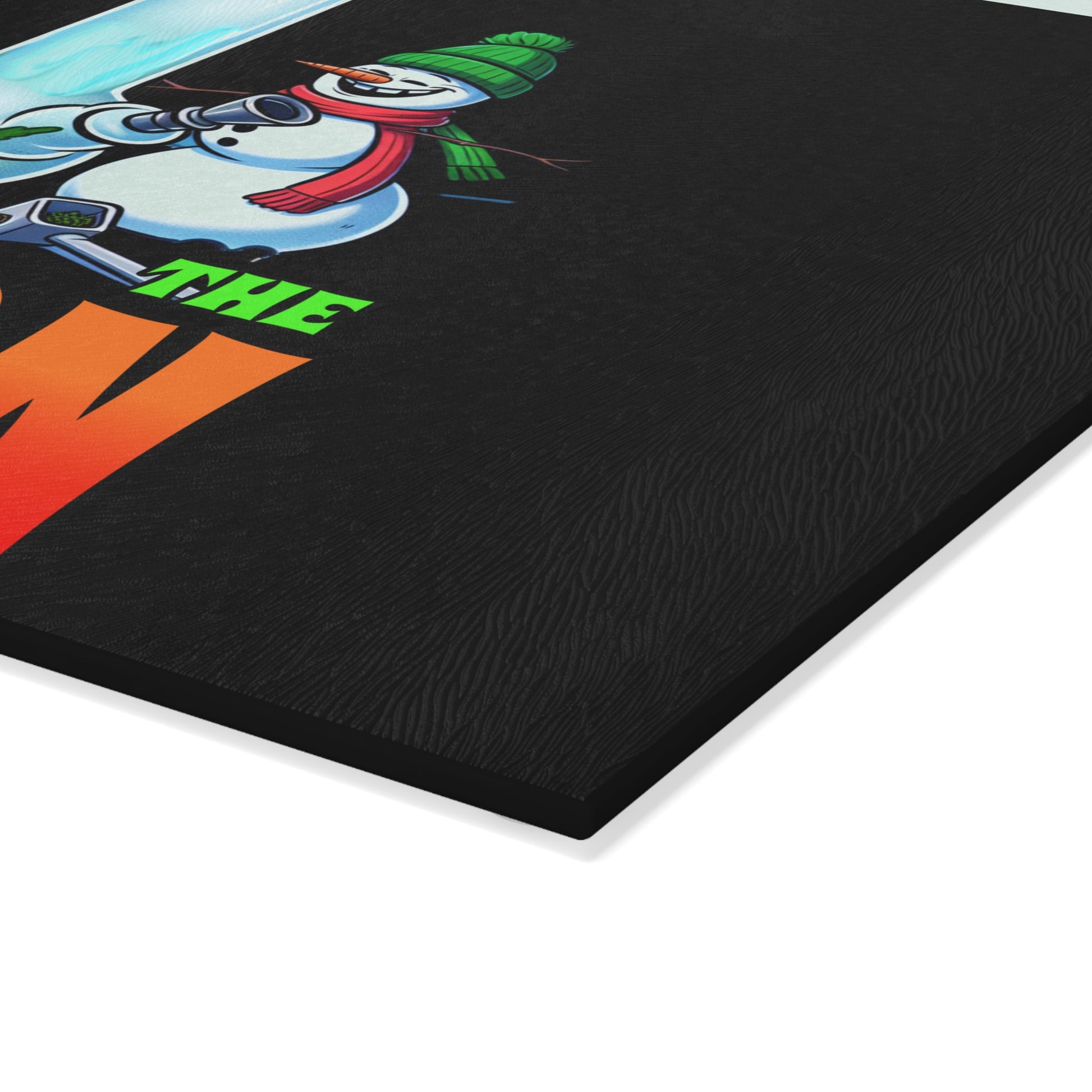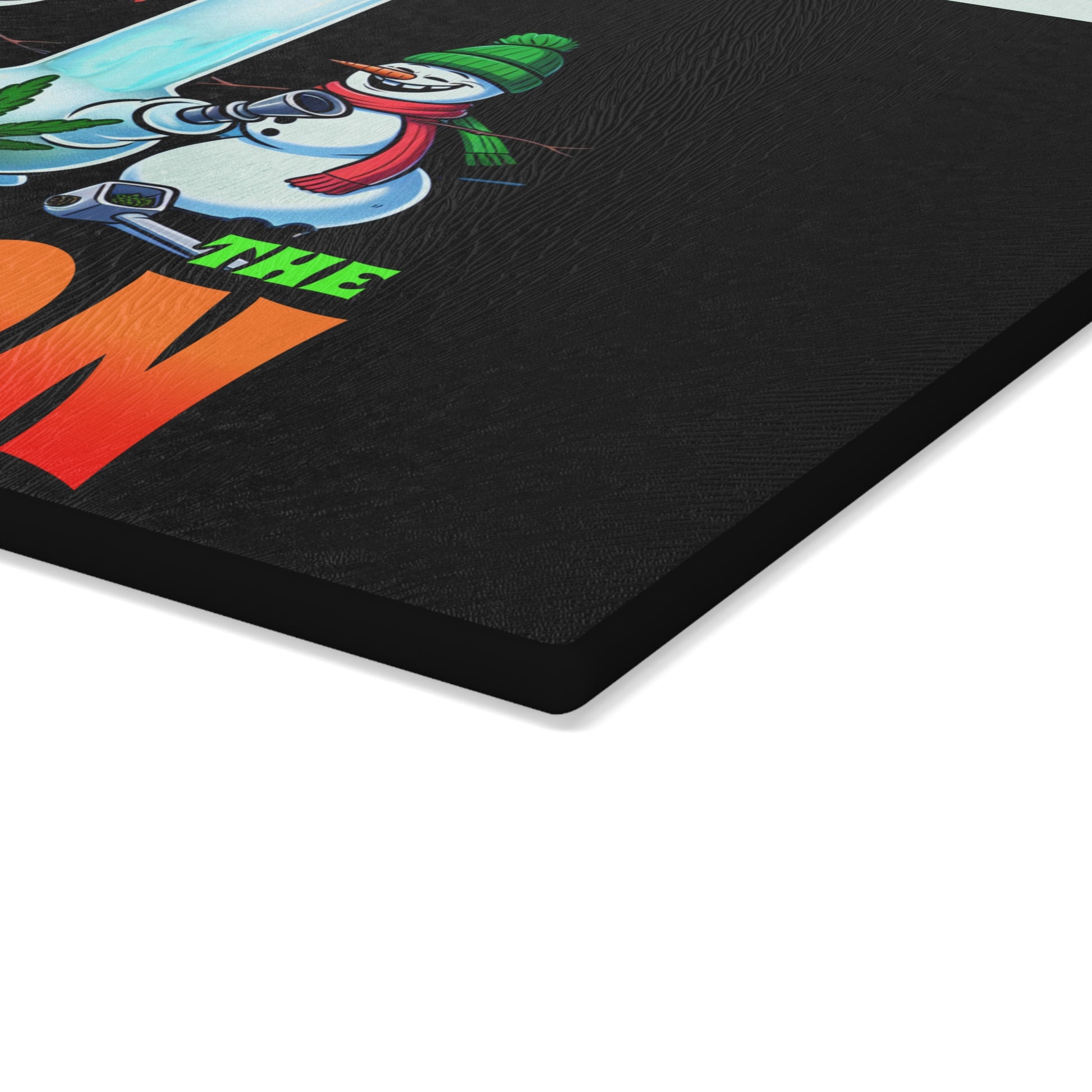 Festive Glass Cutting Board for Holiday Cooking, Christmas Kitchen Decor, Fun Gift for Chefs, Marijuana Humor, Snowman Theme