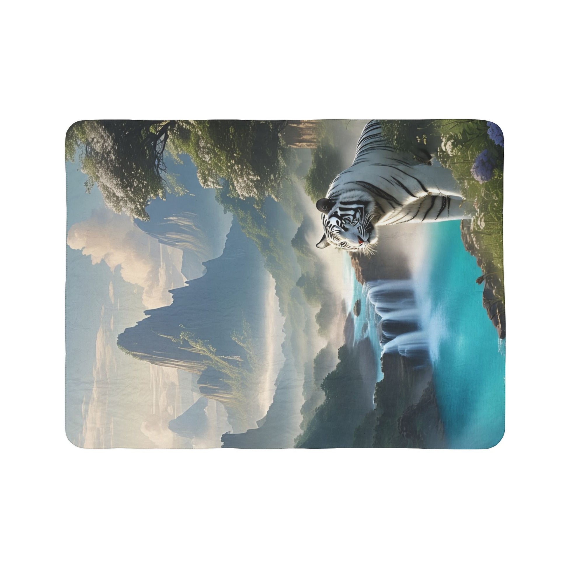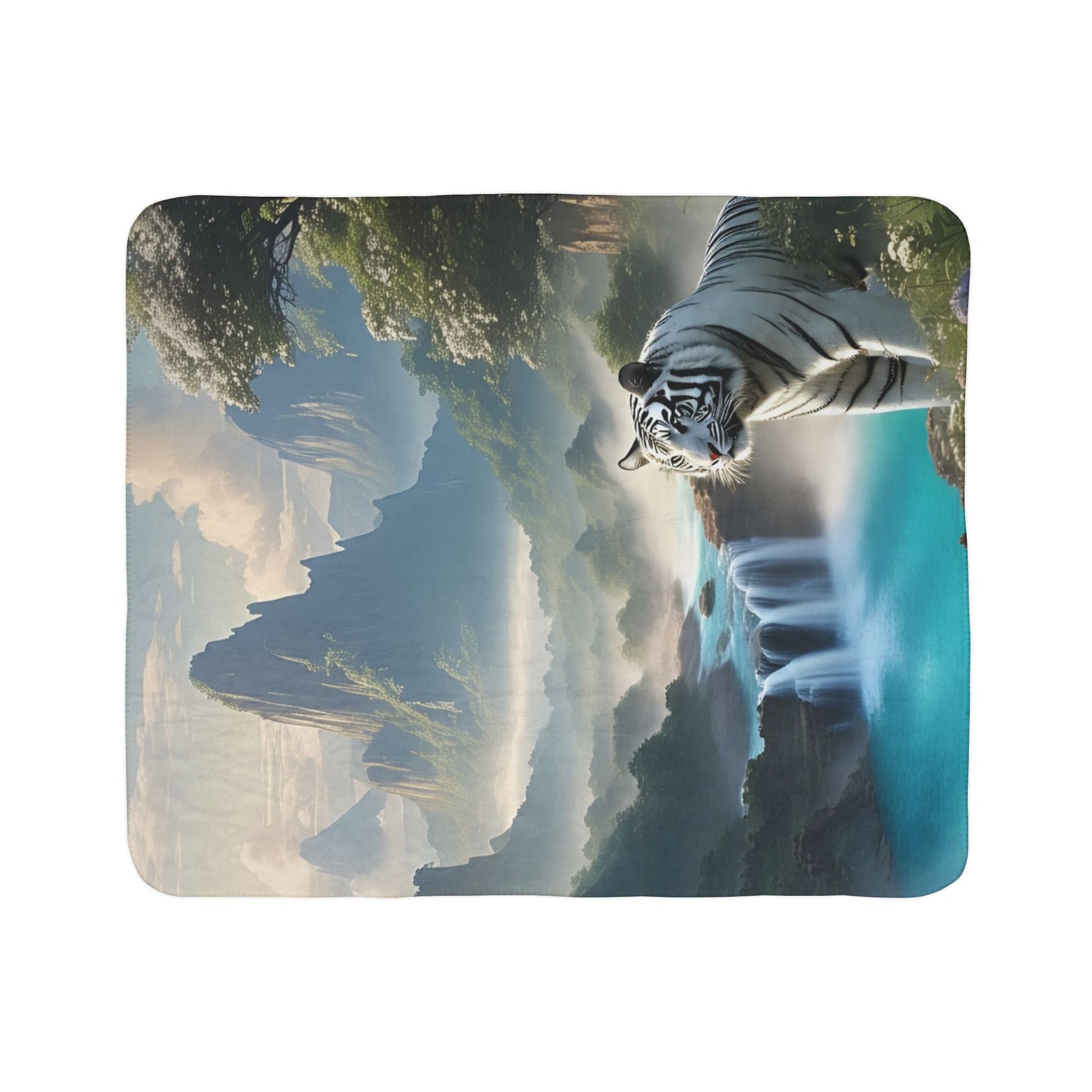 Wrap yourself in the cozy embrace of this luxurious fleece Sherpa blanket. Designed to bring warmth and comfort, its thick, soft texture feels wonderful against your skin. The vibrant colors and stunning imagery capture a majestic scene with a serene white tiger amidst breathtaking landscapes, perfect for adding a touch of elegance to your living space. Ideal for movie nights, cozying up with a good book, or simply lounging on chilly days, this blanket creates a soothing atmosphere wherever it is. It's perfect for animal lovers, outdoor enthusiasts, and anyone looking to elevate their home decor. Celebrate special occasions like birthdays, holidays, or housewarmings with this unique gift that provides not just warmth, but also a statement of style.
