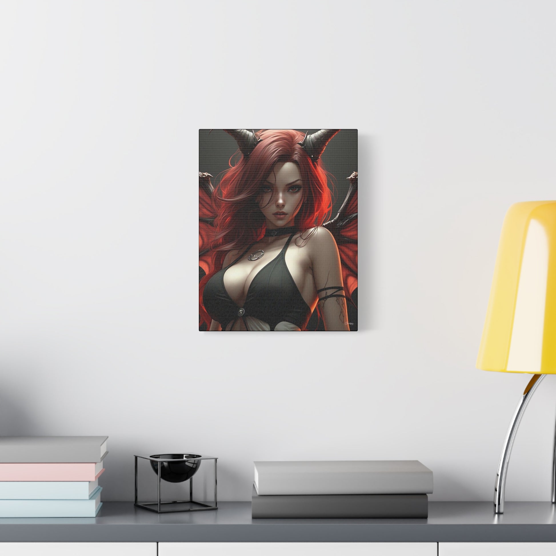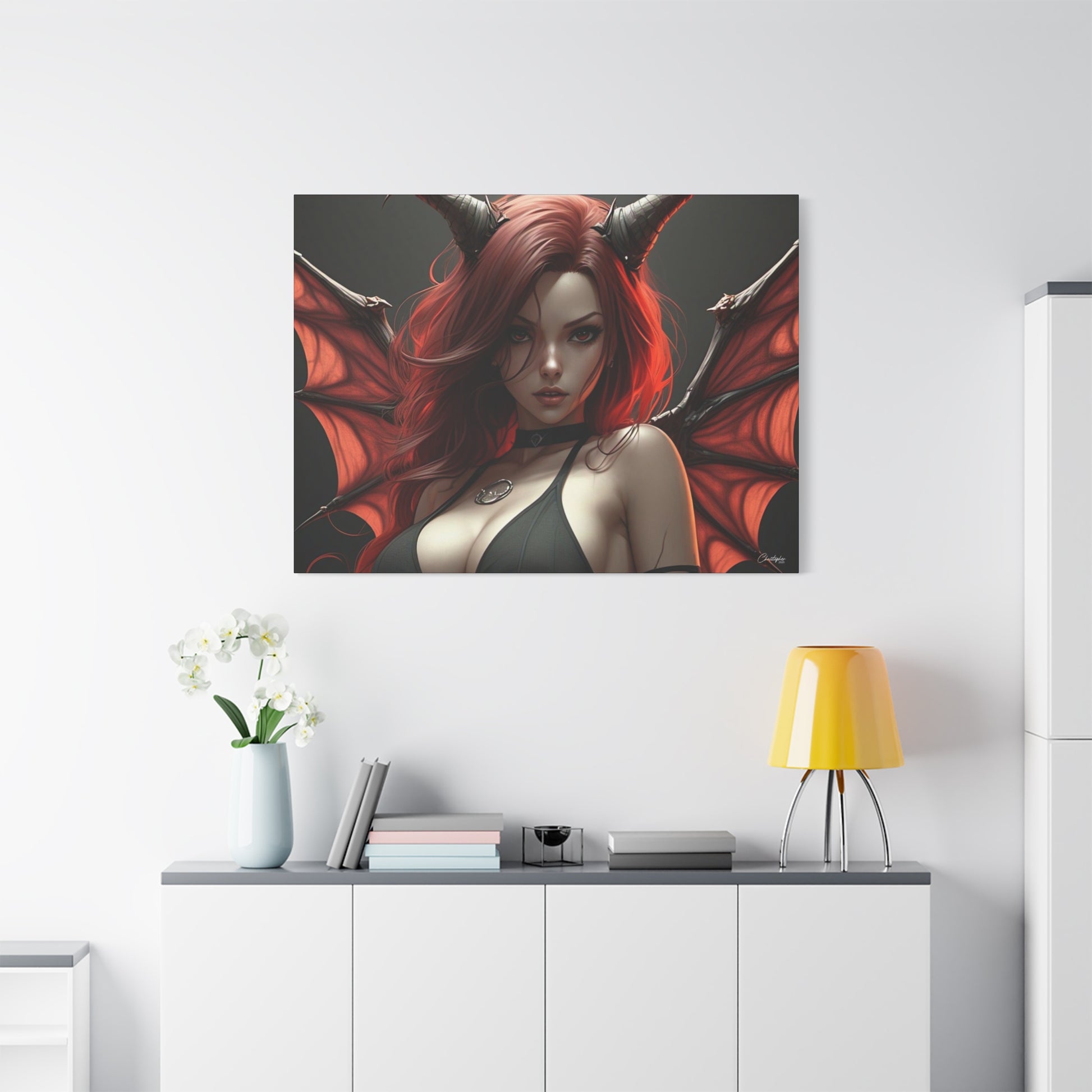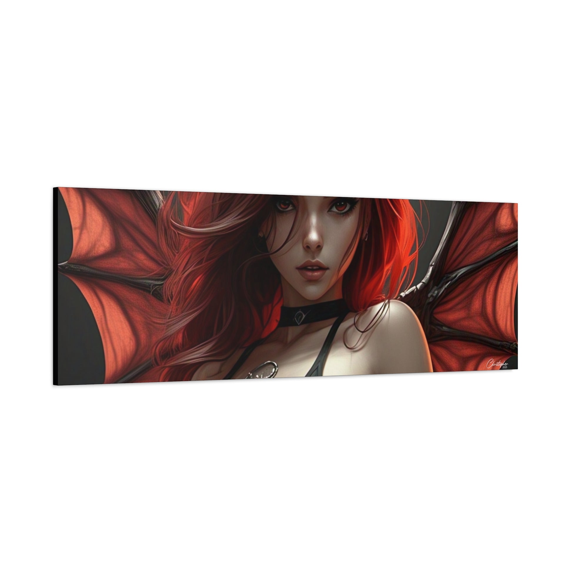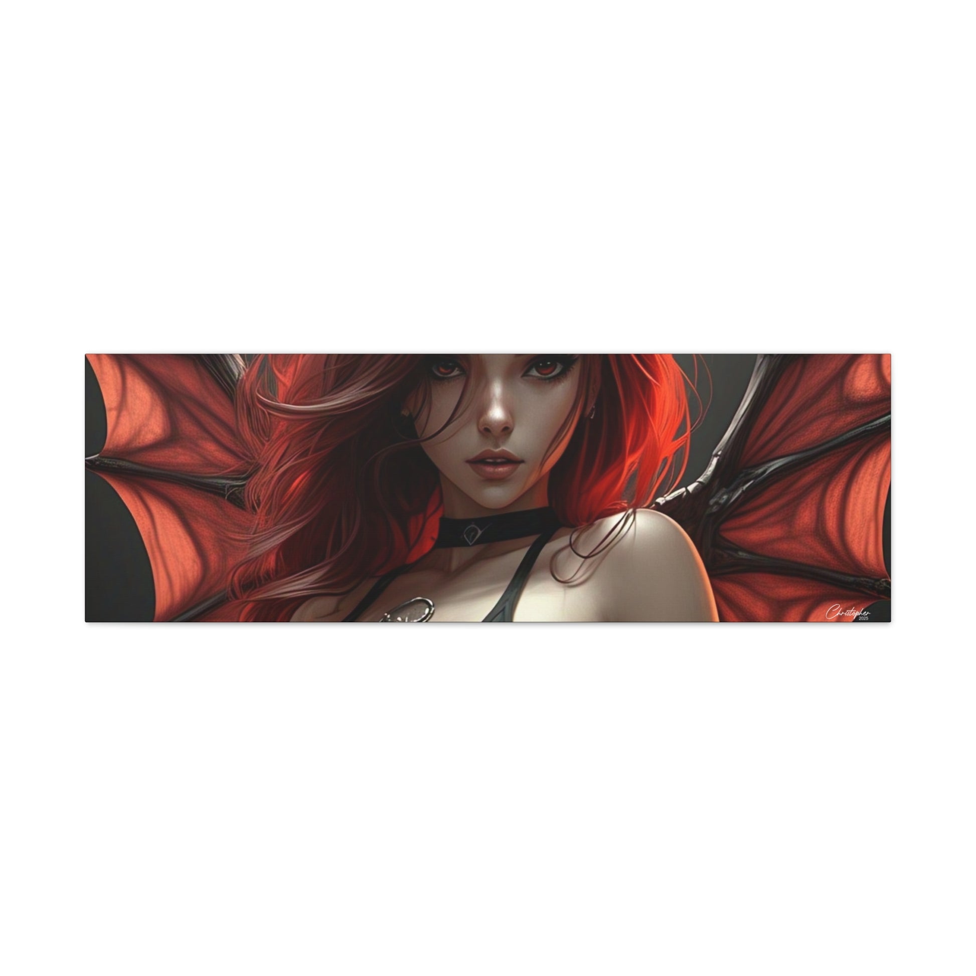 Gothic Fantasy Canvas Art, Demon Girl Wall Decor, Unique Home Decor, Gift for Her, Halloween or Birthday Gift