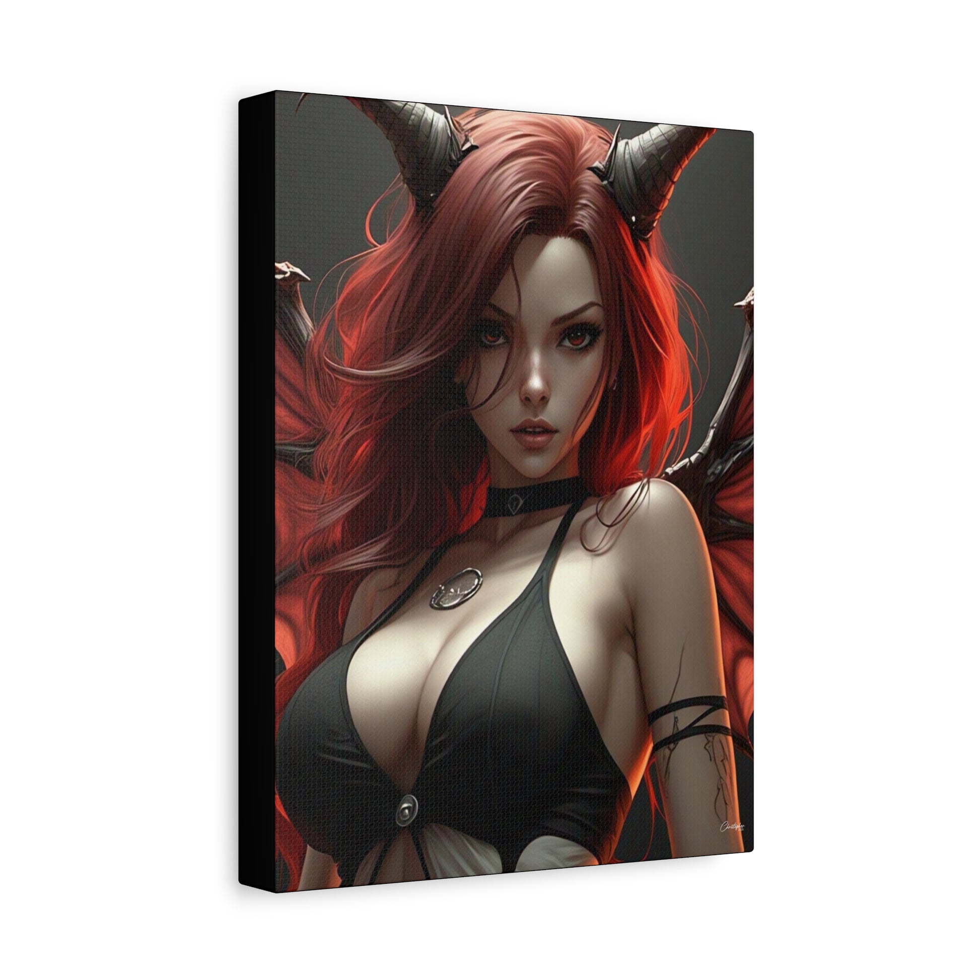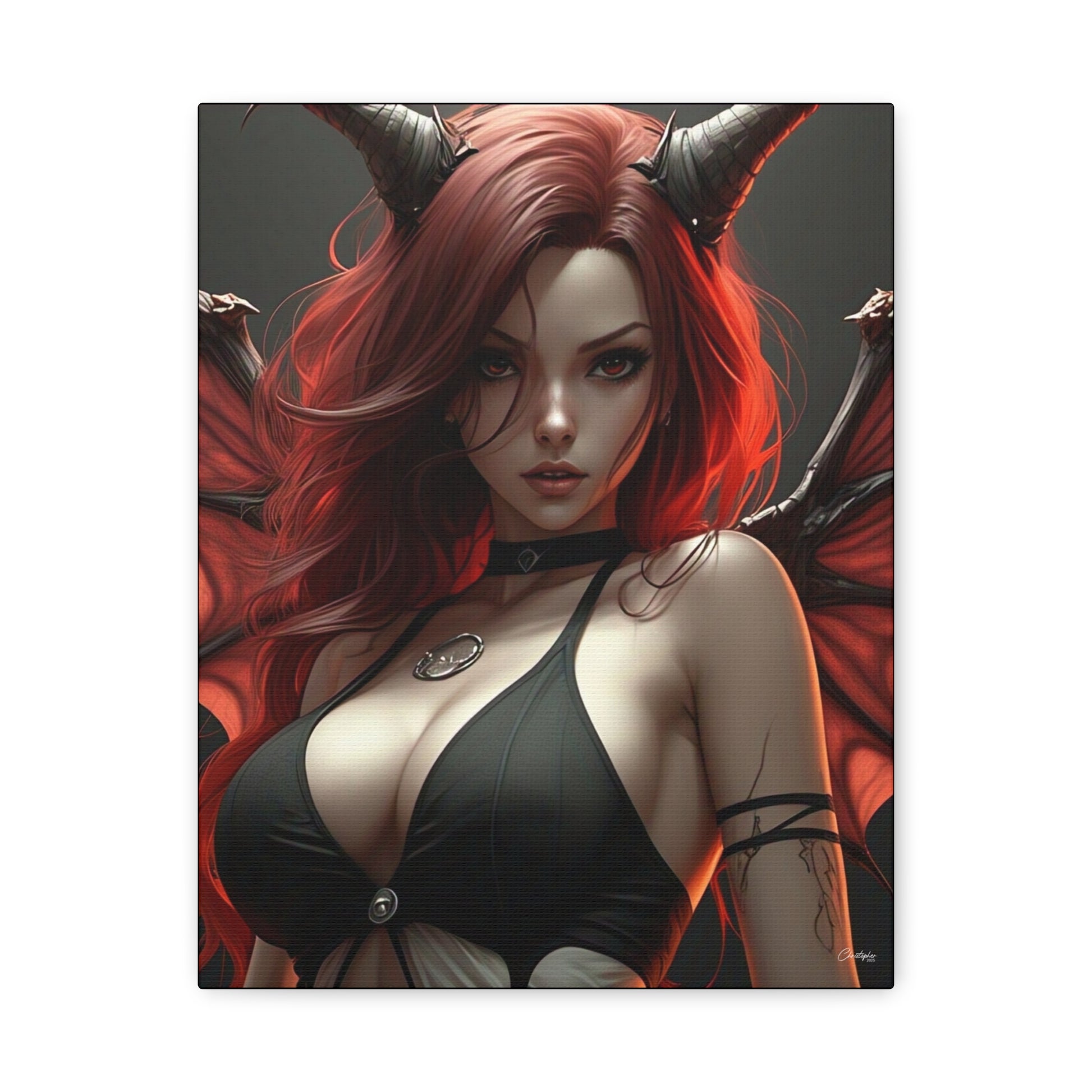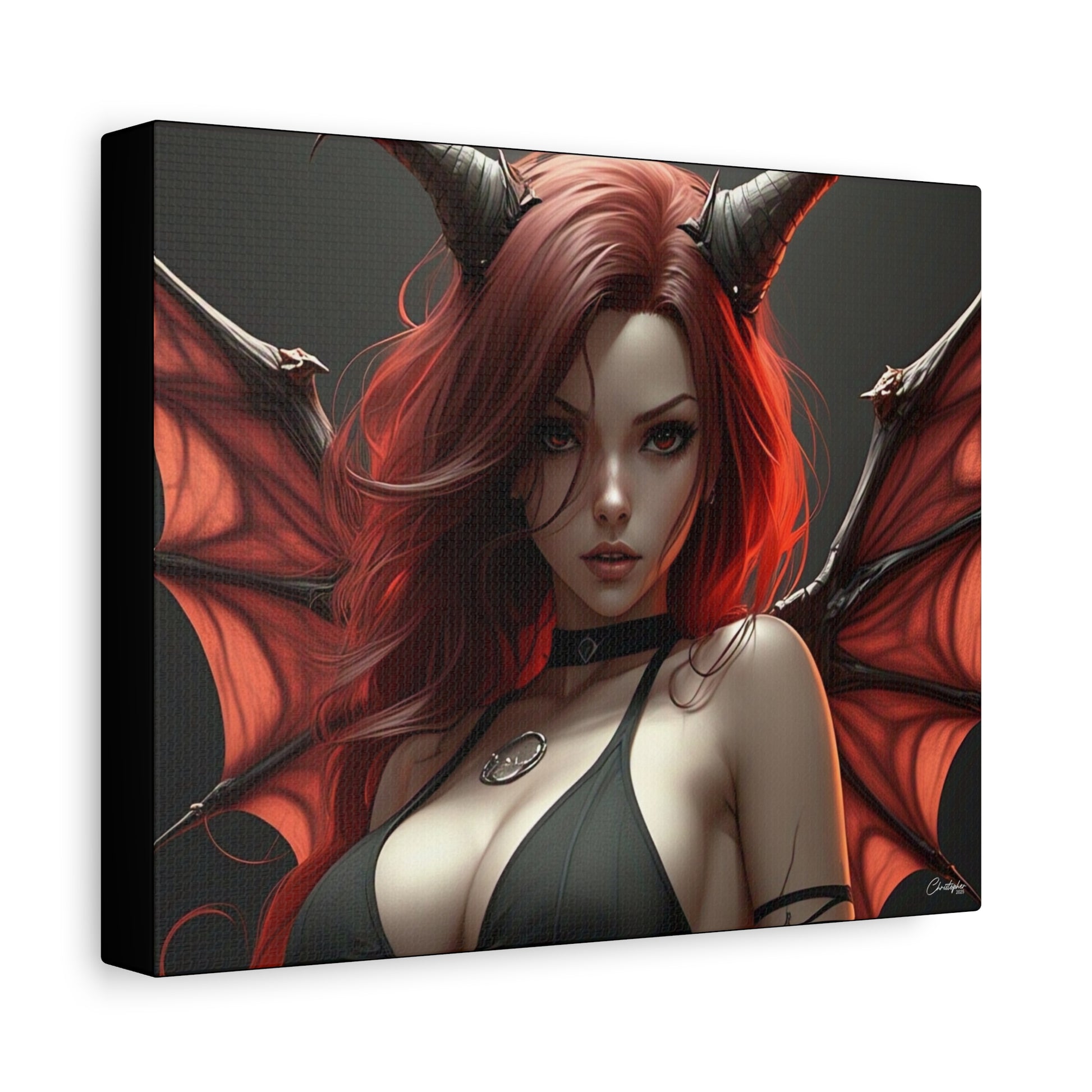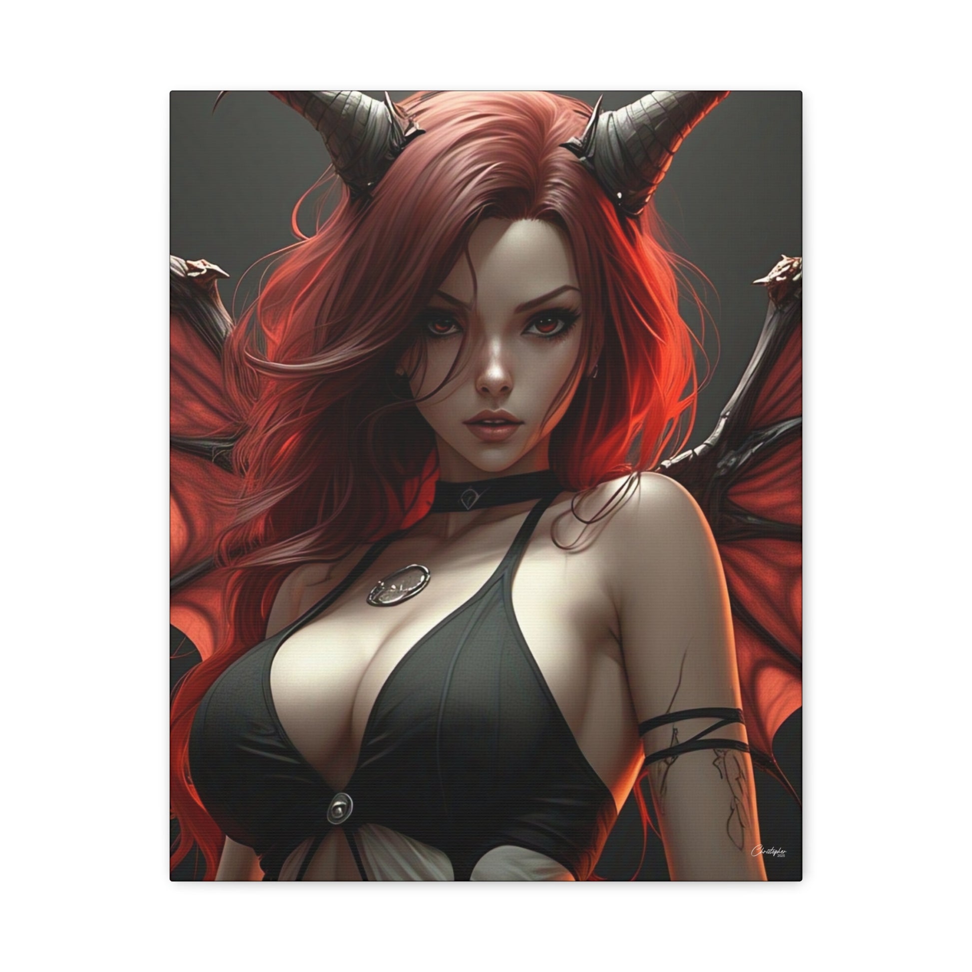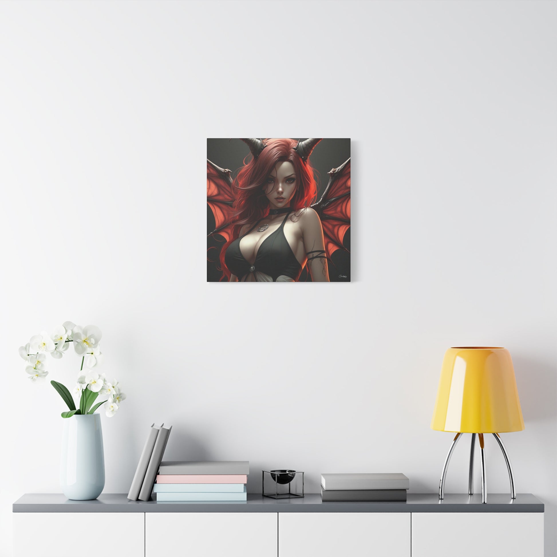 Gothic Fantasy Canvas Art, Demon Girl Wall Decor, Unique Home Decor, Gift for Her, Halloween or Birthday Gift