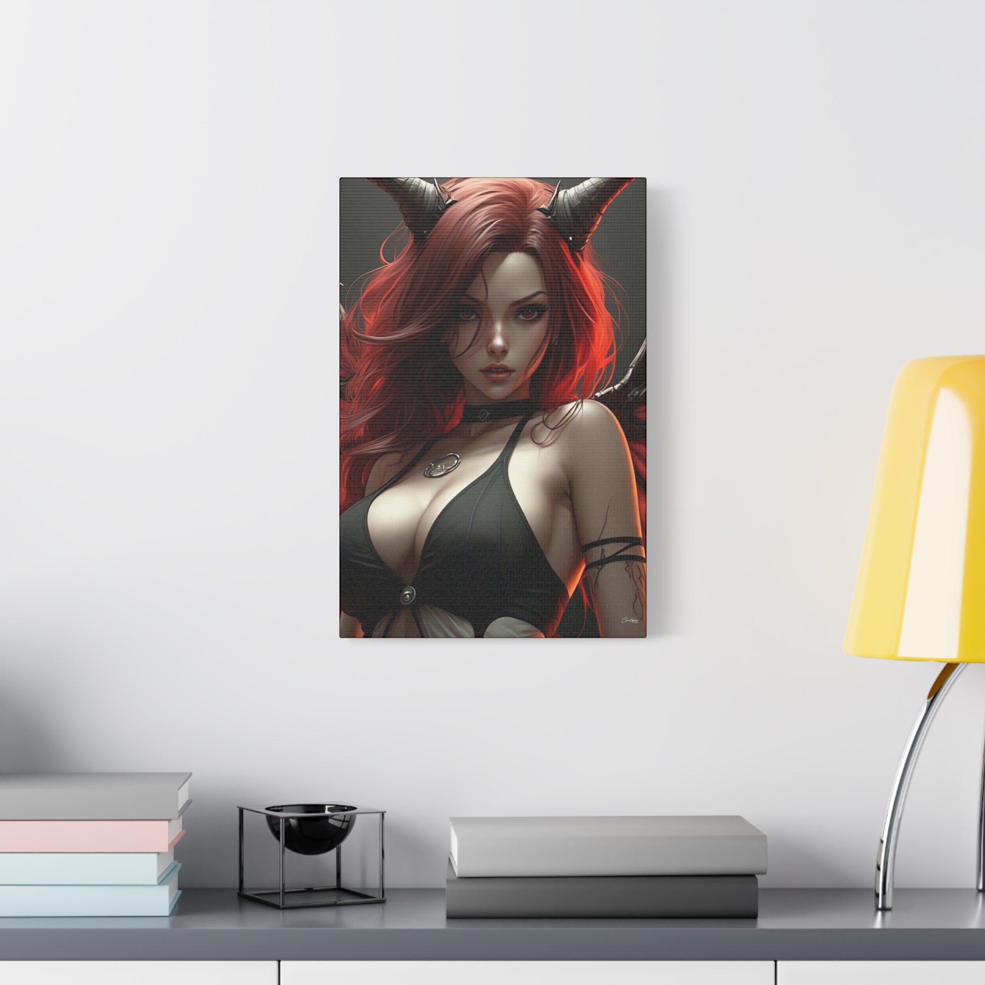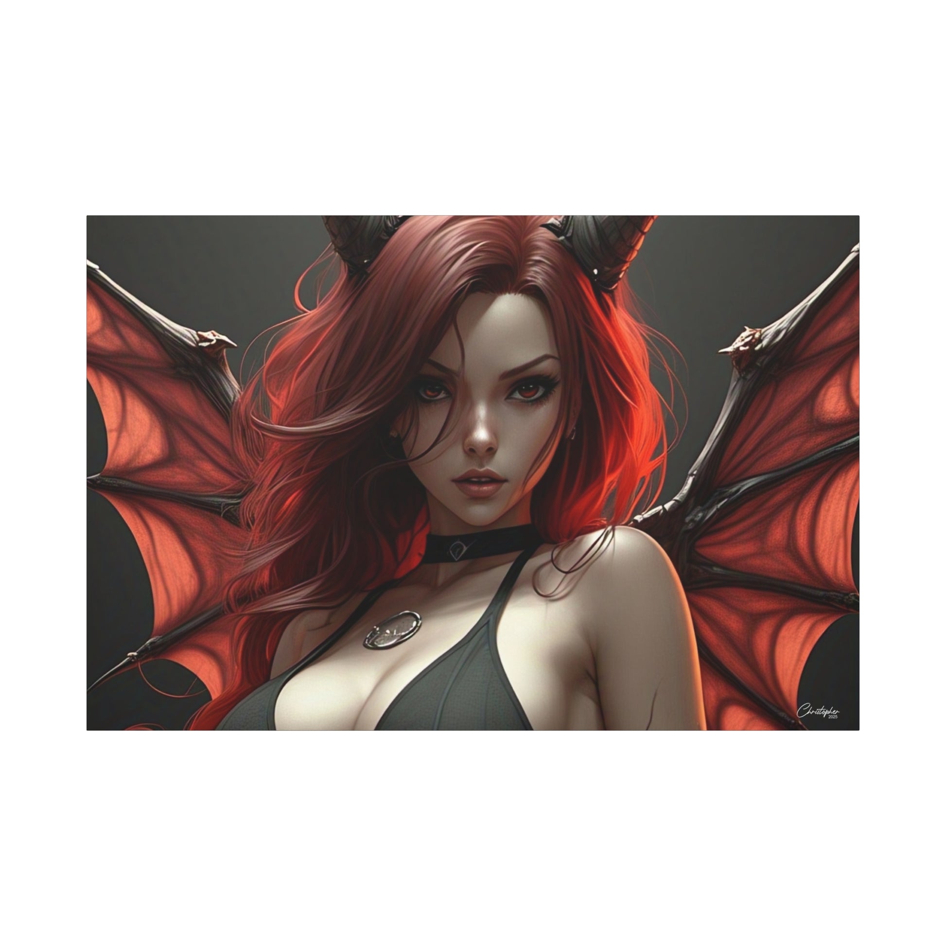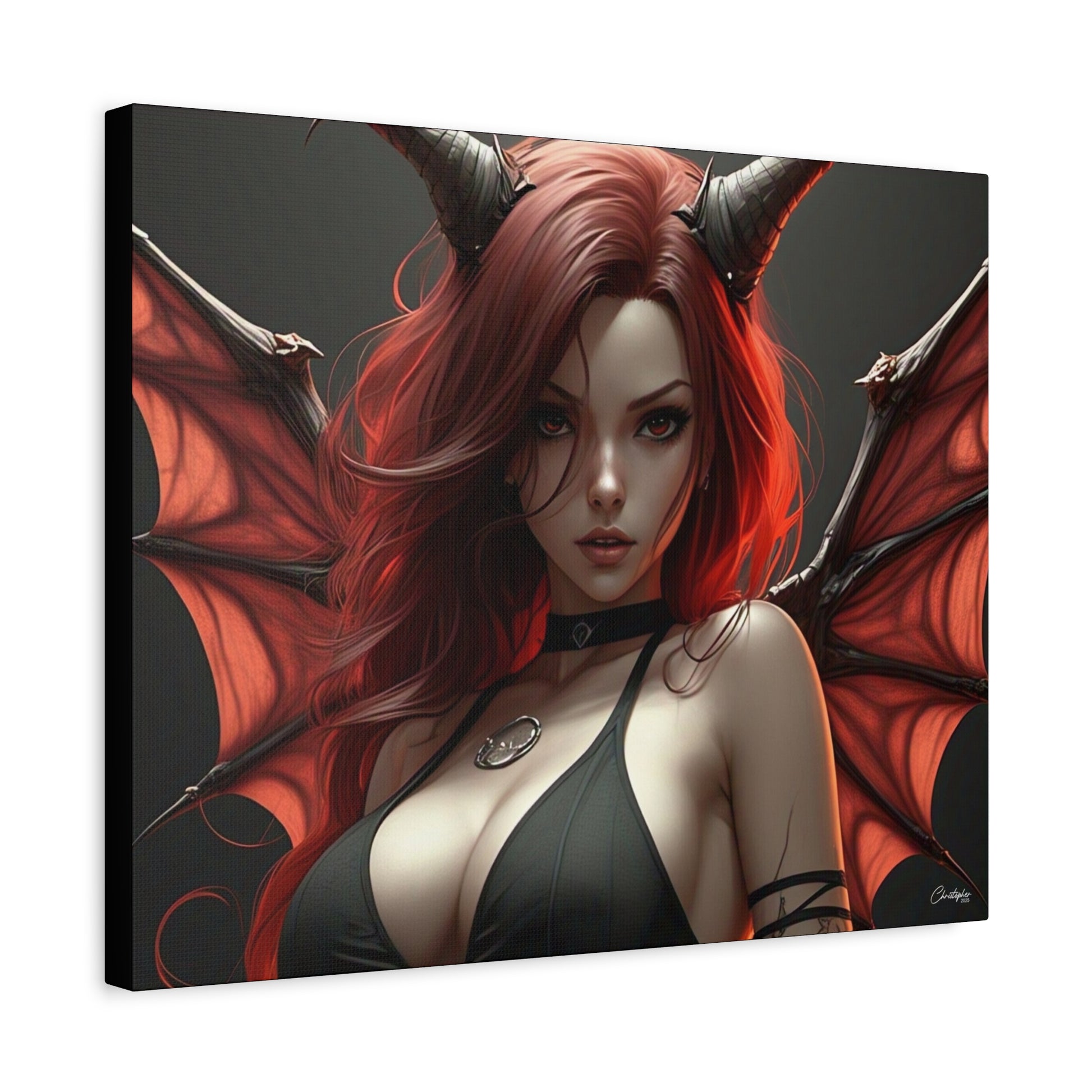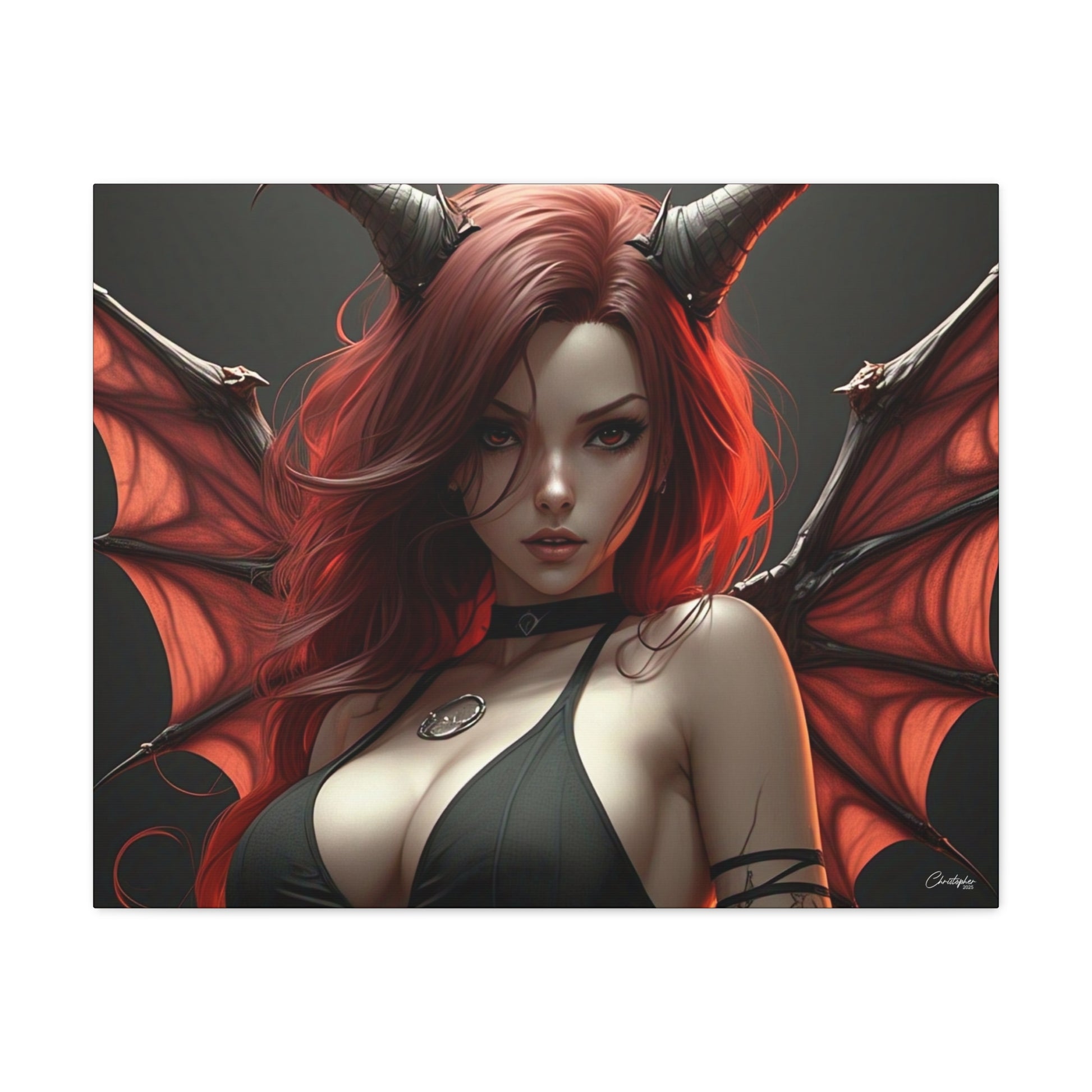 Gothic Fantasy Canvas Art, Demon Girl Wall Decor, Unique Home Decor, Gift for Her, Halloween or Birthday Gift