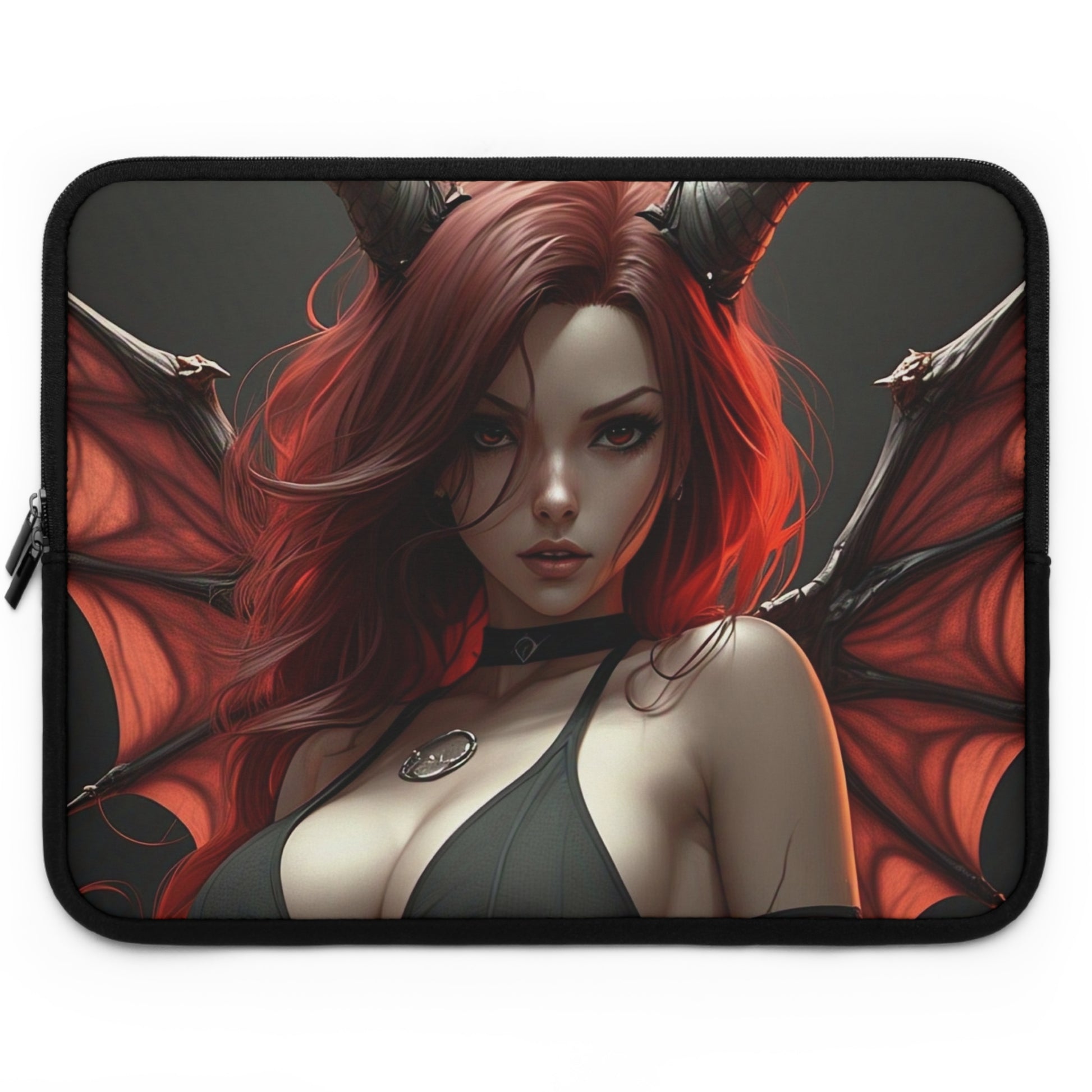Gothic Fantasy Laptop Sleeve, Devil Girl Design, Stylish Tech Accessory, Gift for Gamers, Unique Computer Case, Occult Aesthetic