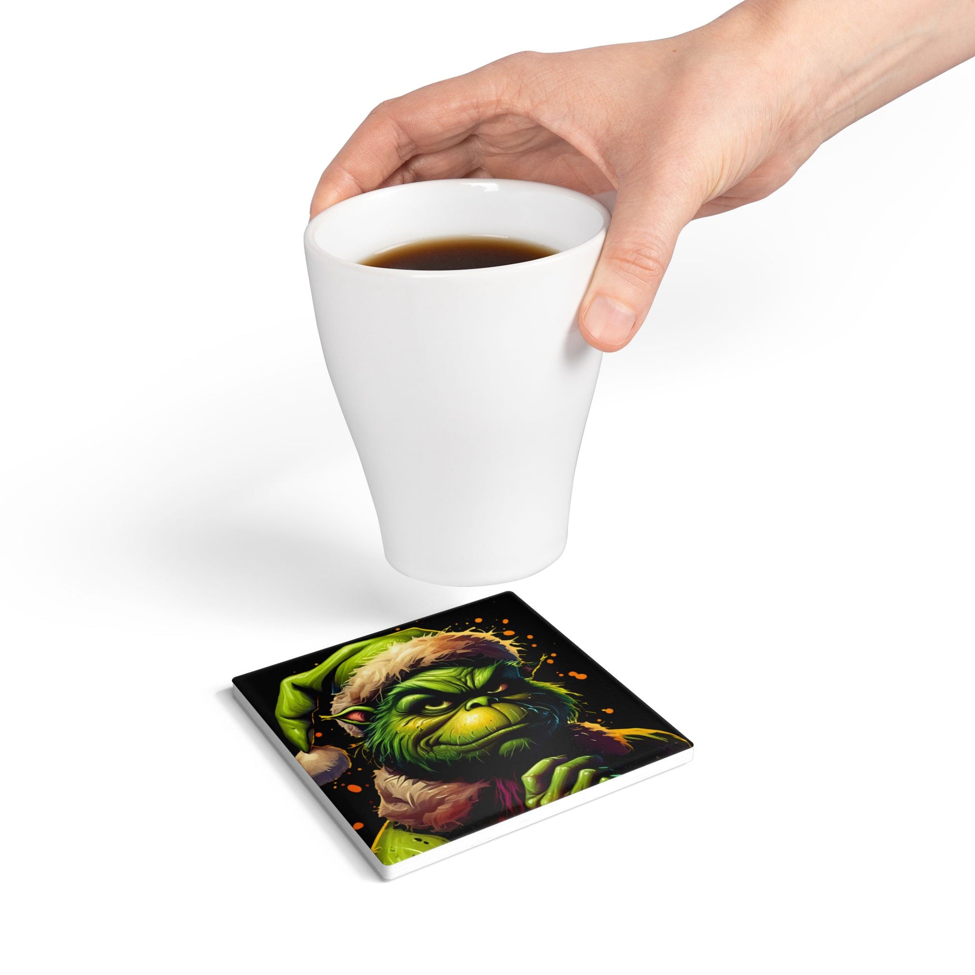 Grinch Santa Ceramic Coaster – Funny Christmas Holiday Drink Coaster