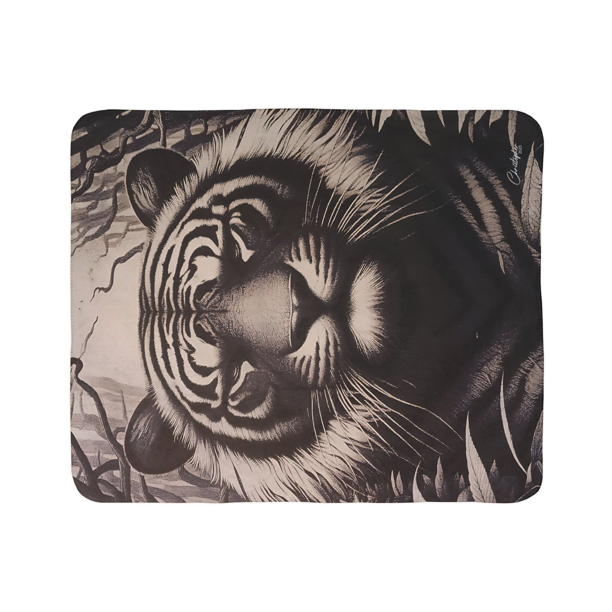 Laser Engraved Original Art Tiger Fleece Sherpa Blanket | Cozy Wildlife Throw for Animal Lovers, Home Decor, Gifts for Nature Enthusiasts, Indoor Comfort