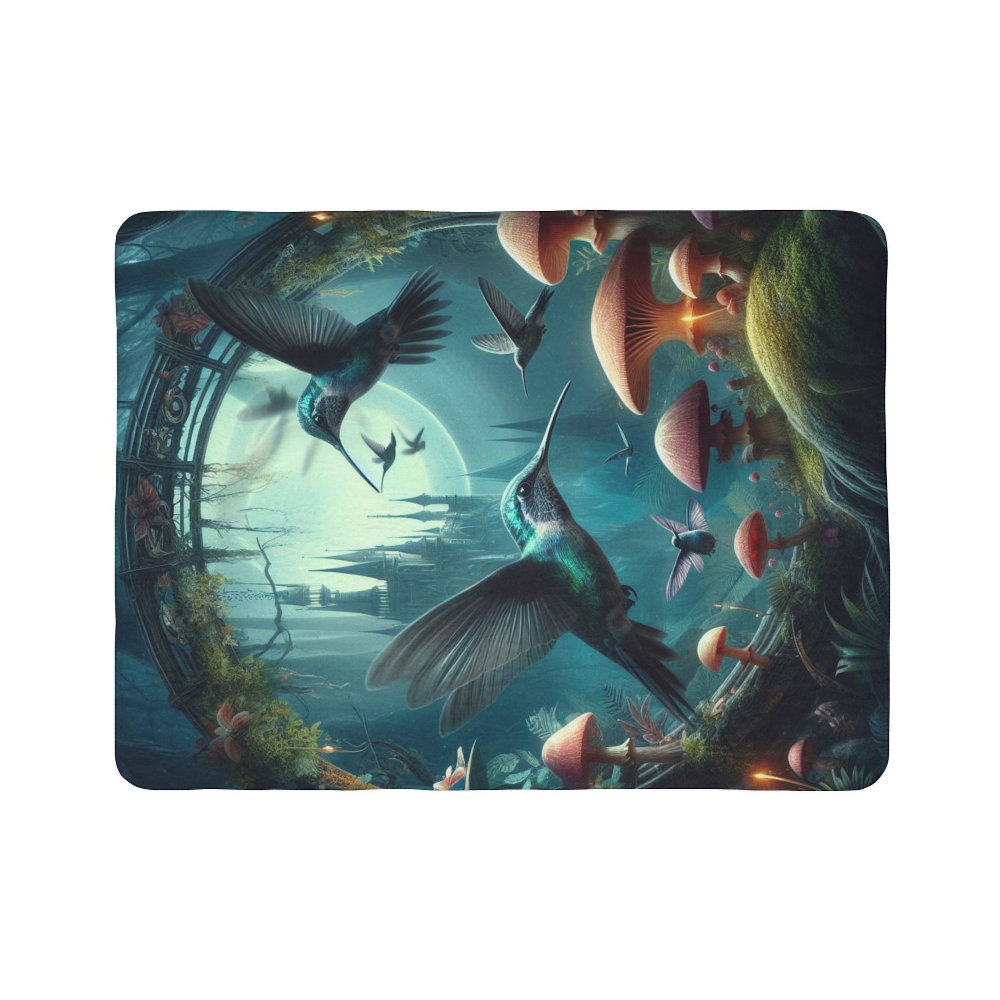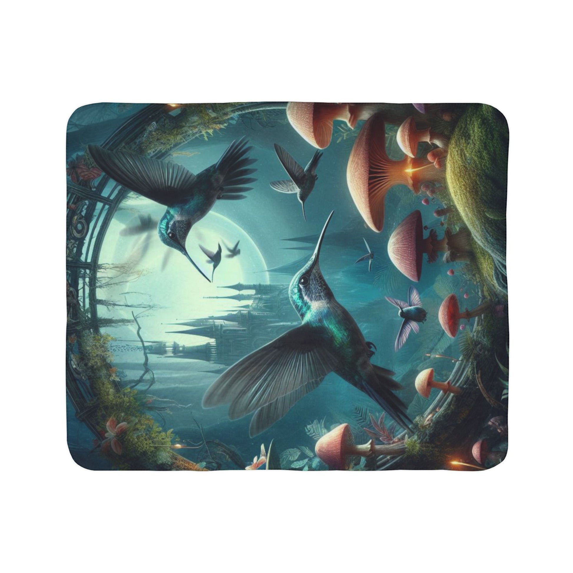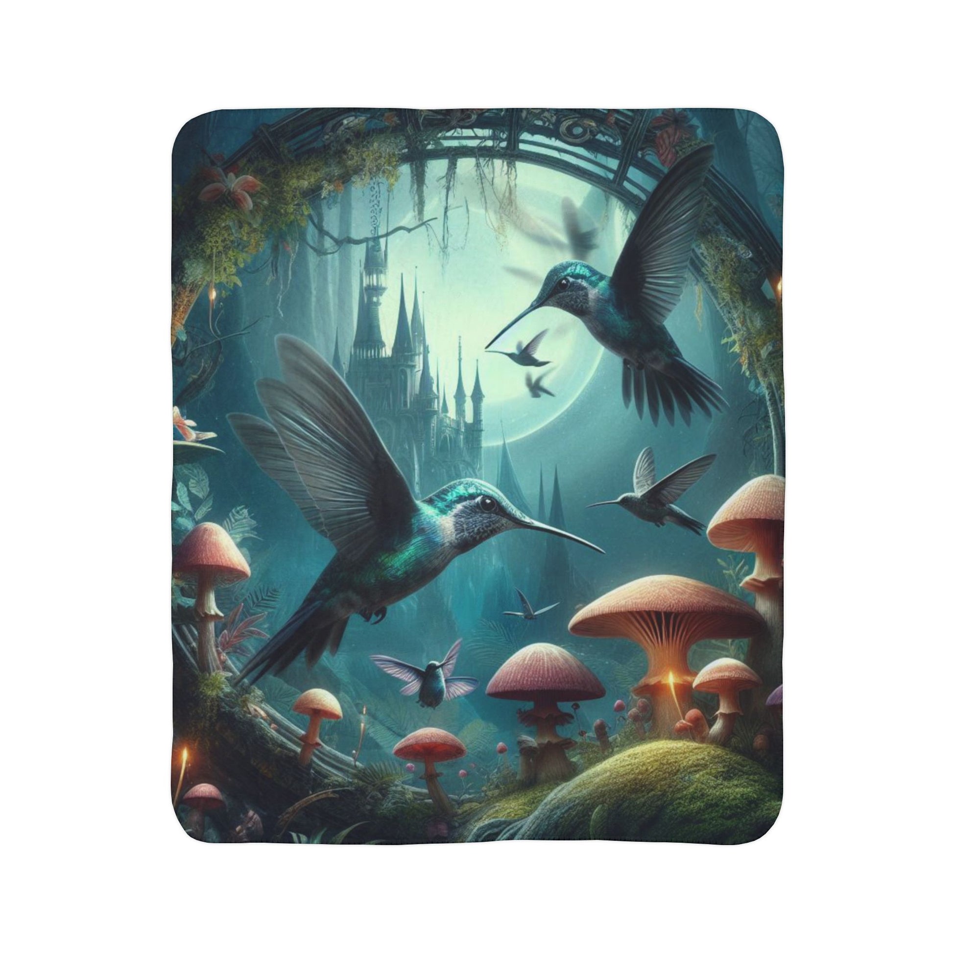 Magical Hummingbird Fleece Sherpa Blanket - Cozy Gift for Nature Lovers, Home Décor, Comfortable Throw, Boho Accent