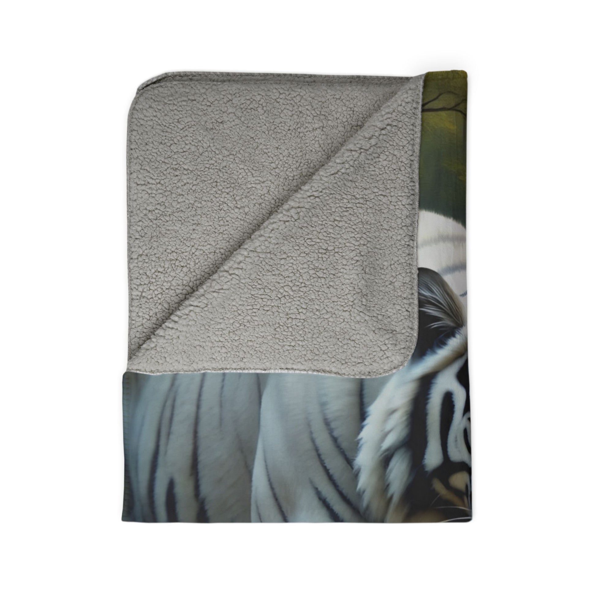 Wrap yourself in comfort and style with this plush fleece Sherpa blanket. It features a striking design of a majestic white tiger set against a lush forest backdrop, creating a serene yet powerful atmosphere. Perfect for cozy nights at home, movie marathons, or relaxed reading sessions, this blanket adds a touch of wildlife elegance to your living space. Ideal for nature lovers and wildlife enthusiasts, it makes a thoughtful gift for birthdays, holidays, and special celebrations. Whether you're snuggling up on the couch or adding a decorative touch to your bedroom, this blanket delivers warmth and style in equal measure.