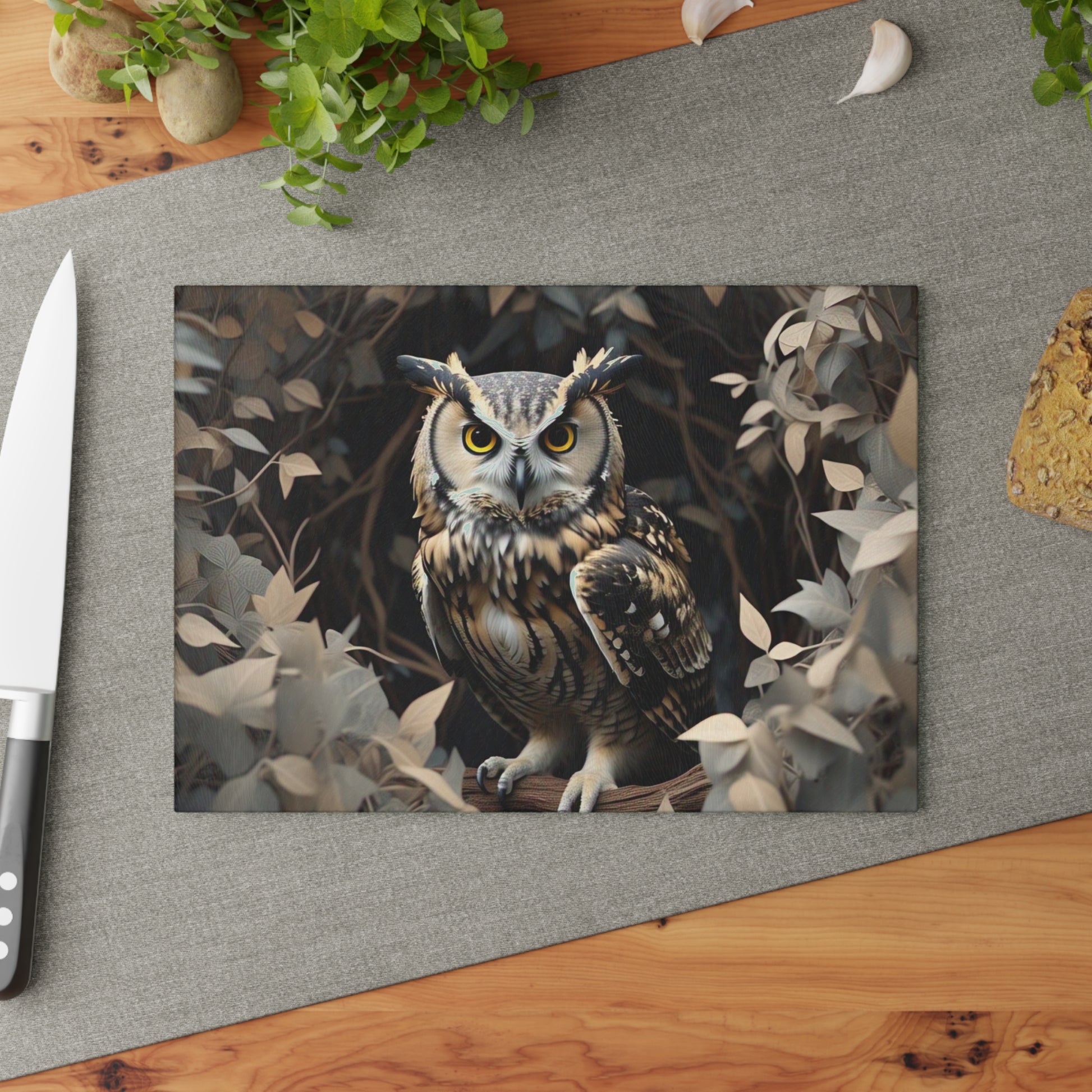 Owl Glass Cutting Board - Elegant Kitchen Decor for Nature Lovers