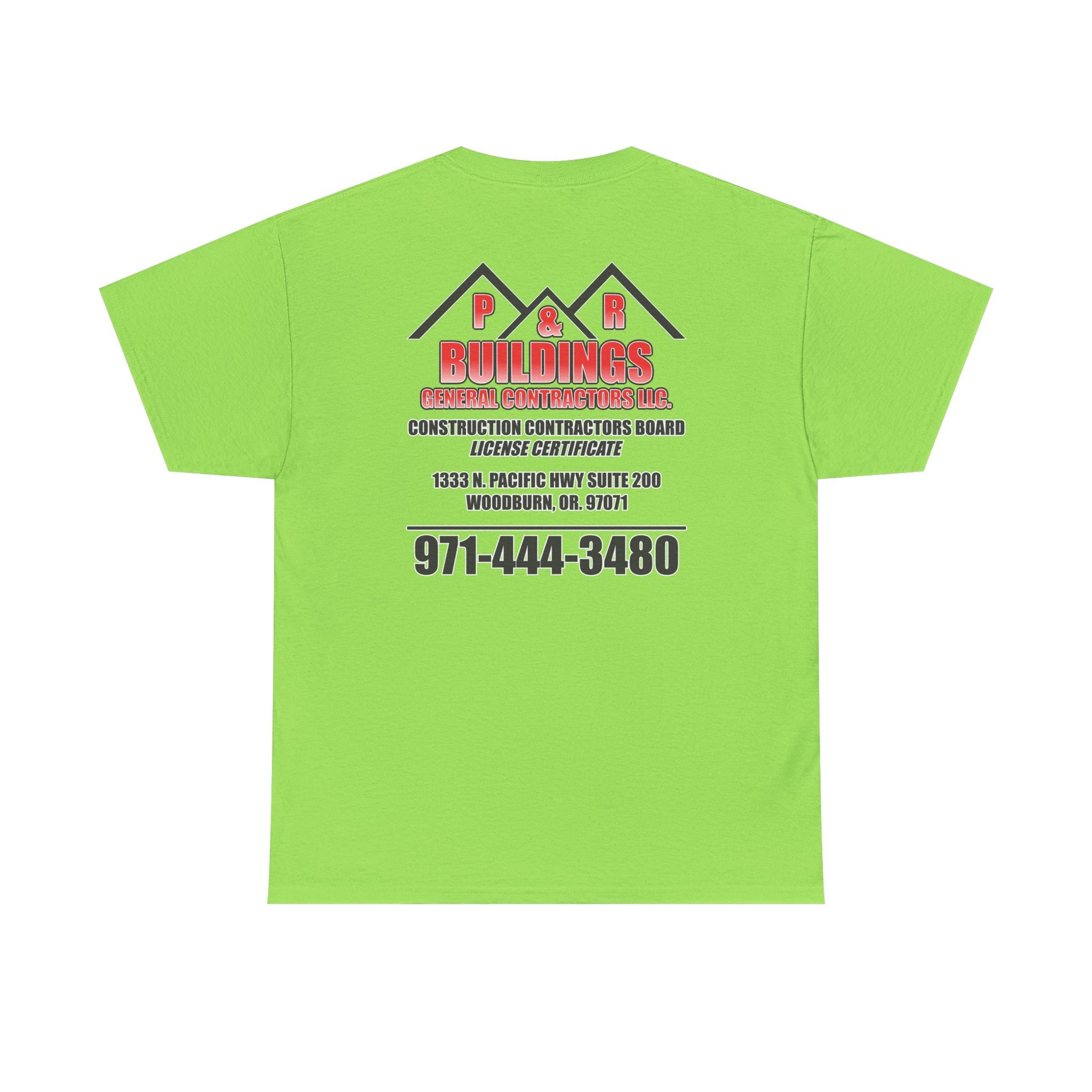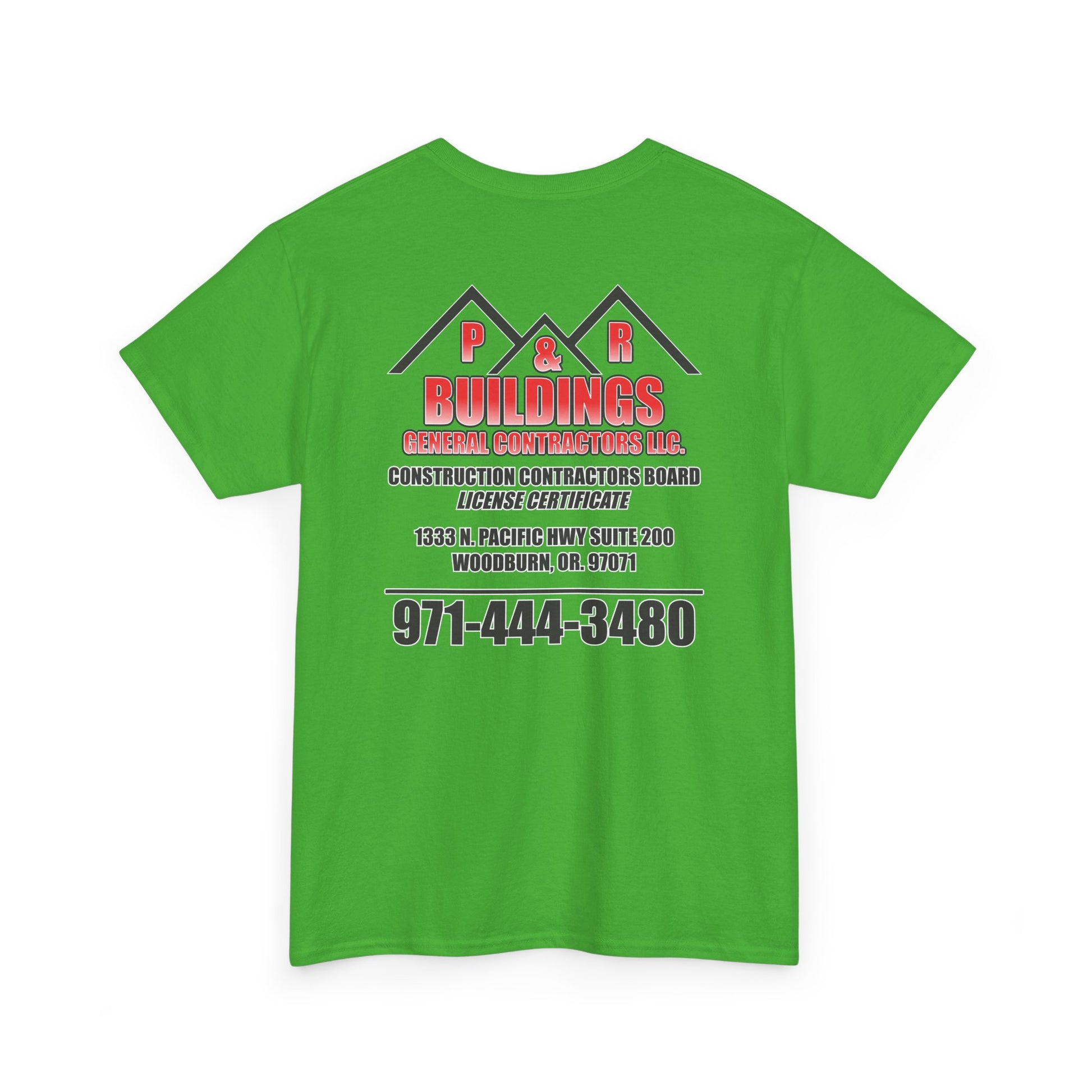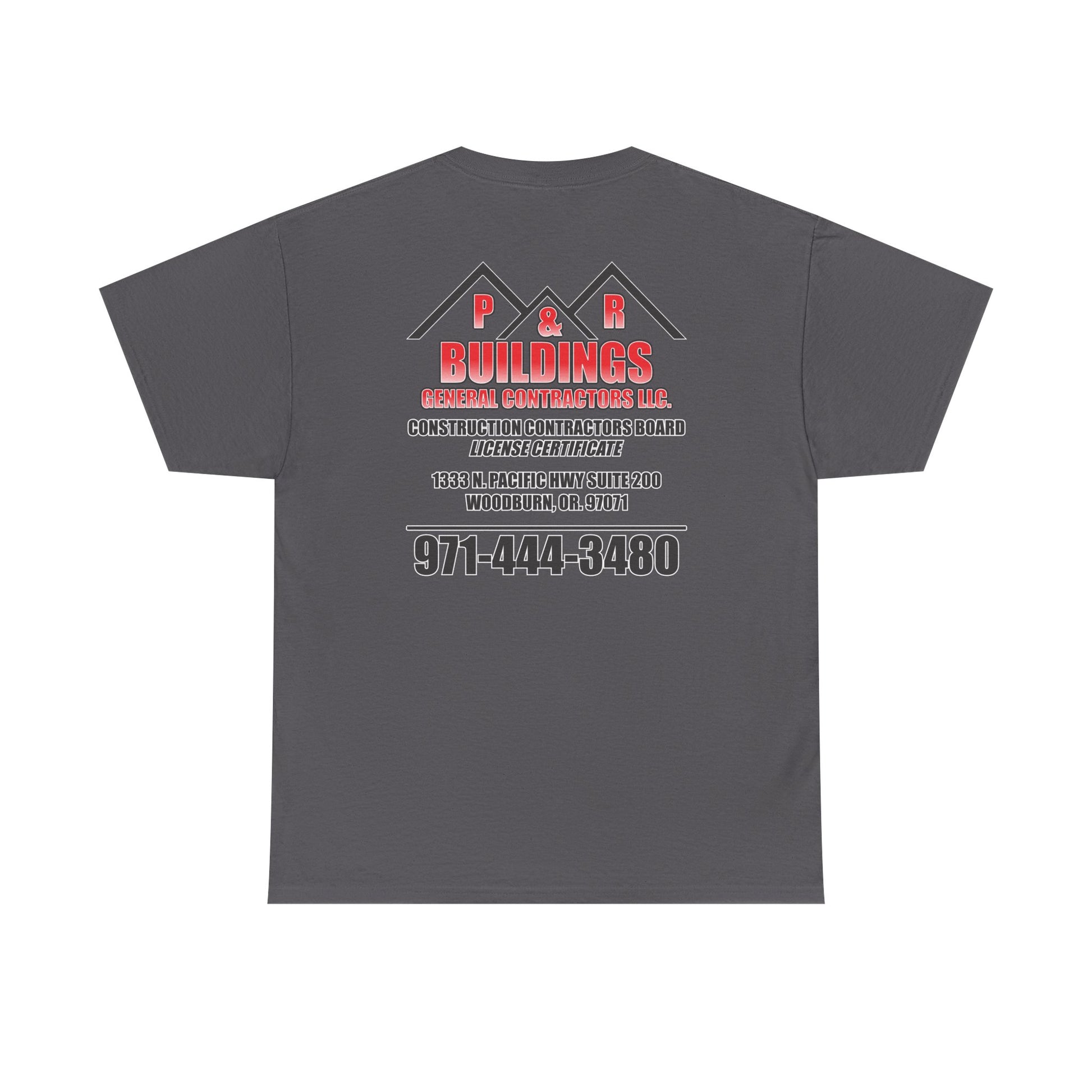 P&R BUILDINGS Logo Tee — Built Kings Contractor T‑Shirt (Phone & License Info on Back)
