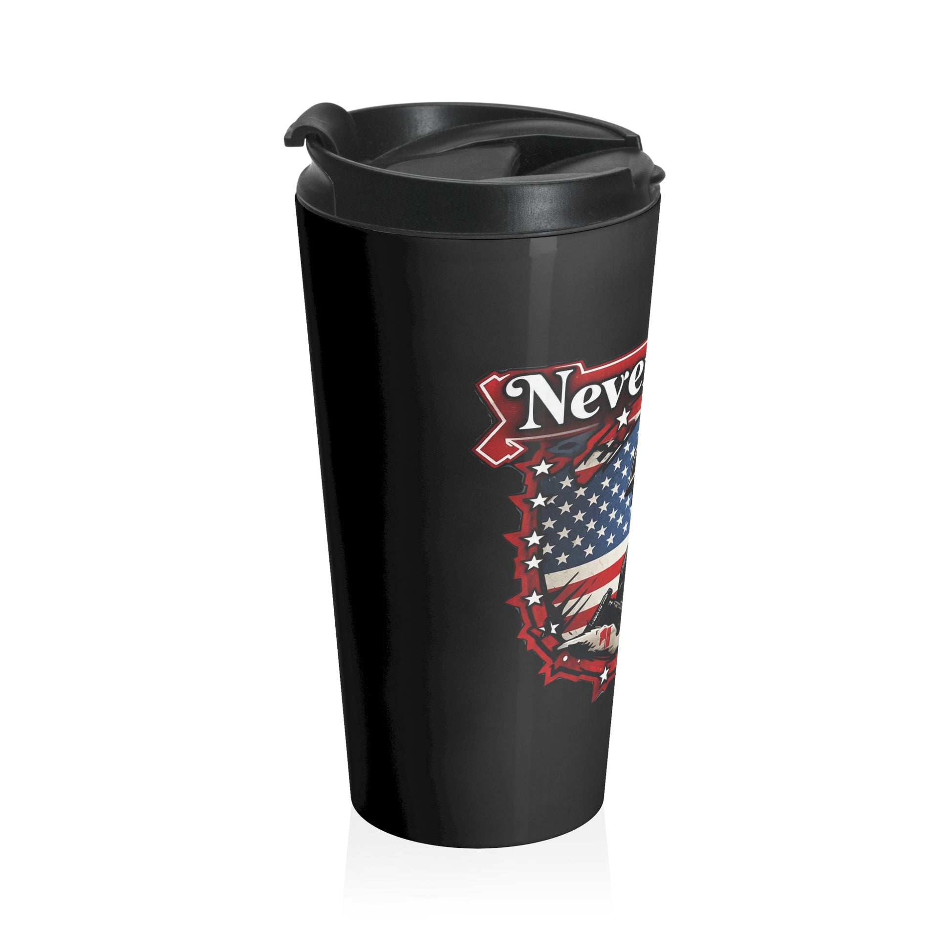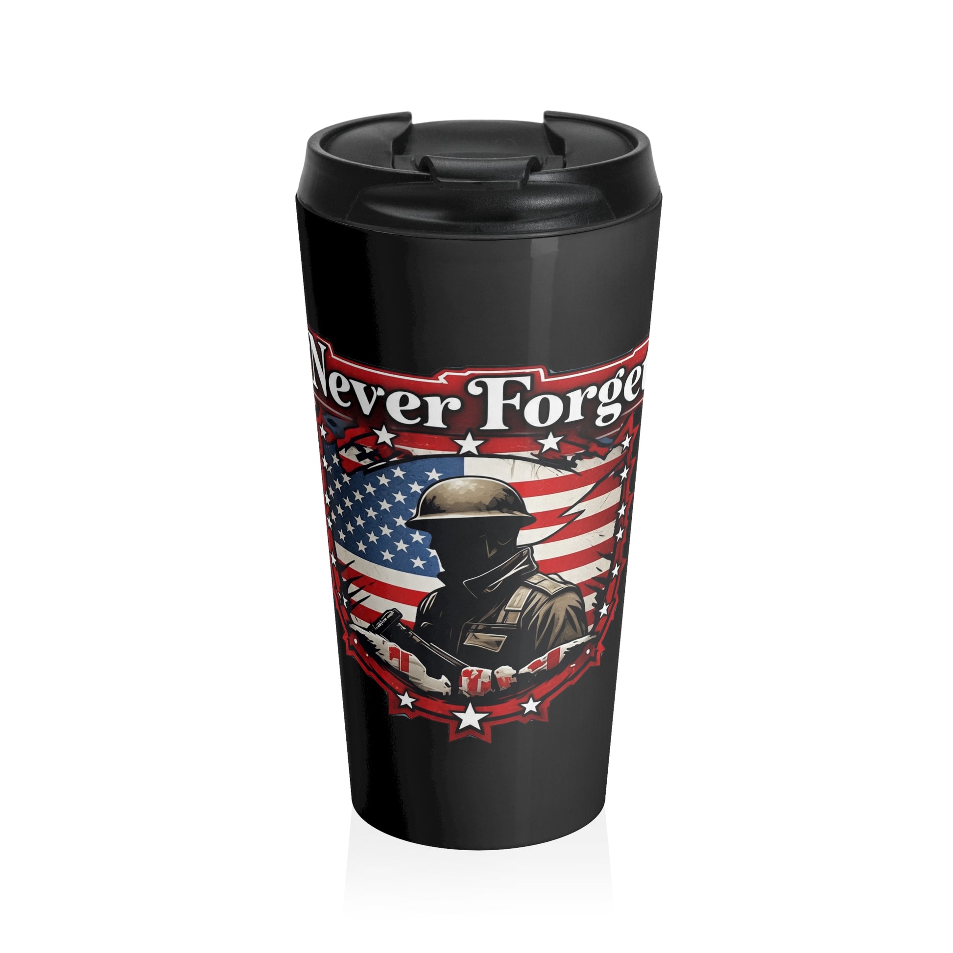 Patriotic Stainless Steel Travel Mug - Never Forget, Gift for Veterans, Coffee Lover, Travel Accessory, Memorial Day, Independence Day