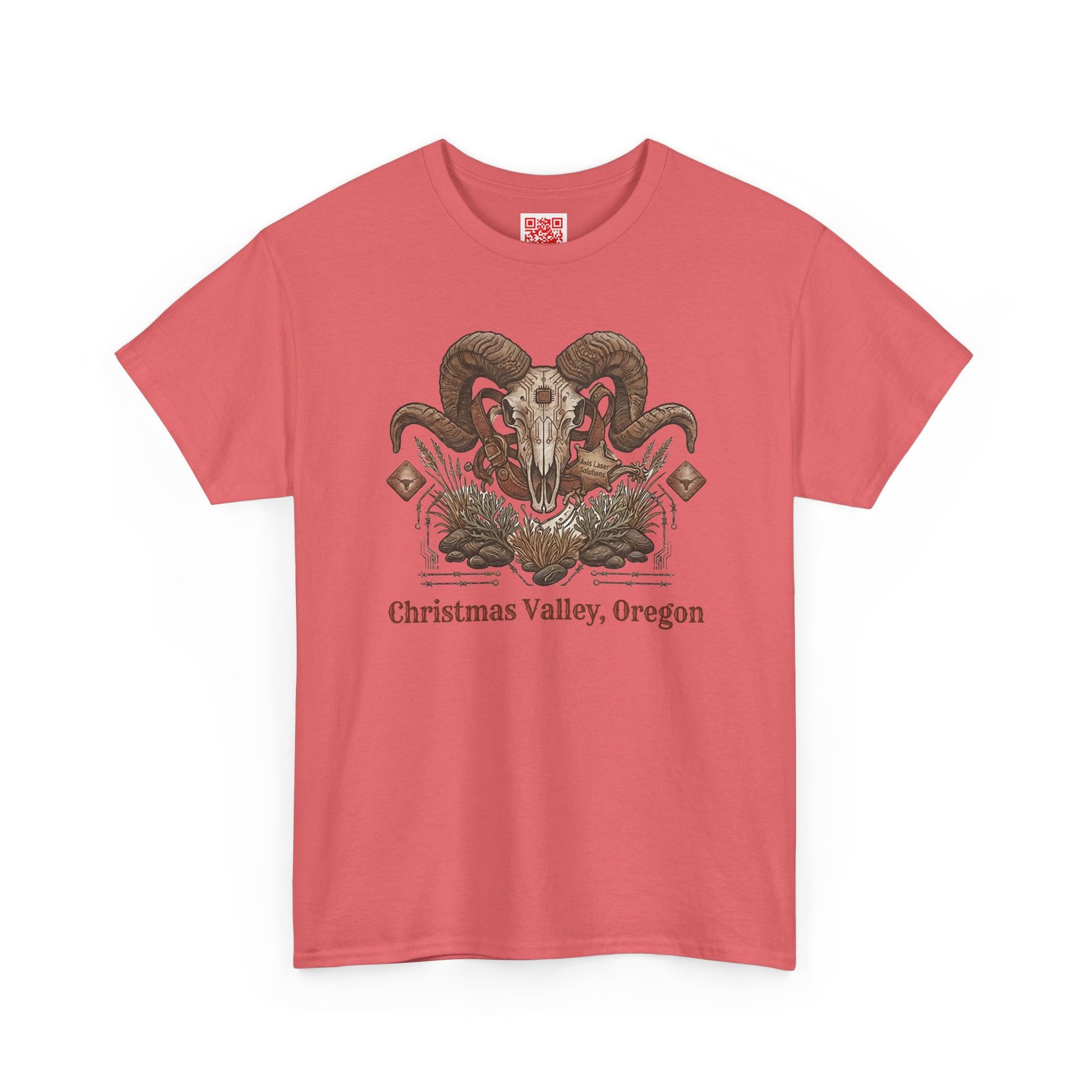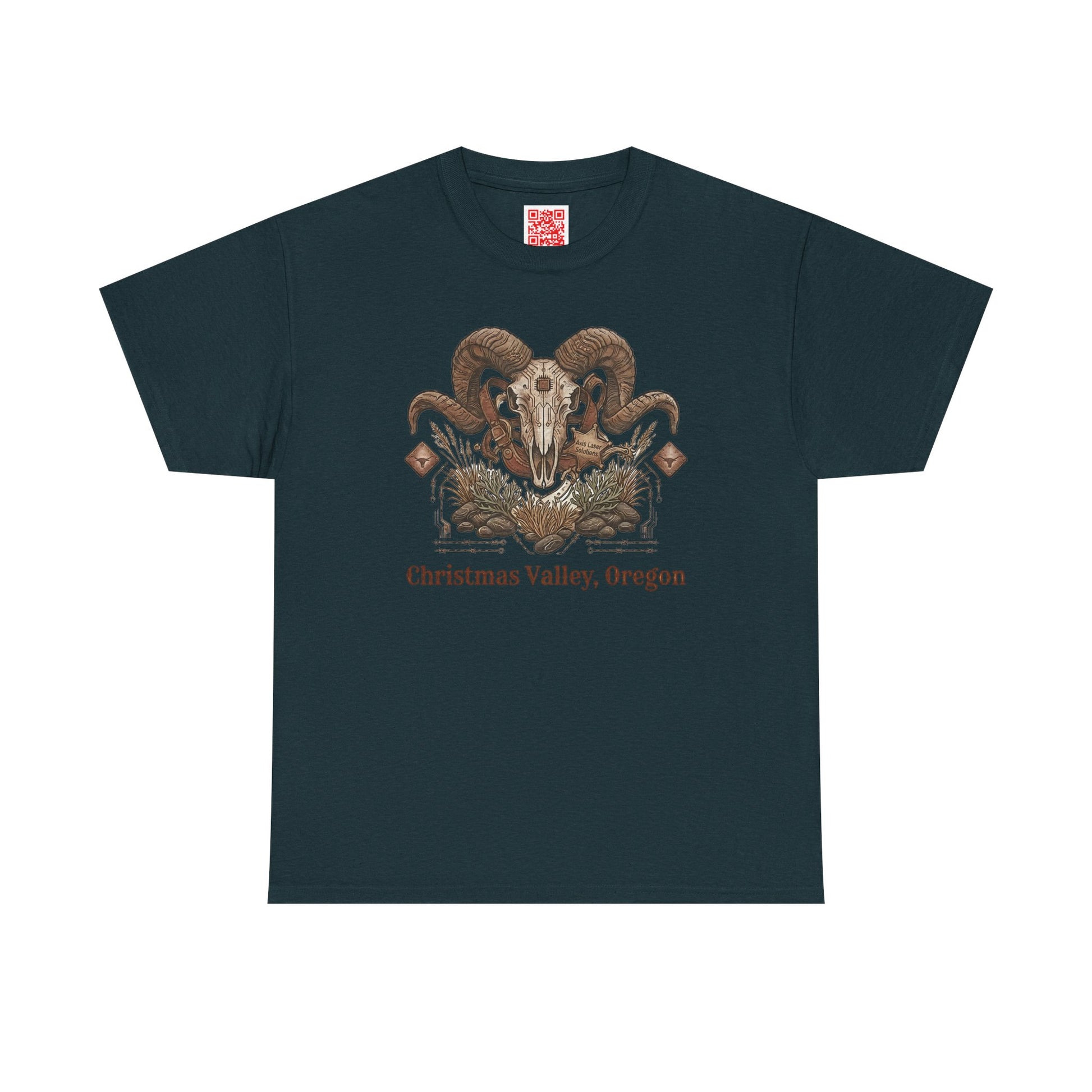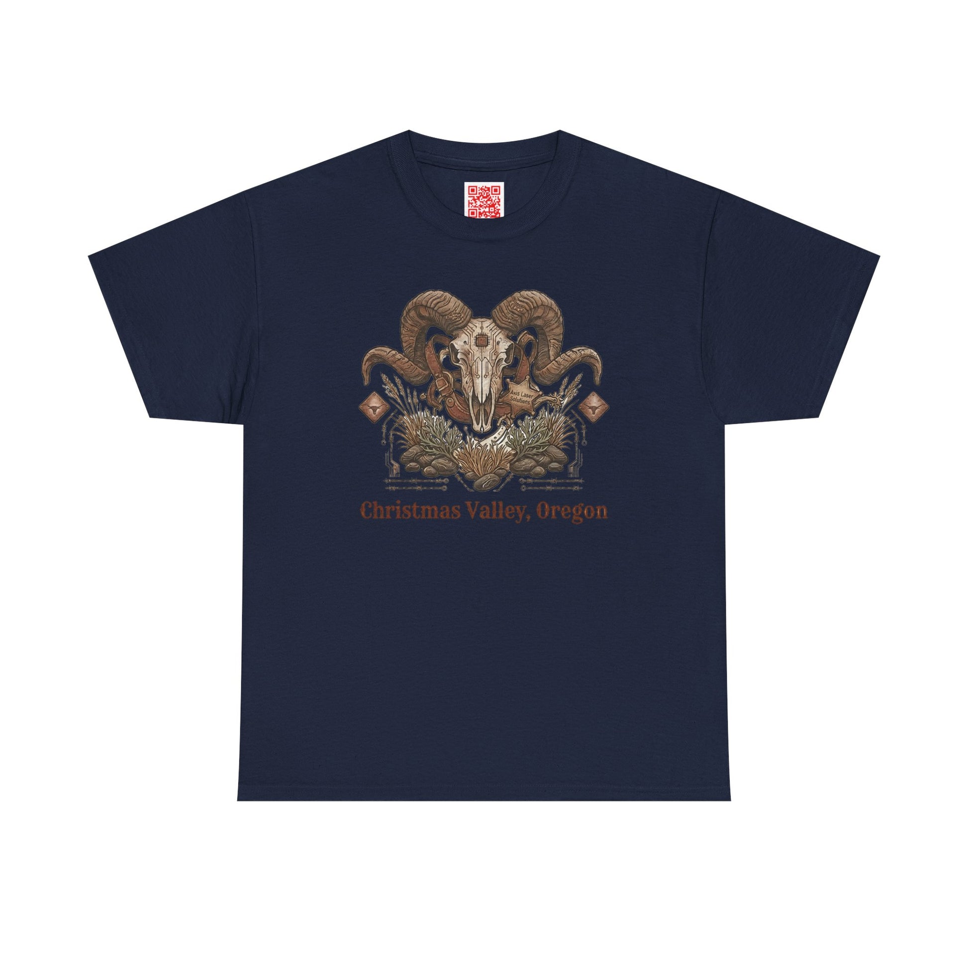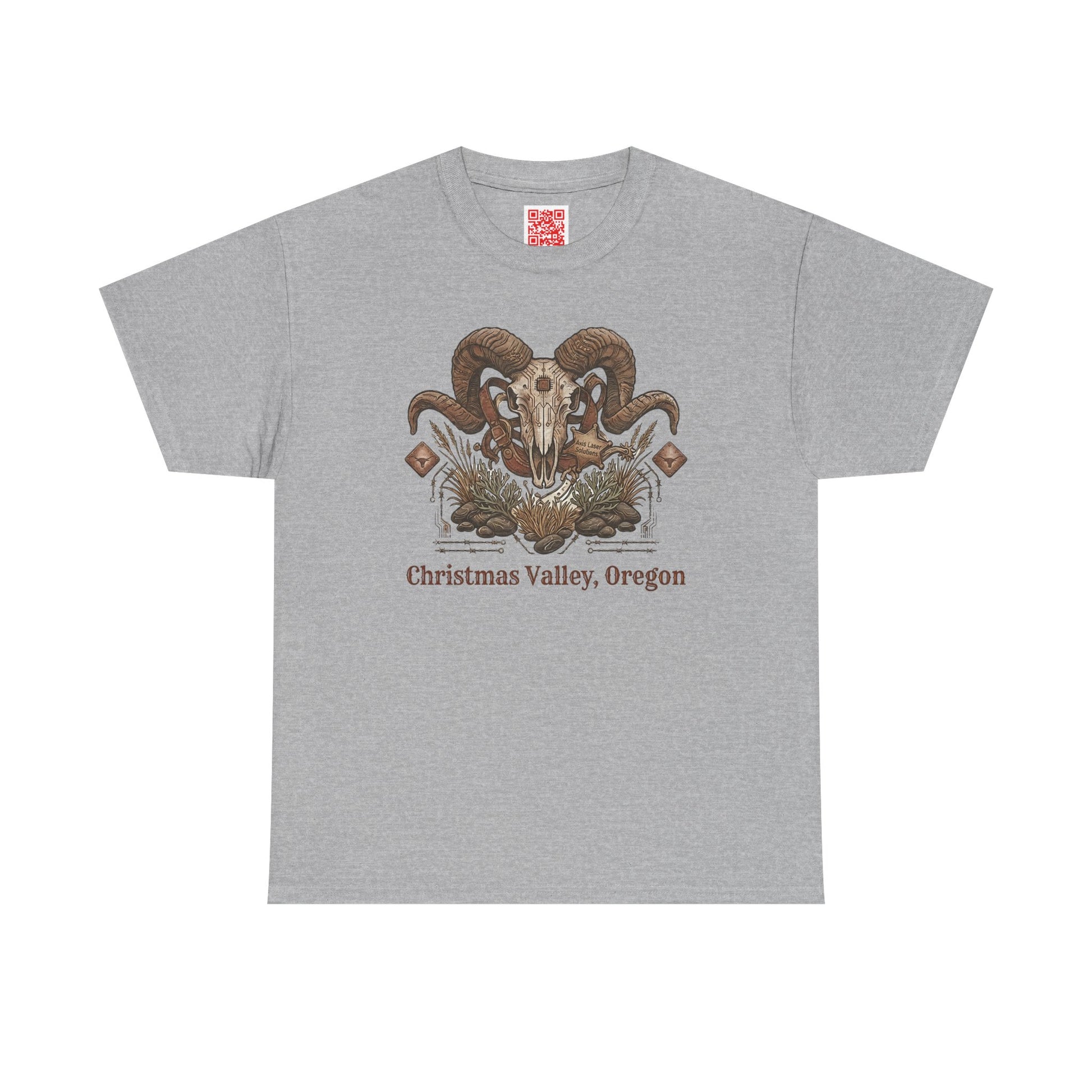 Ram Skull Graphic Tee Double Sided no background on the Back — Christmas Valley, Oregon Vintage Western T-Shirt