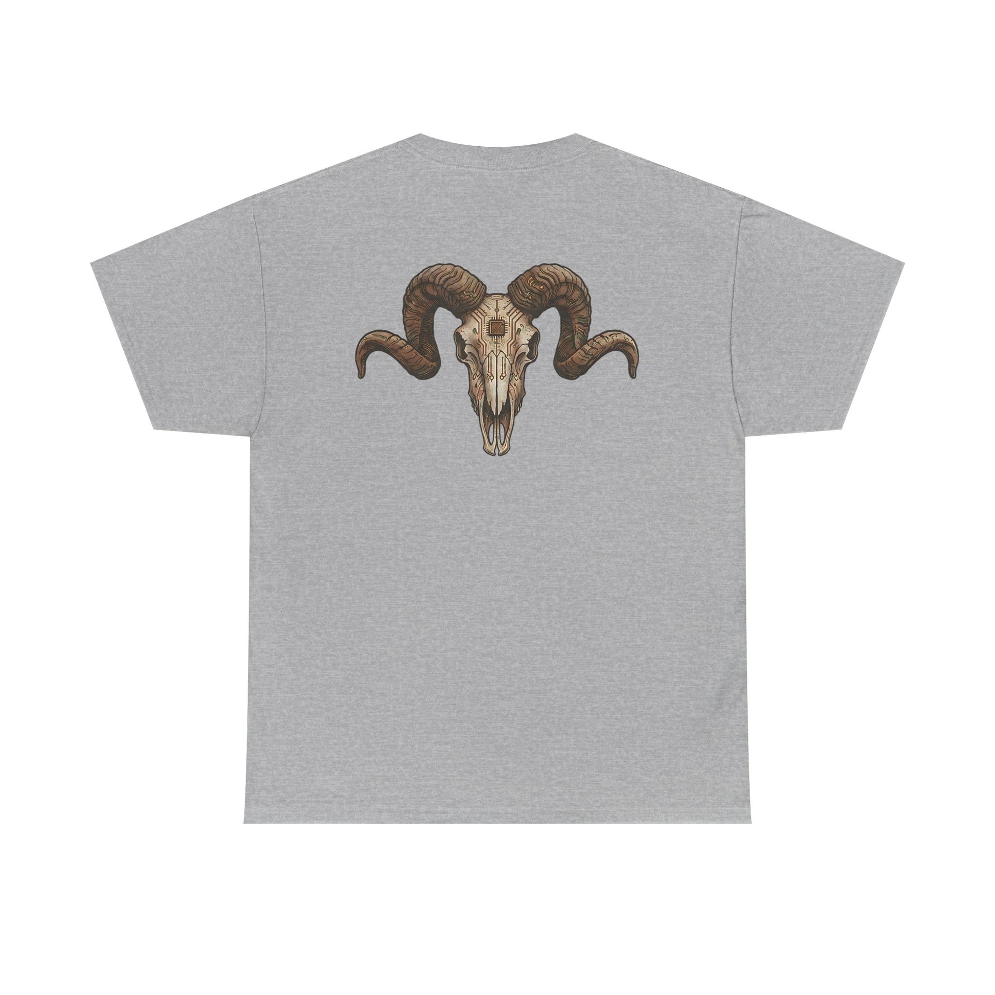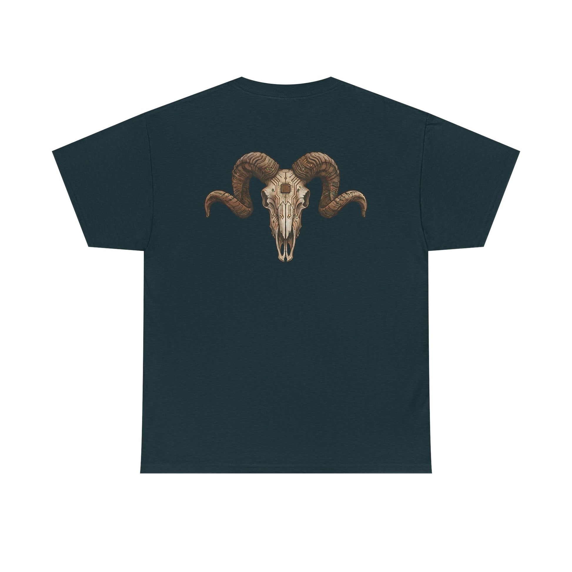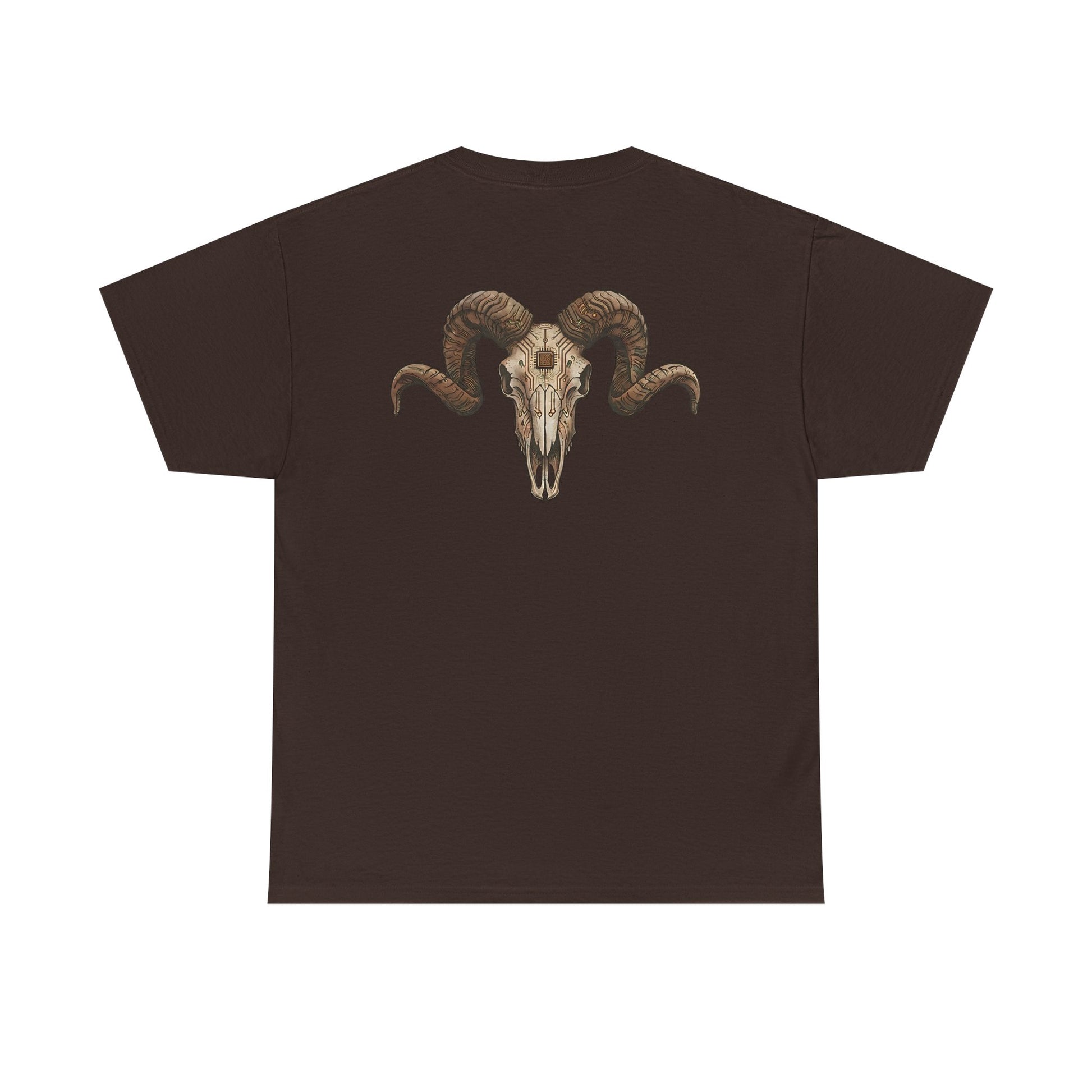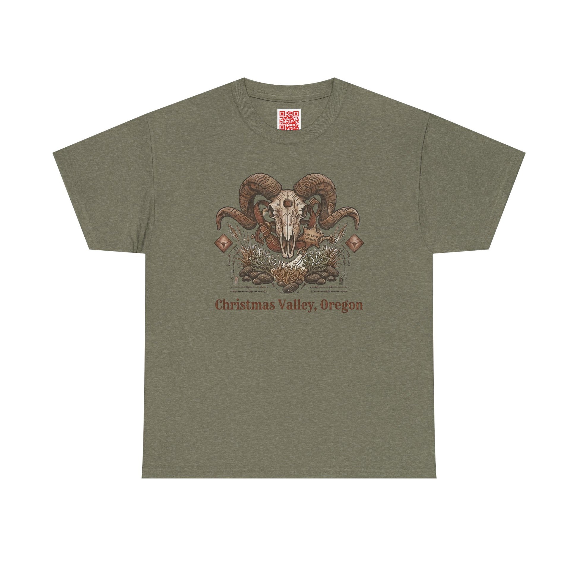 Ram Skull Graphic Tee Double Sided no background on the Back — Christmas Valley, Oregon Vintage Western T-Shirt