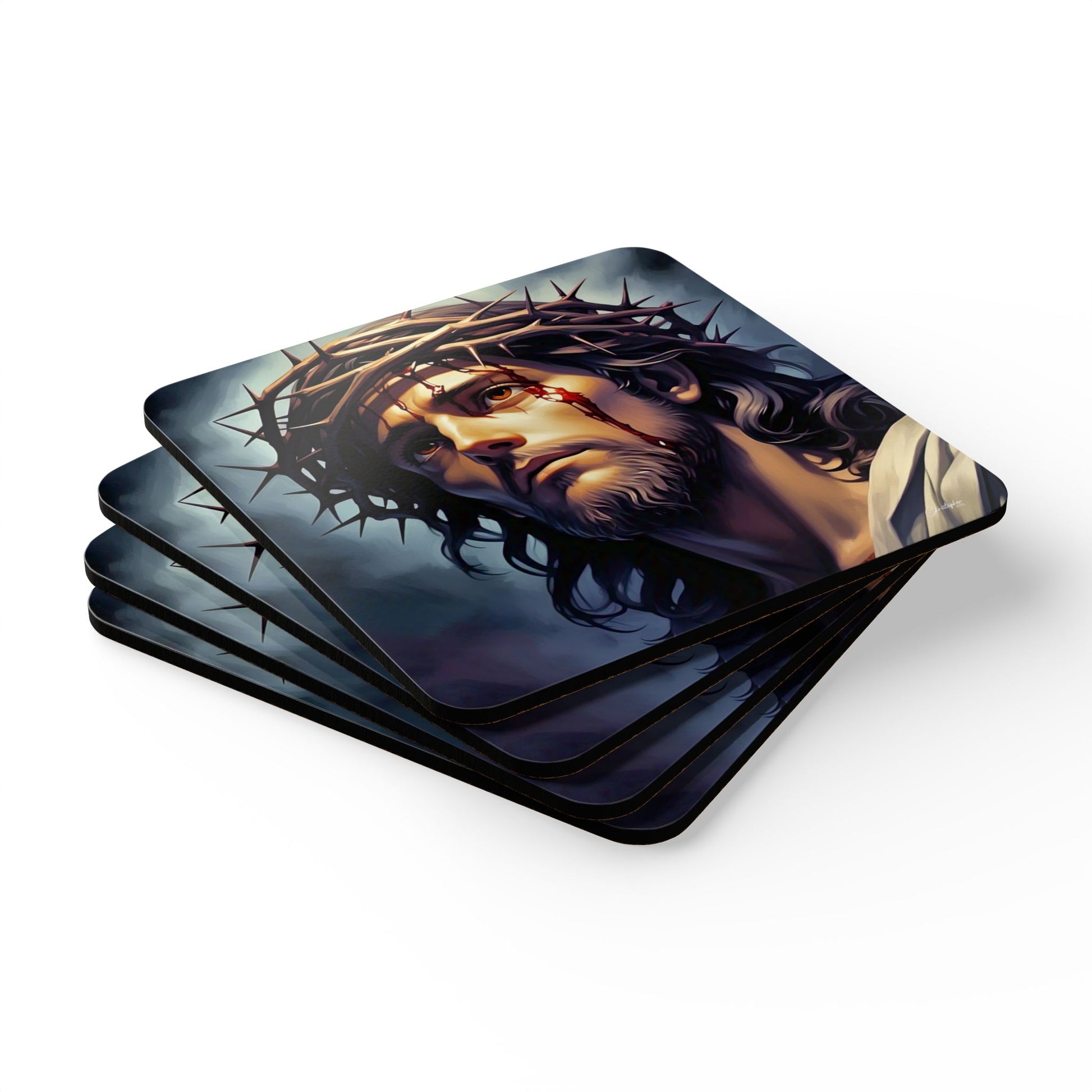 Religious Artwork Corkwood Coaster Set, Jesus Coasters, Christian Home Decor, Gift for Believers, Table Accessories for Faith