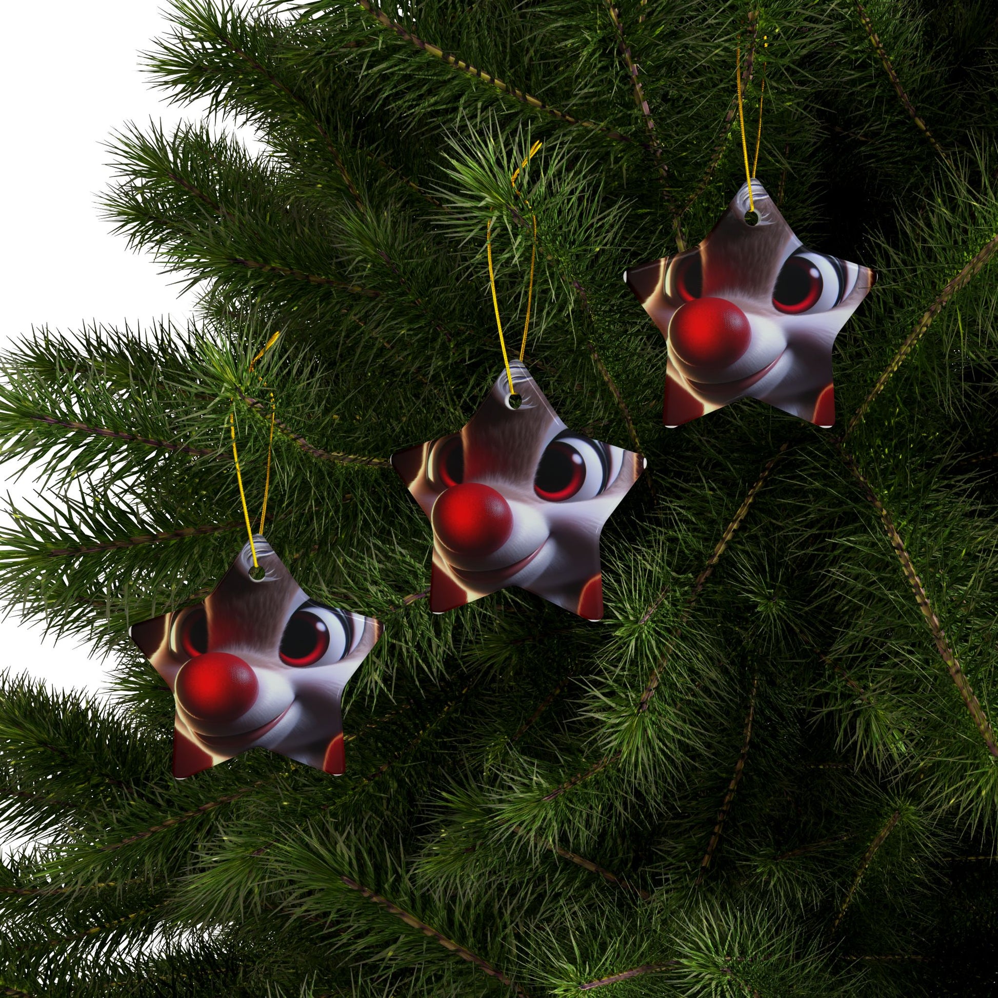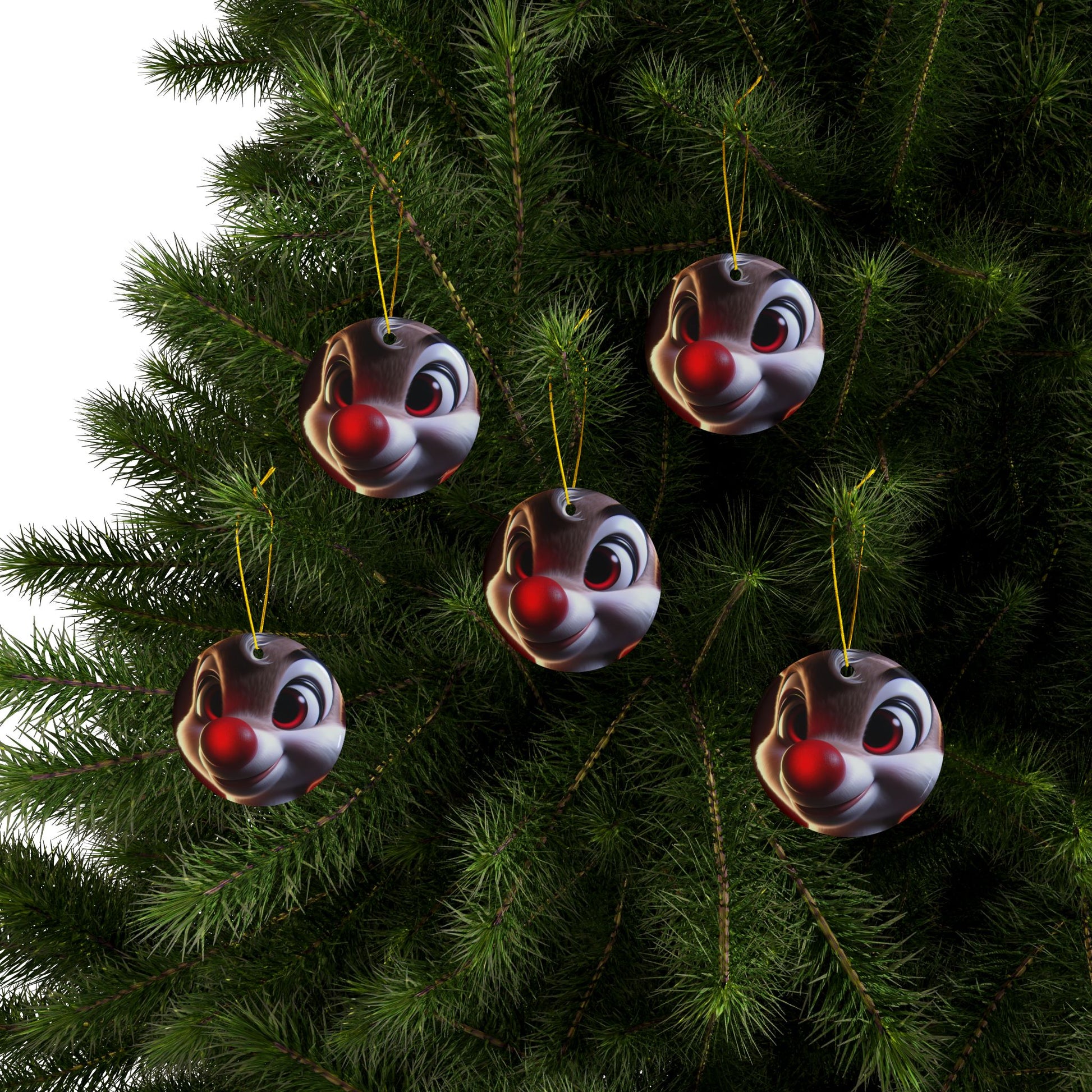 Rudolph Reindeer Ceramic Ornament — Round Double-Sided Holiday Decor