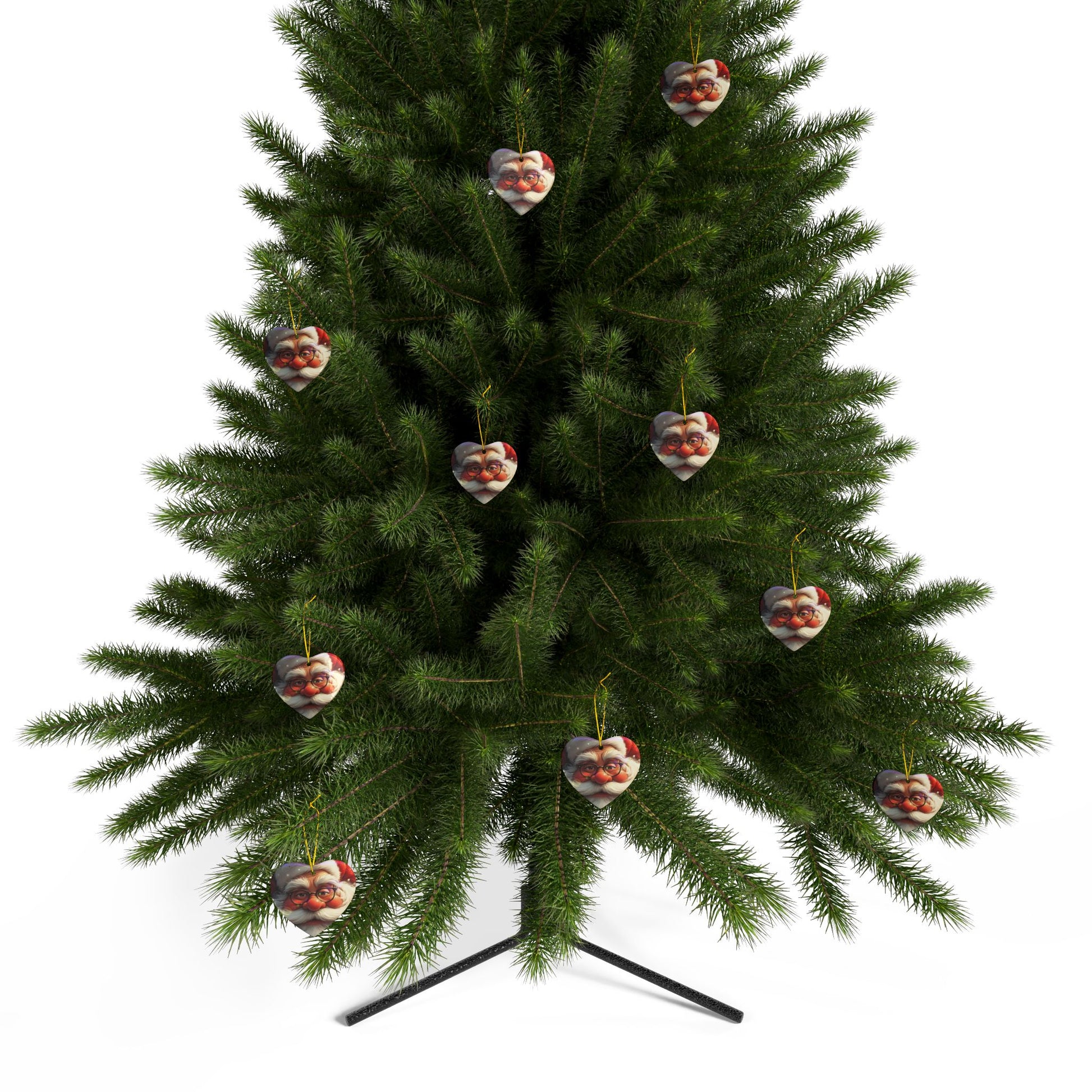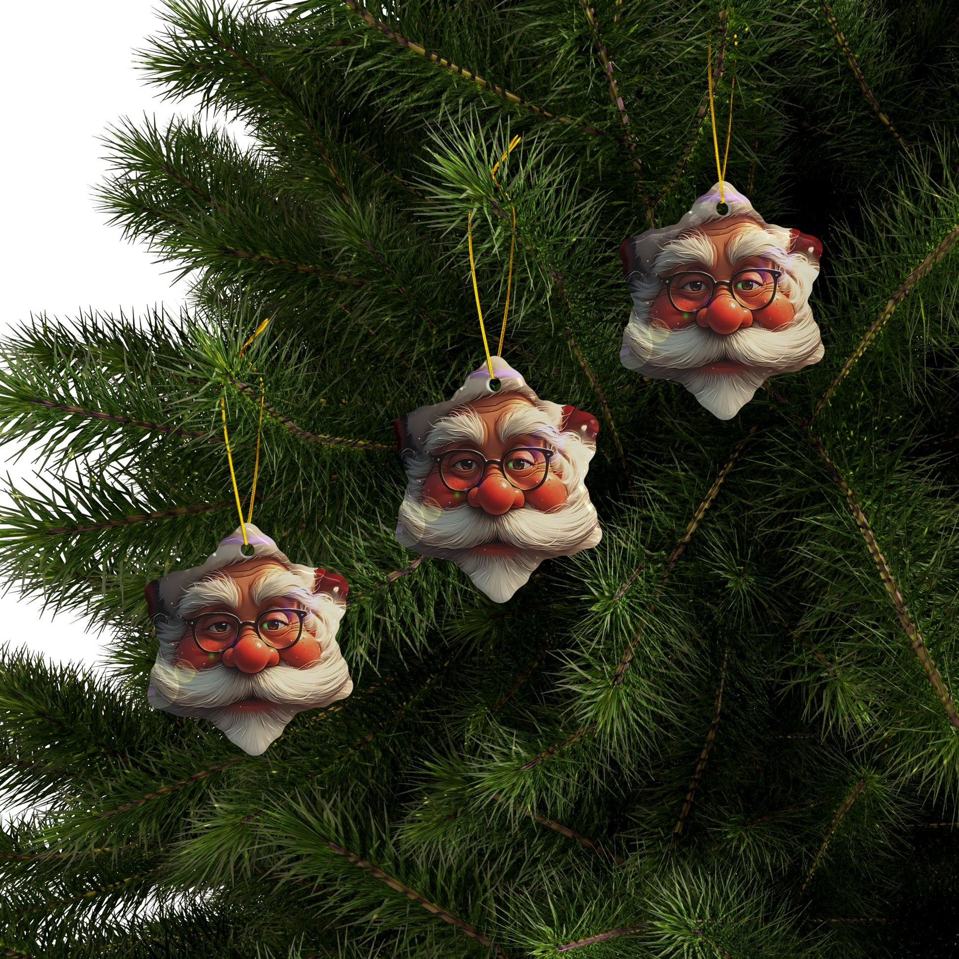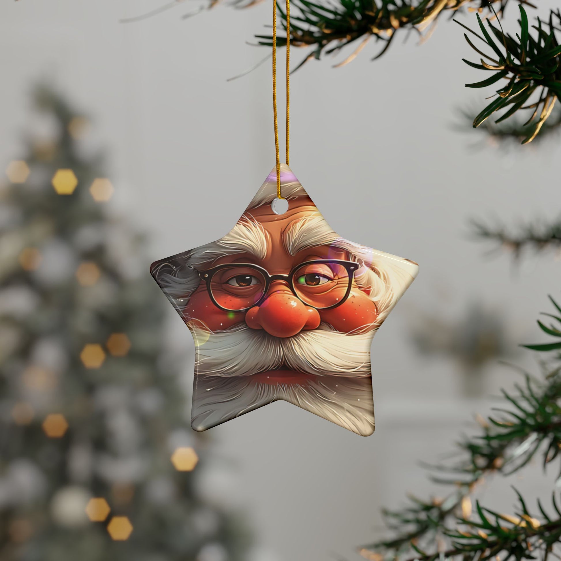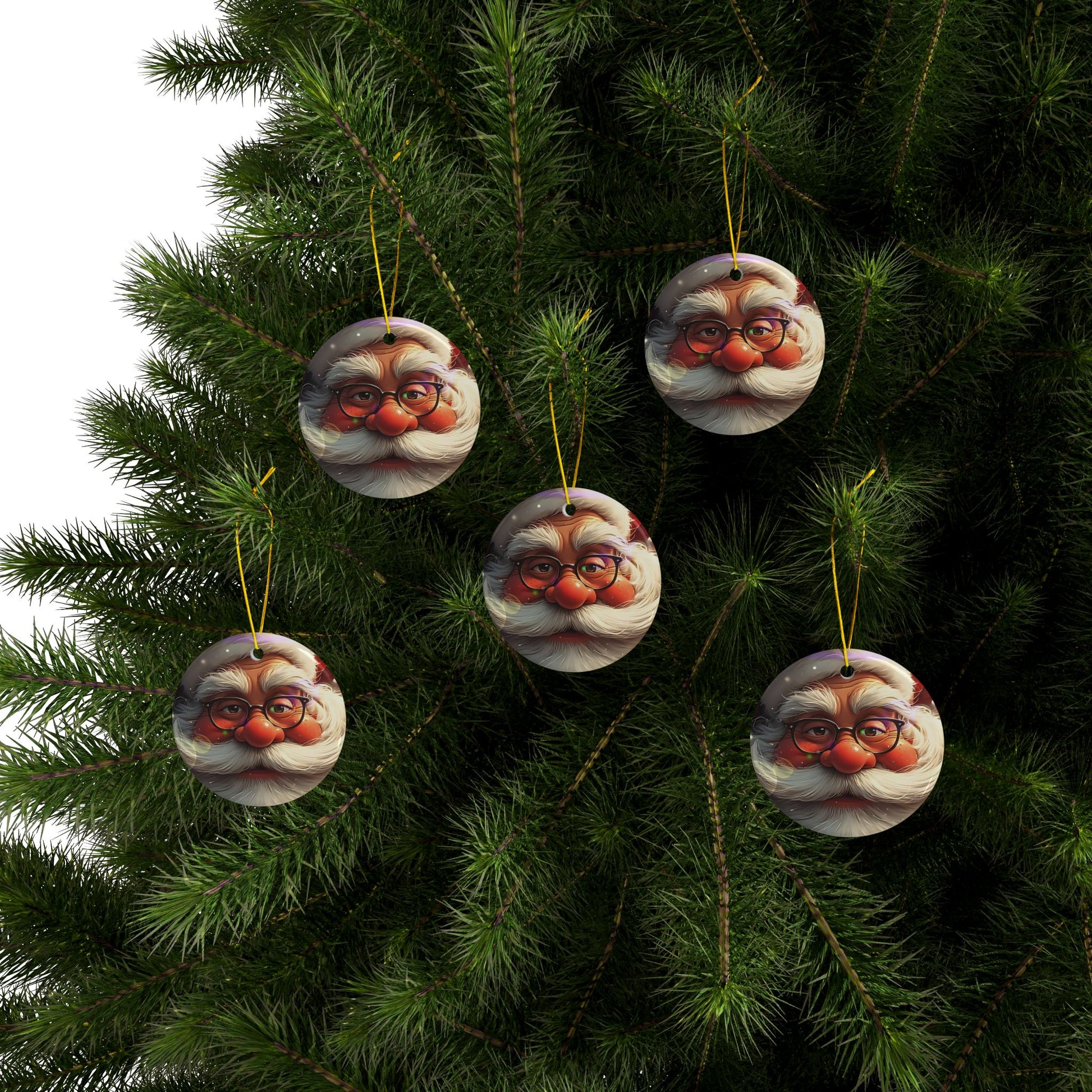 Santa Face Ceramic Ornament — Round Double-Sided Christmas Tree Decor (Personalizable, Pack Options)
