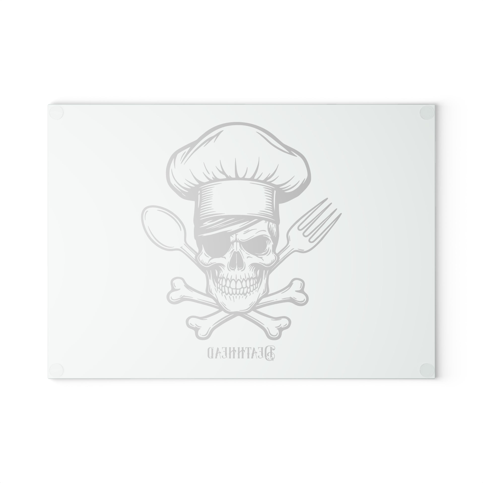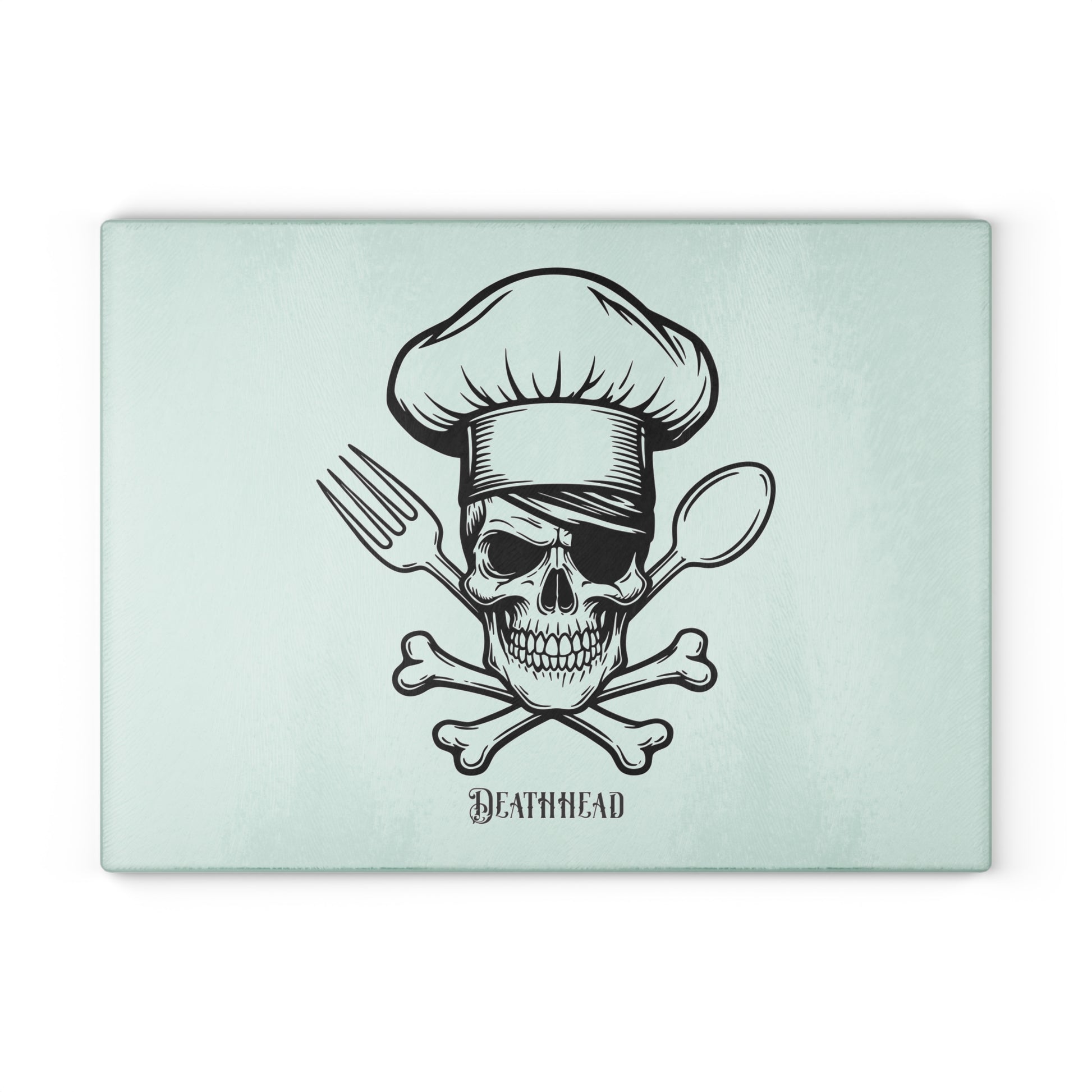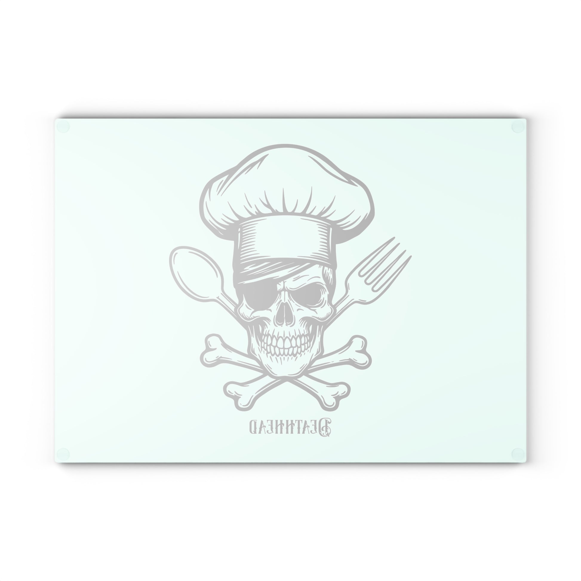 Skull Chef Glass Cutting Board - Edgy Kitchen Decor for Halloween & Culinary Enthusiasts