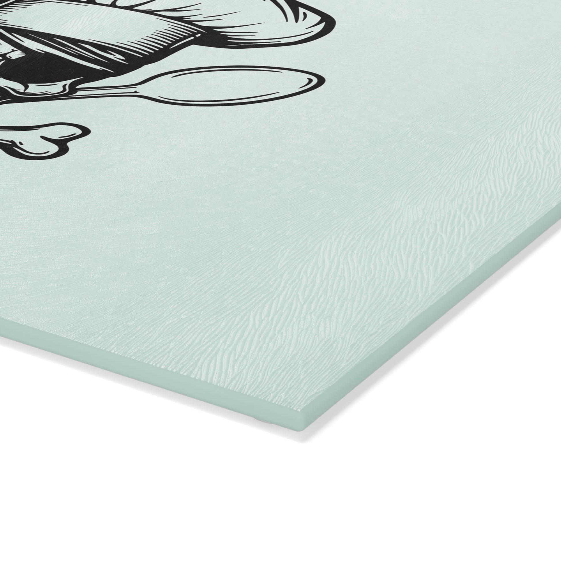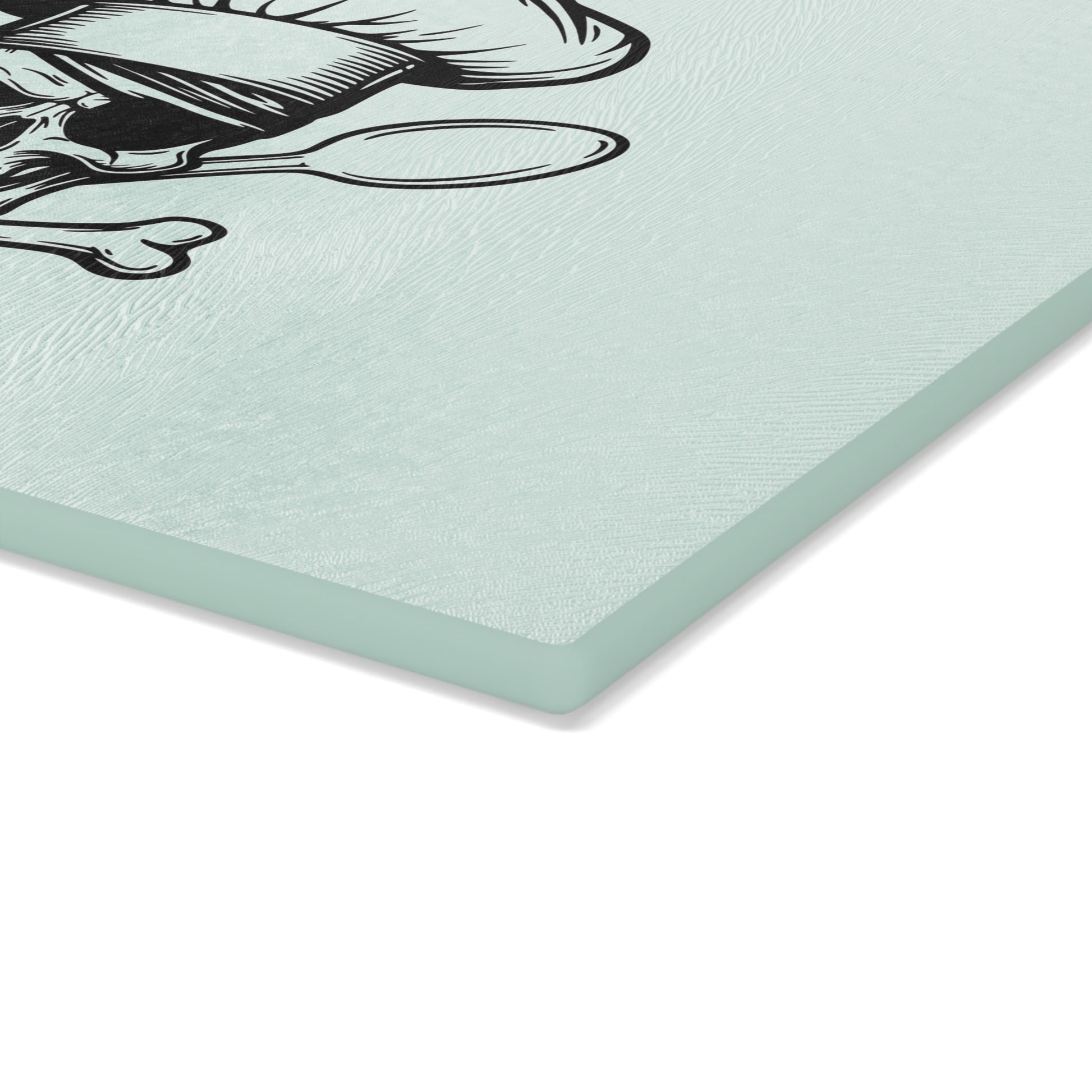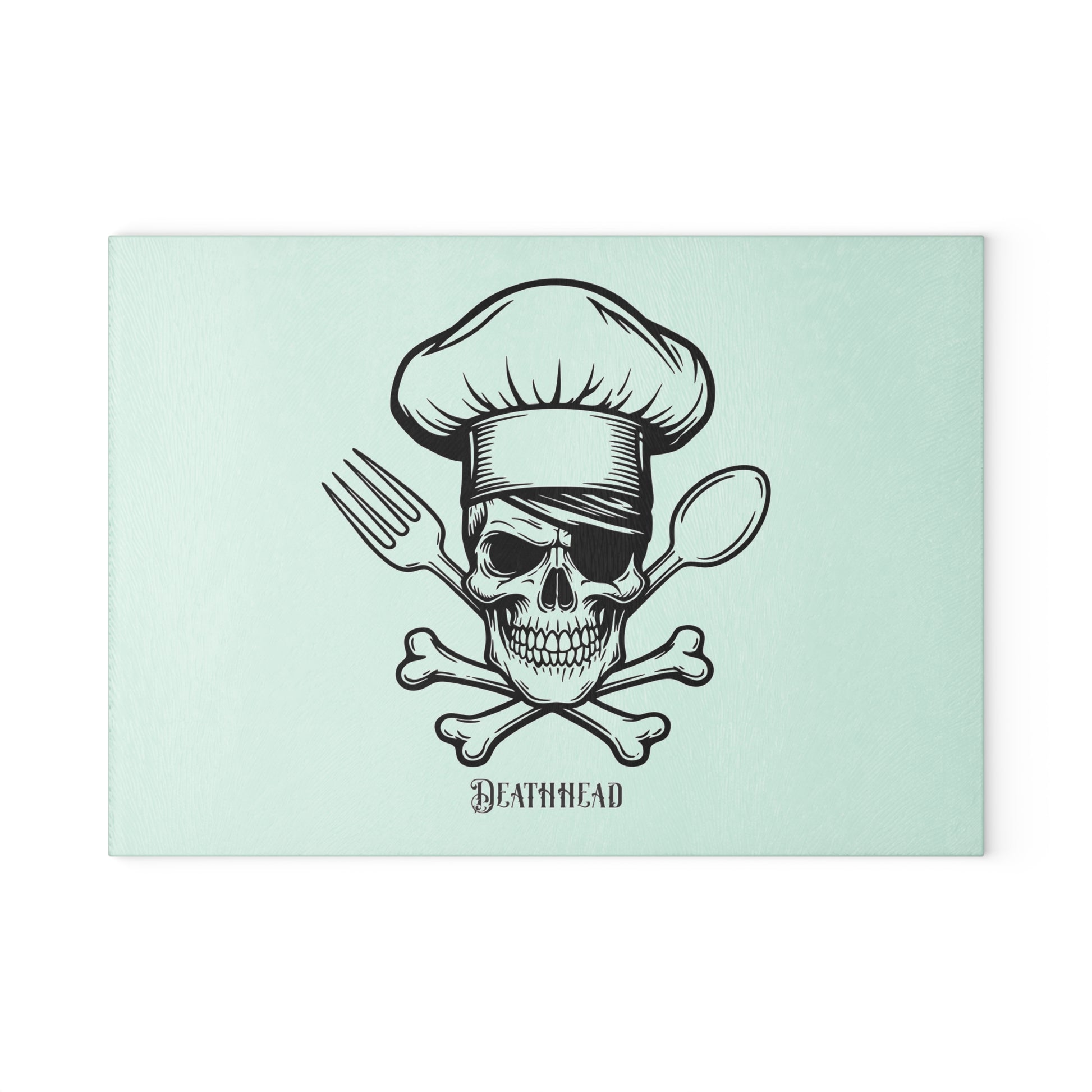 Skull Chef Glass Cutting Board - Edgy Kitchen Decor for Halloween & Culinary Enthusiasts