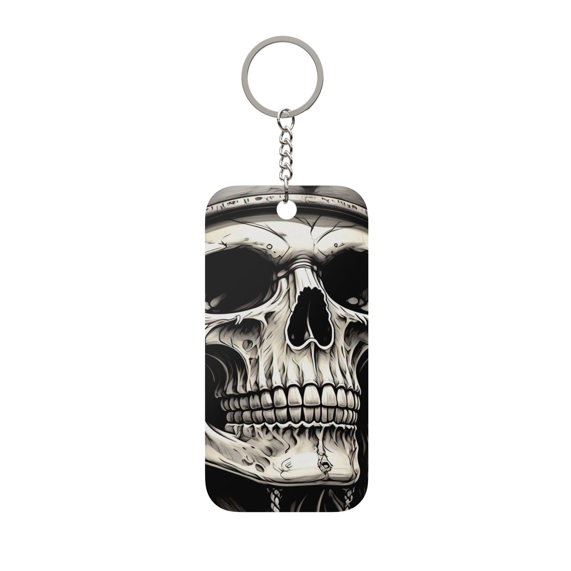 Carry a bold, gothic statement on your everyday essentials with this acrylic double-sided keychain charm. The detailed monochrome skull artwork wraps the rectangular charm, giving it a dark, cinematic edge that catches the eye whether it’s clipped to keys, a backpack, or a moto jacket. Light but sturdy, the acrylic body keeps the print crisp while the metal chain and ring hold up to daily use. This piece adds a moody accent to routines and adventures — a small talisman for those who celebrate macabre style and night-roam energy.