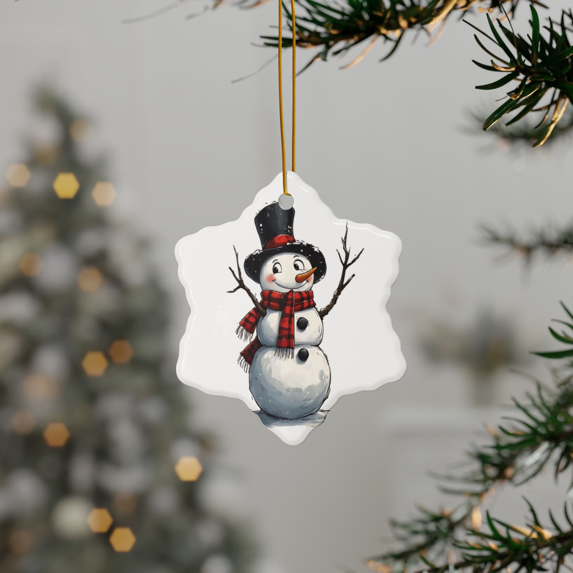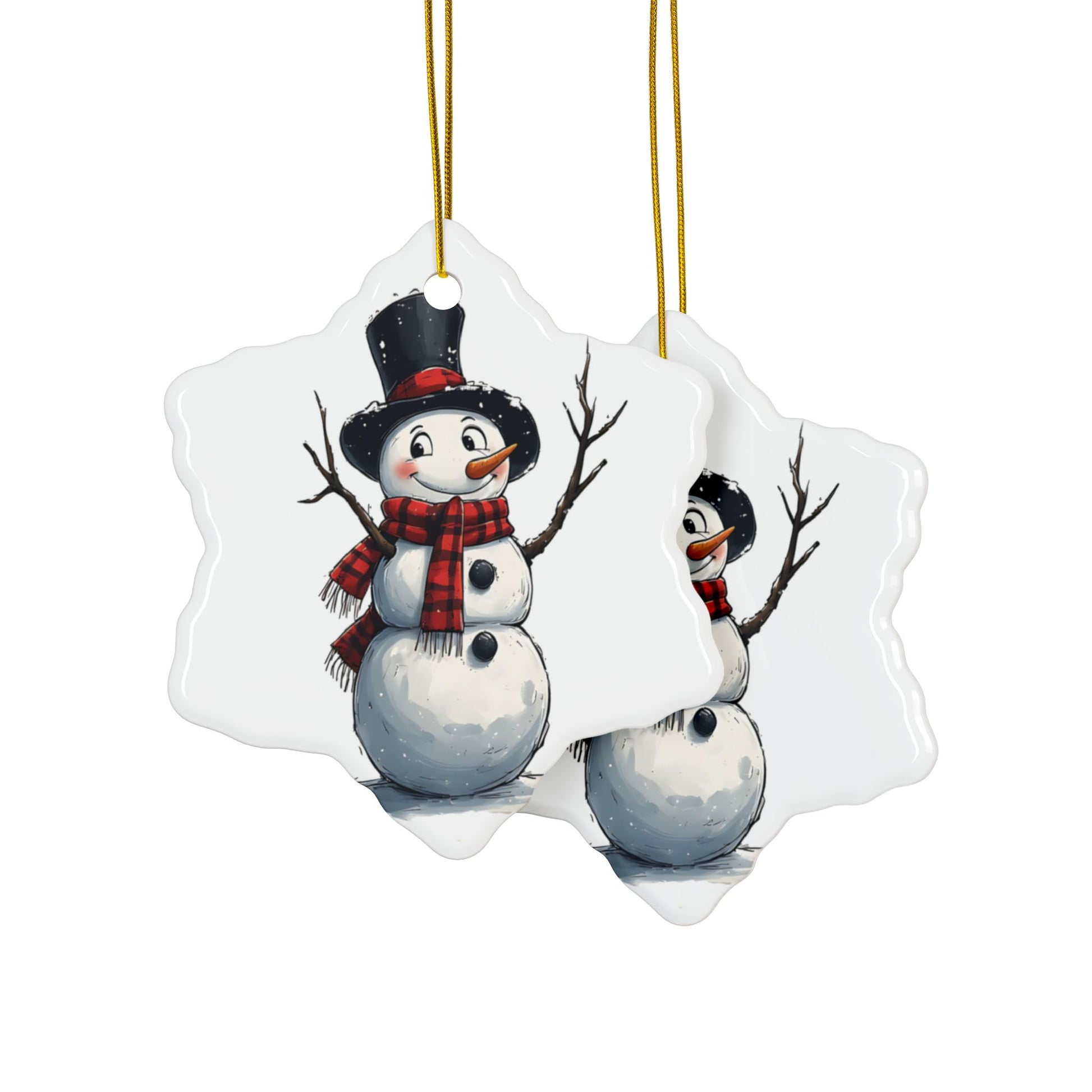 Snowman Ceramic Ornament — Cute 2-Sided Christmas Tree Decoration