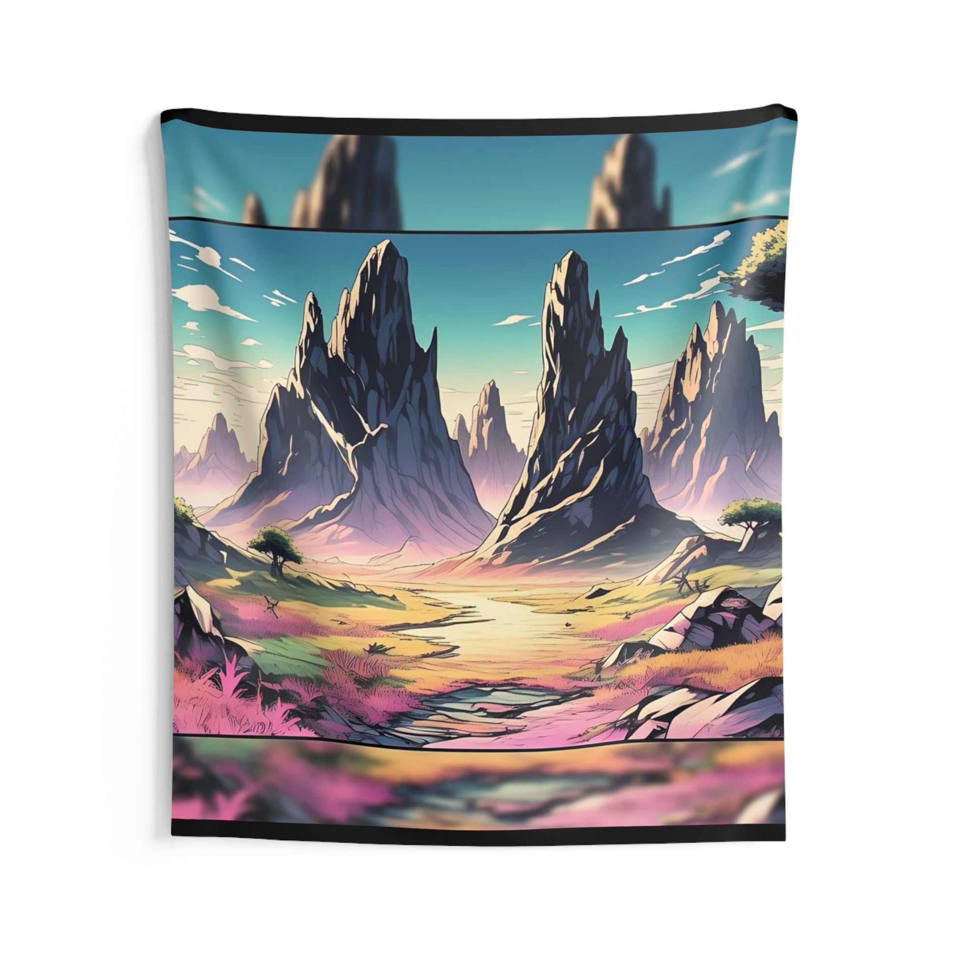 Bring a dreamlike landscape into your living space with this vibrant indoor wall tapestry. Soft, painterly colors blend into rocky spires, pastel meadows, and a serene sky — an image that invites quiet reflection and imaginative escapes. Lightweight yet durable polyester keeps colors vivid and details crisp, while hemmed edges give the piece a neat, finished look that hangs flat and true. Hang it above a bed, behind a desk, or on a blank wall to create a calming focal point that feels both adventurous and restful. This tapestry folds and packs easily, so it’s simple to change your room’s mood or take your scene on the road.