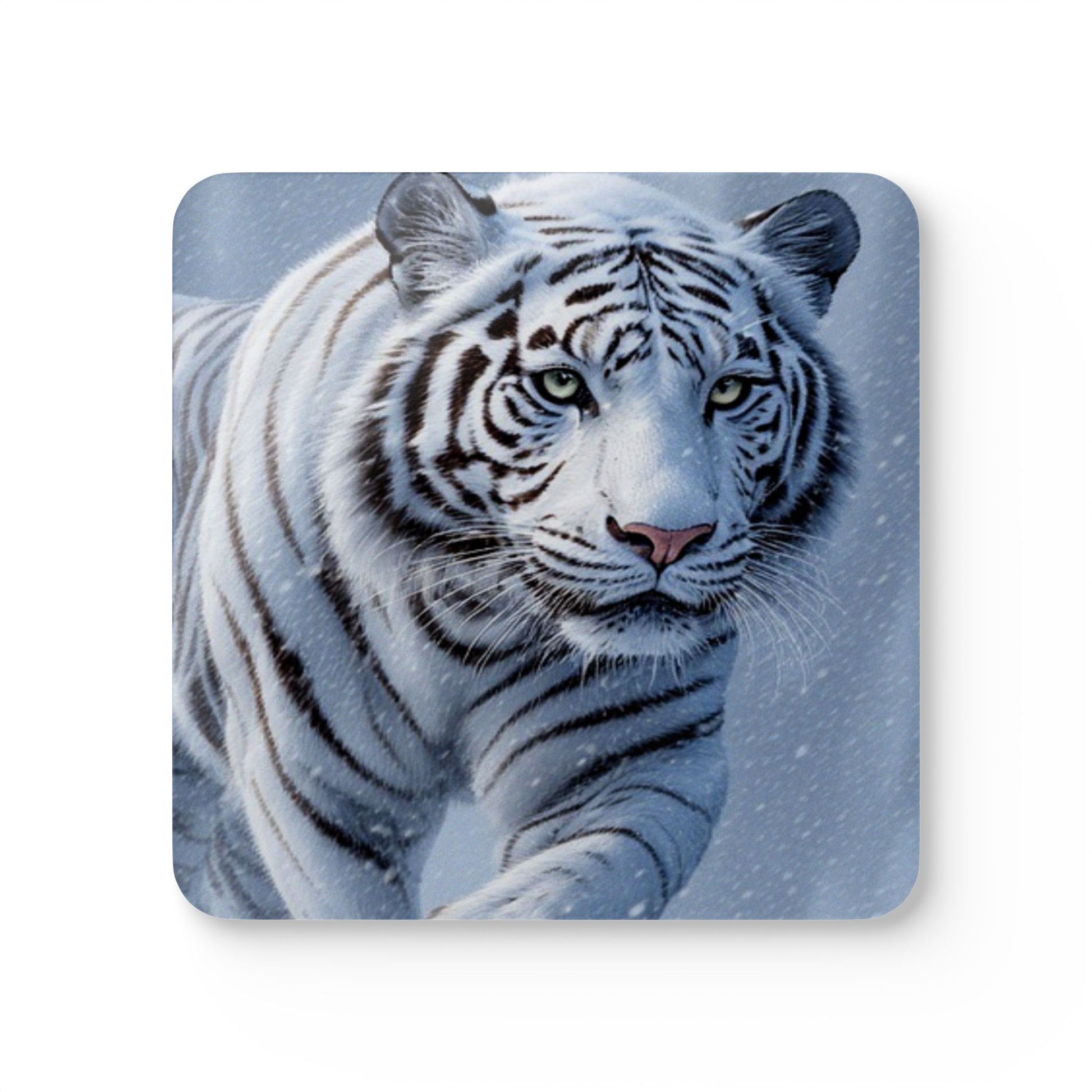 White Tiger Cork Coaster Set — Wildlife Art Drink Coasters