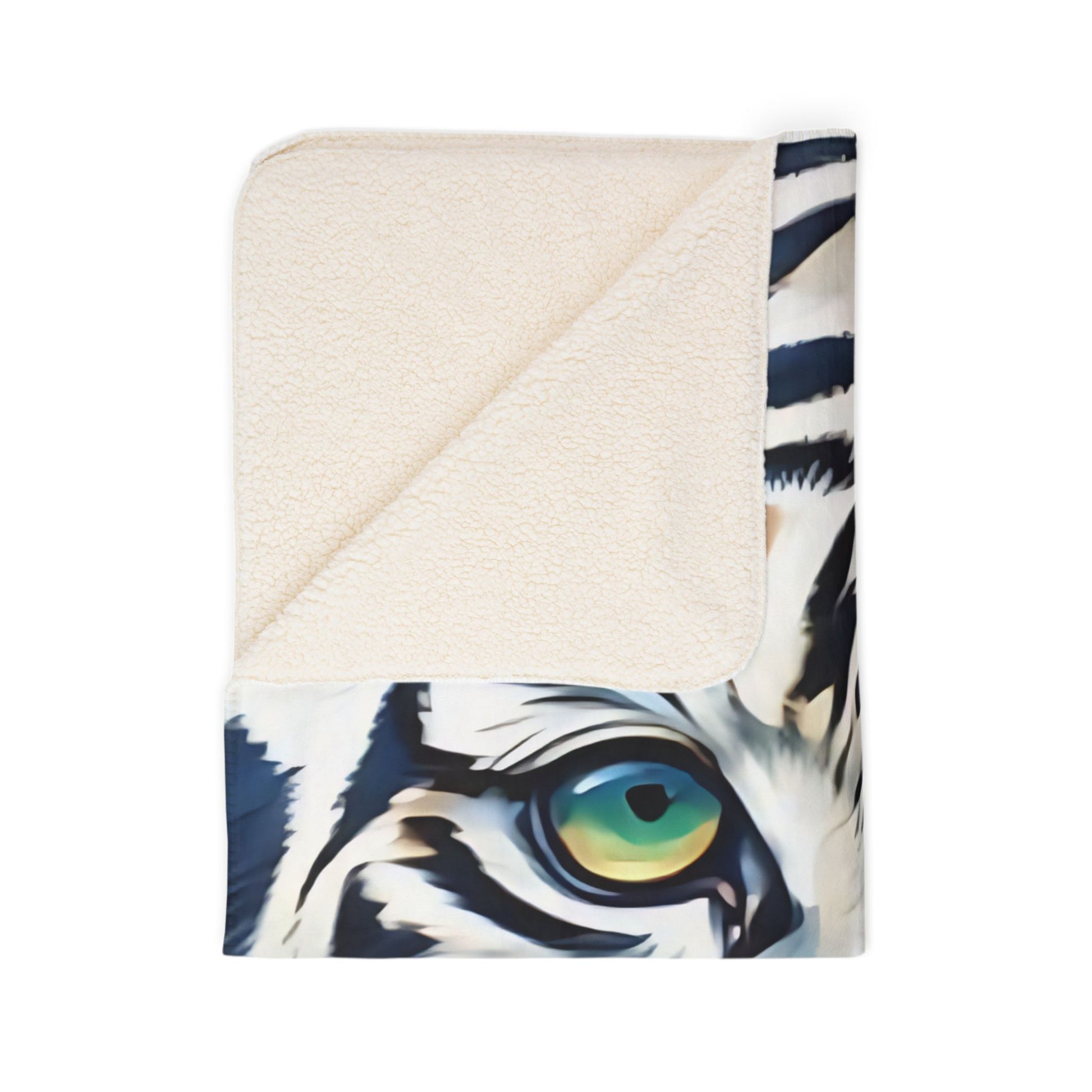 White Tiger Sherpa Blanket — Cozy Fleece Throw with Realistic Big Cat Face
