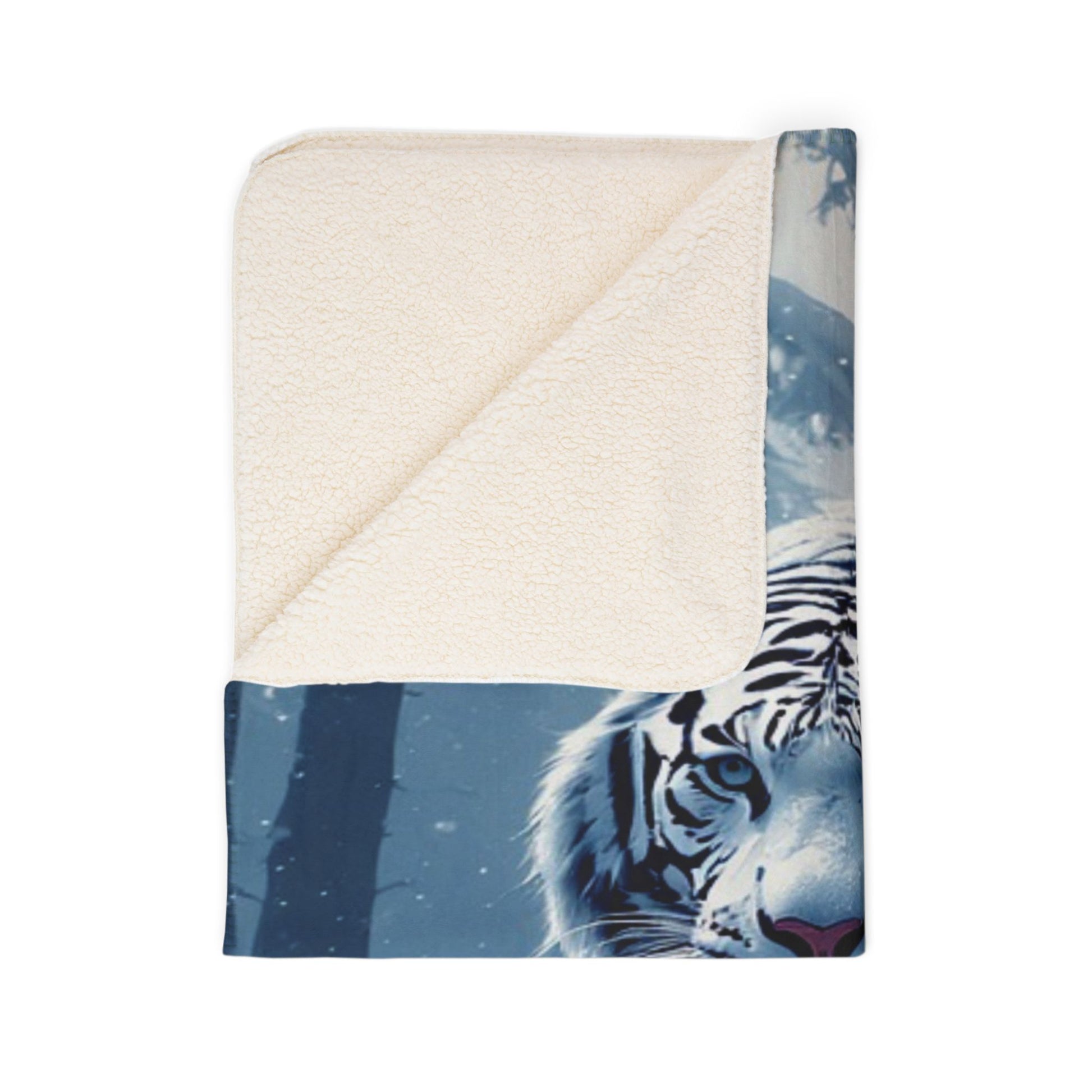 White Tiger Winter Fleece Sherpa Blanket — Cozy Snow Forest Throw