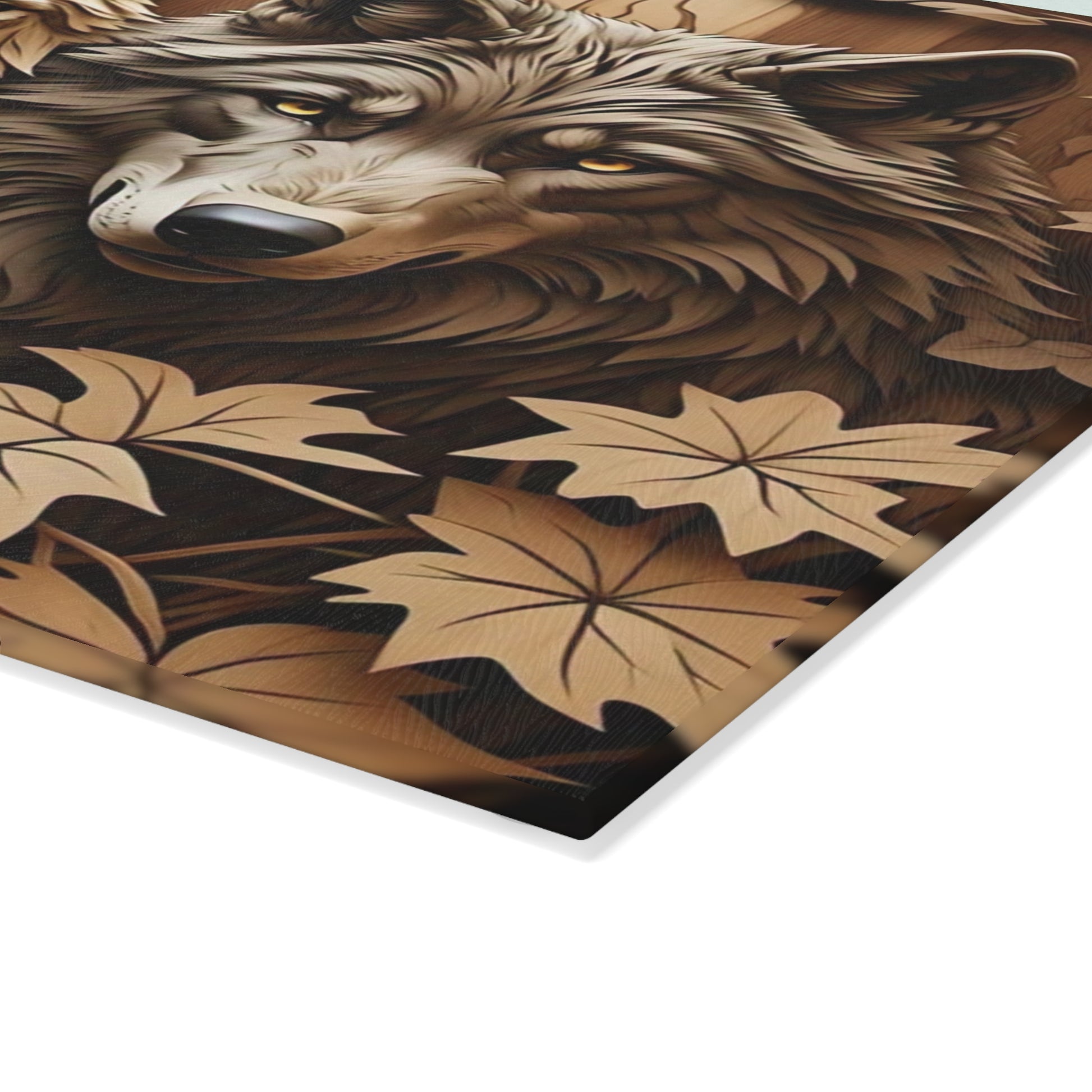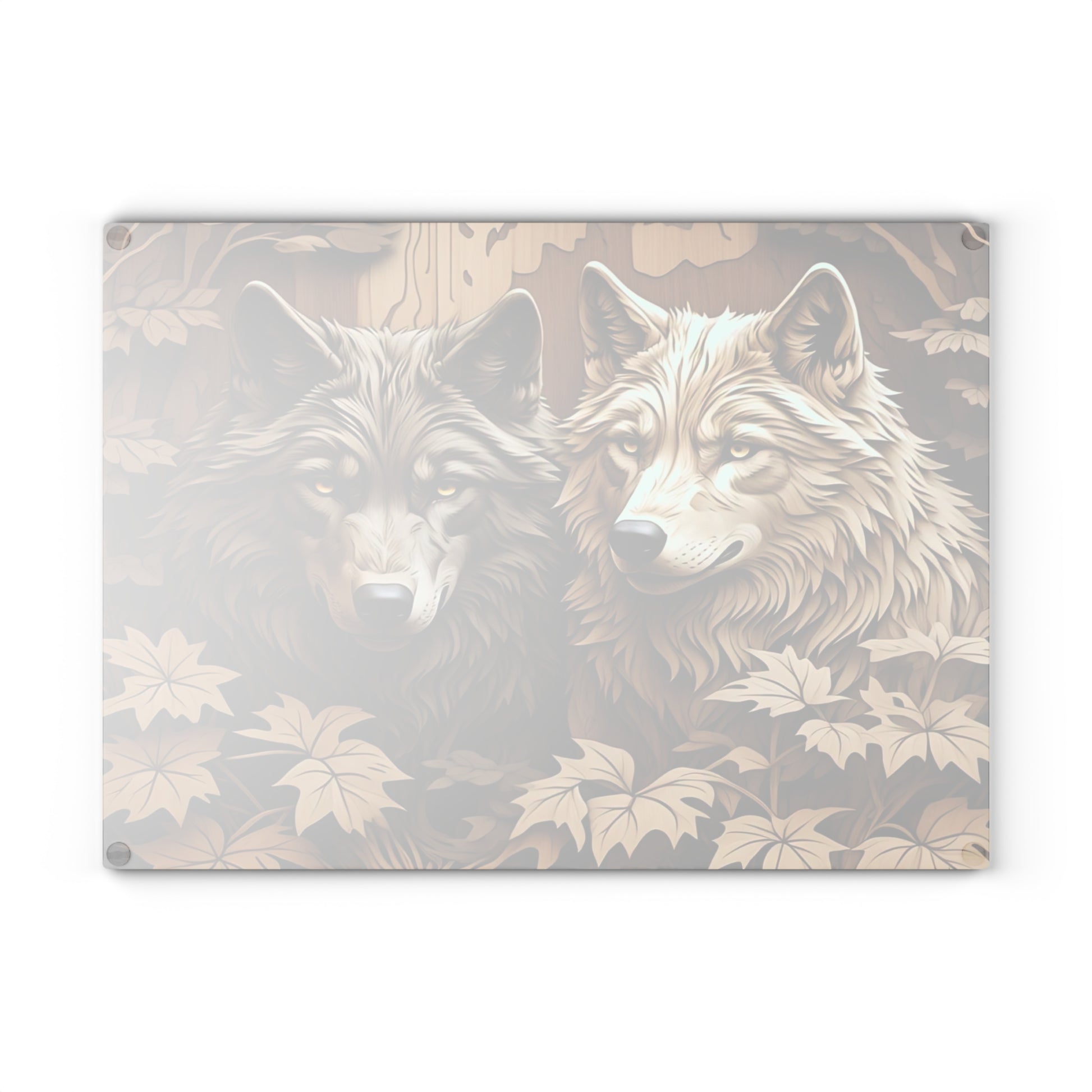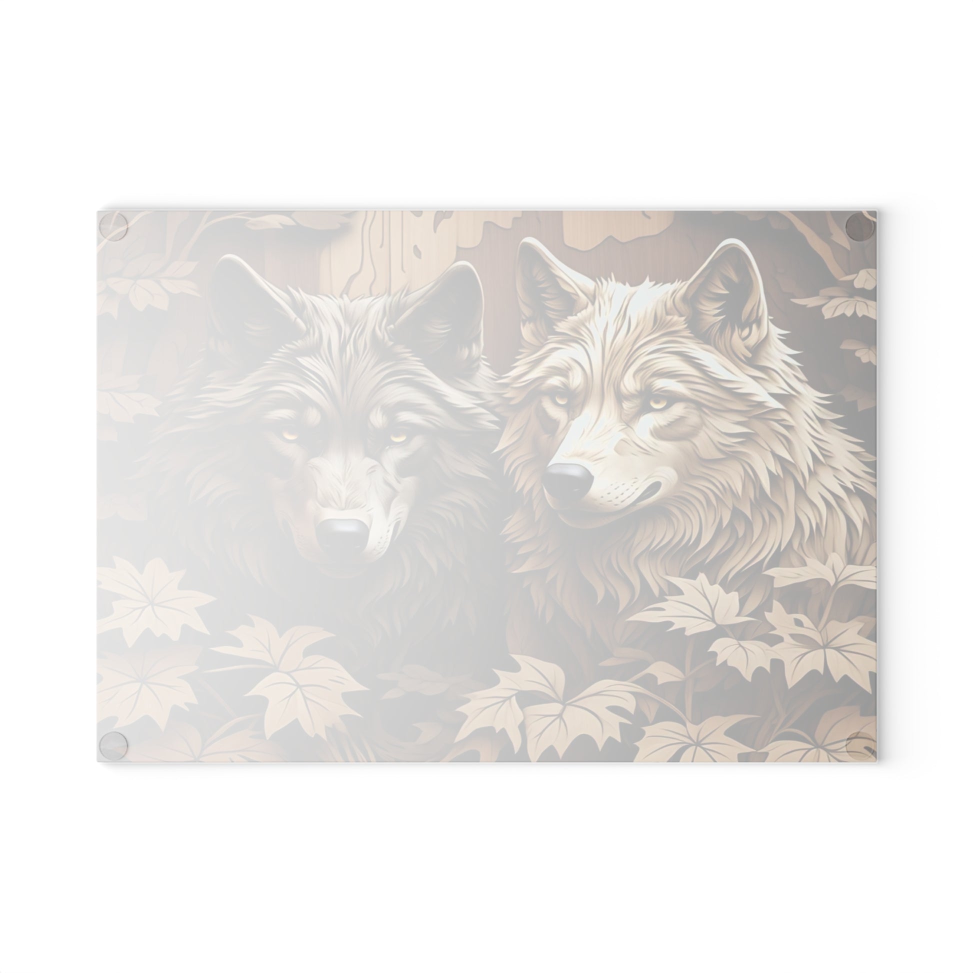 Wolf Family Glass Cutting Board, Kitchen Decor, Rustic Chopping Board, Gift for Nature Lovers, Wildlife Art, Home Cooking