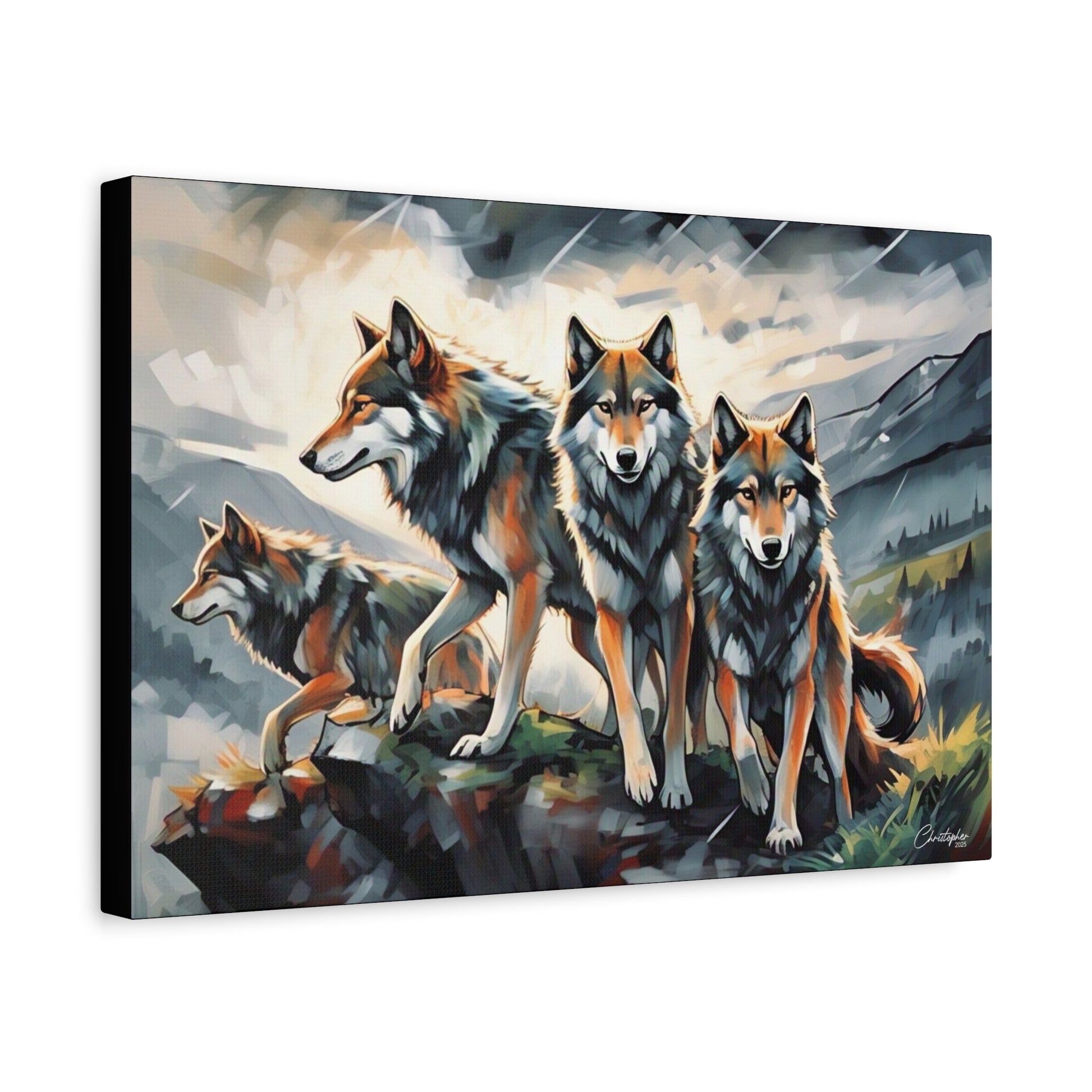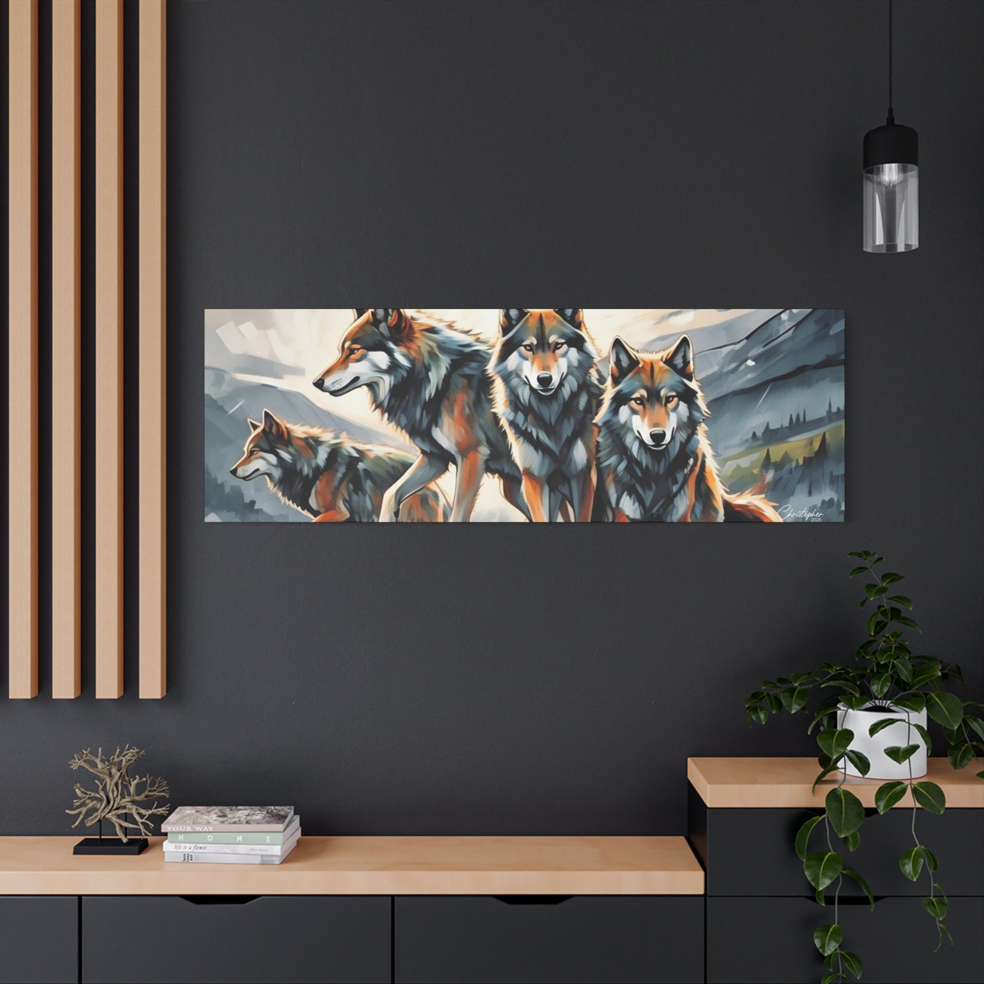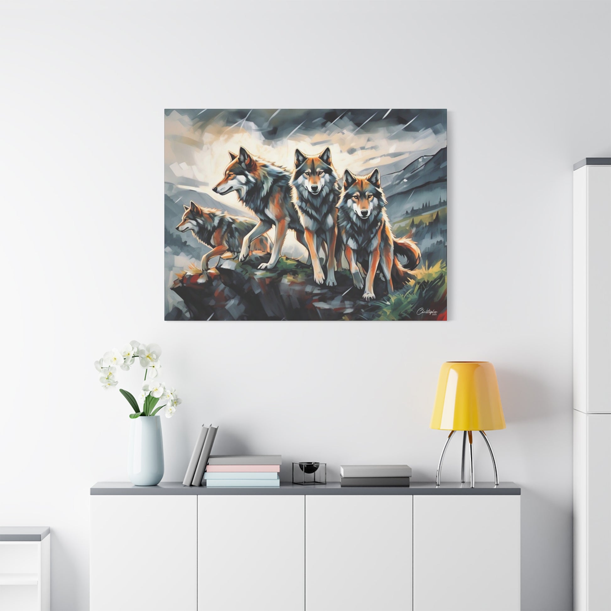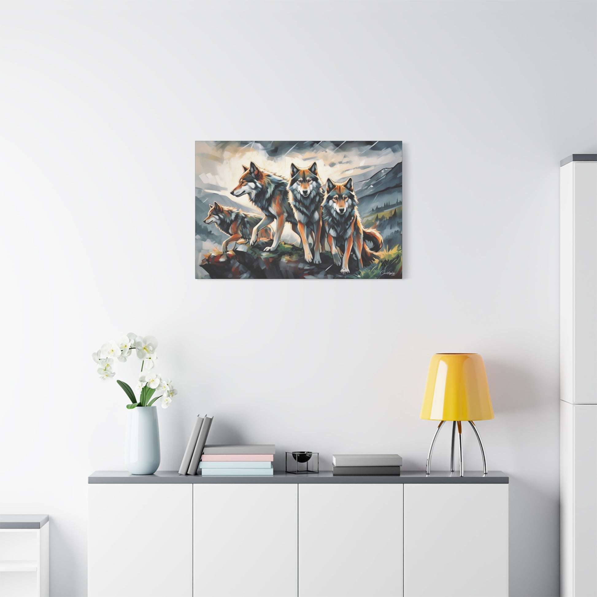 Wolf Family Matte Canvas Art, Home Decor, Animal Lovers Gift, Nature Wall Art, Wildlife Art Print, Outdoor Enthusiasts Decor
